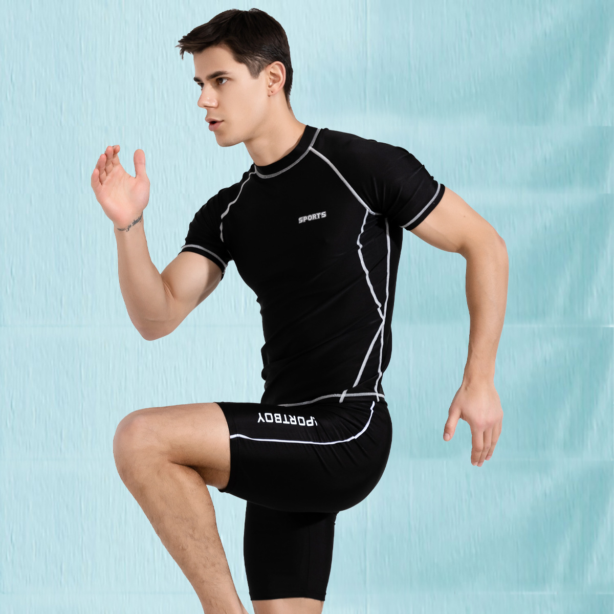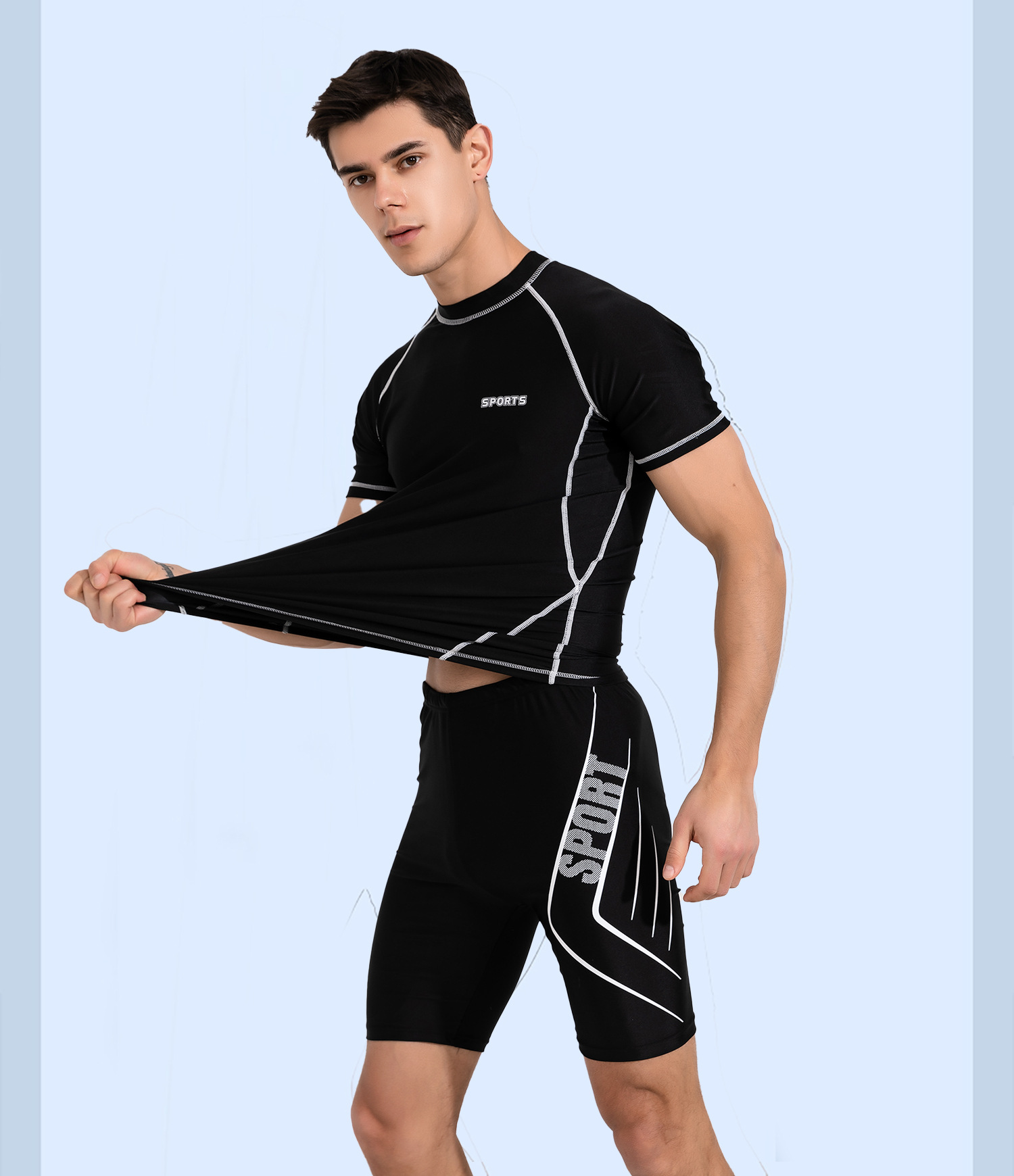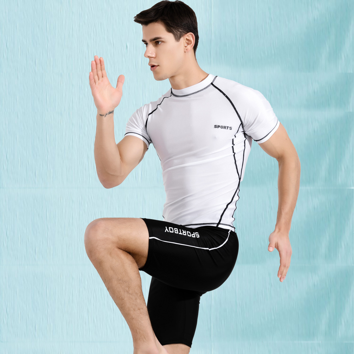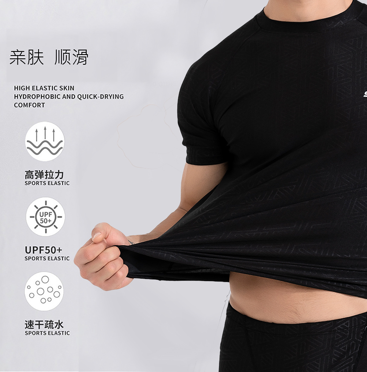 【生来畅爽 一起去浪❗️新款男士泳衣分体式两件套】U型护裆,舒适自由高弹面料,干爽弹性不勒,男款防晒短袖冲浪浮潜服大码沙滩男泳裤夏日粉丝专属男士父亲节礼物新年礼盒年货礼盒