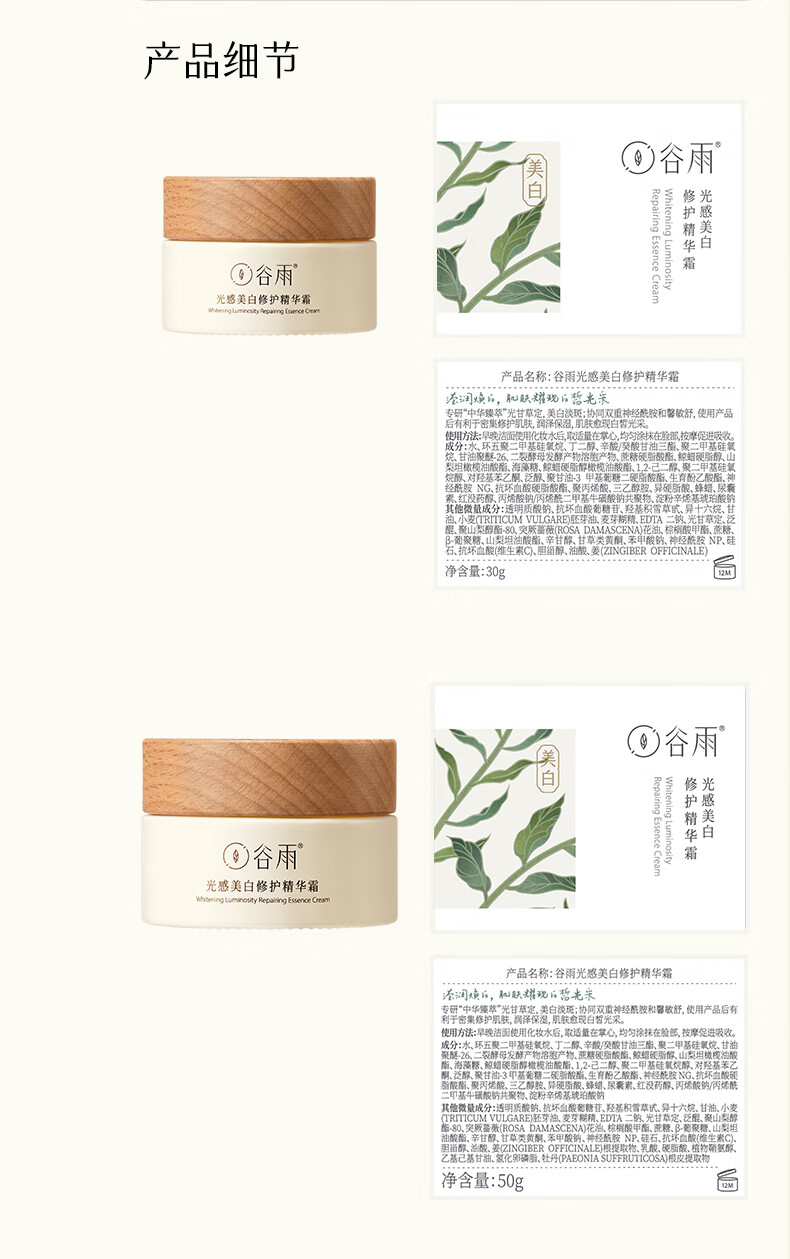 谷雨光感美白修护精华霜50g