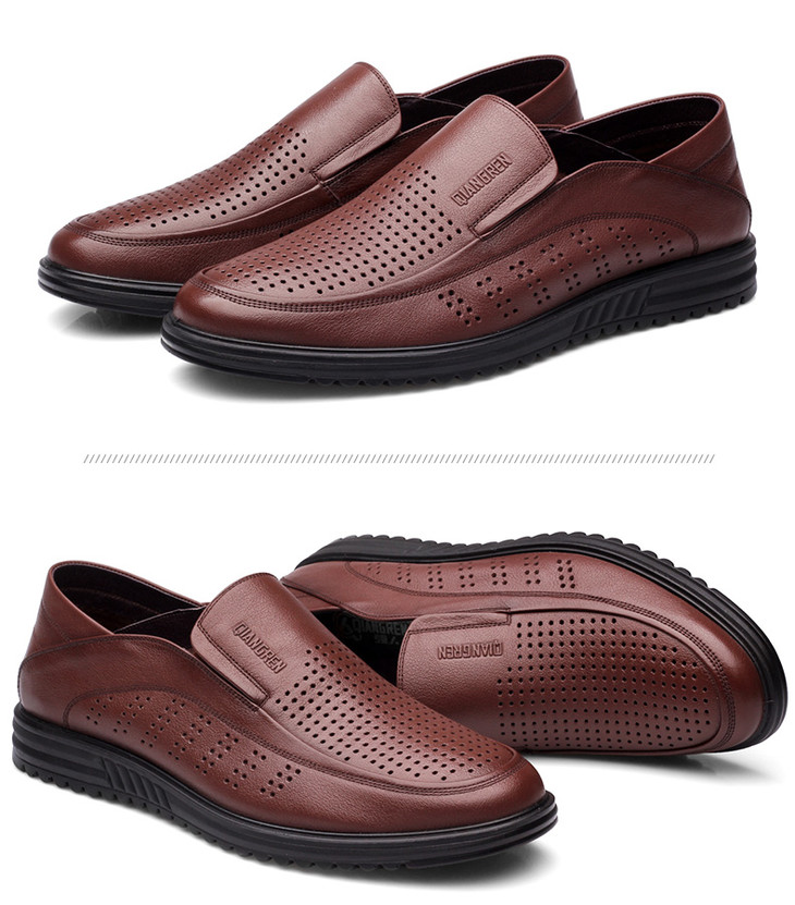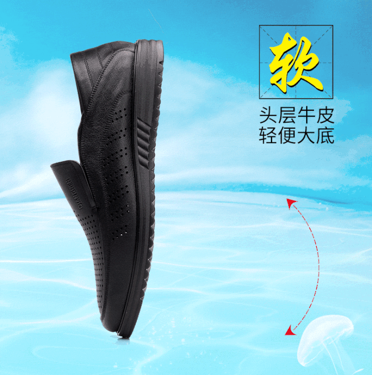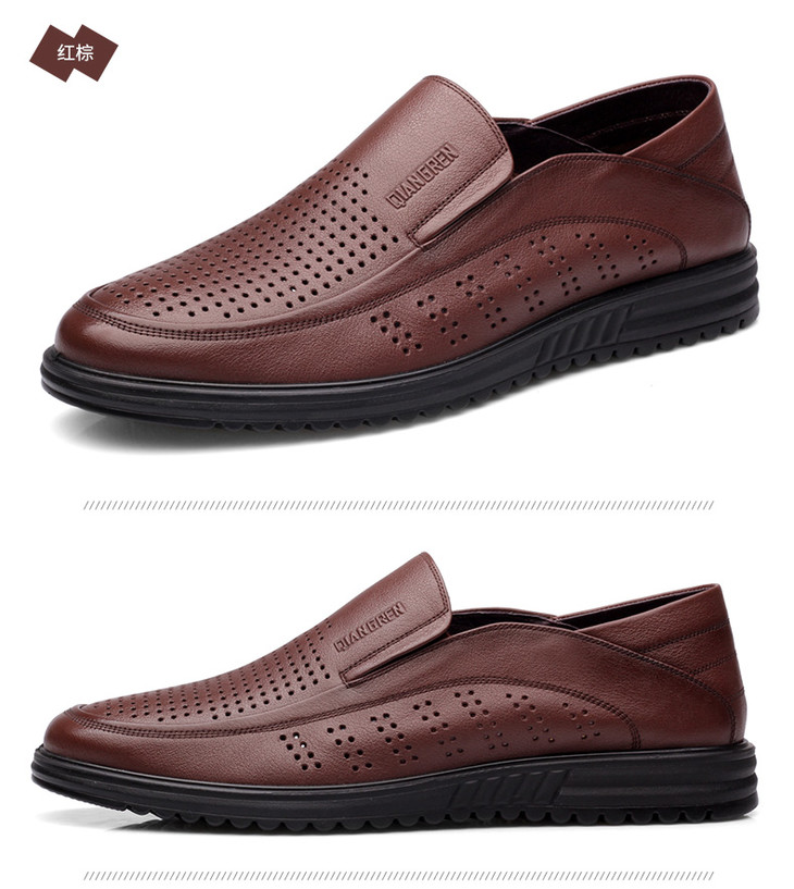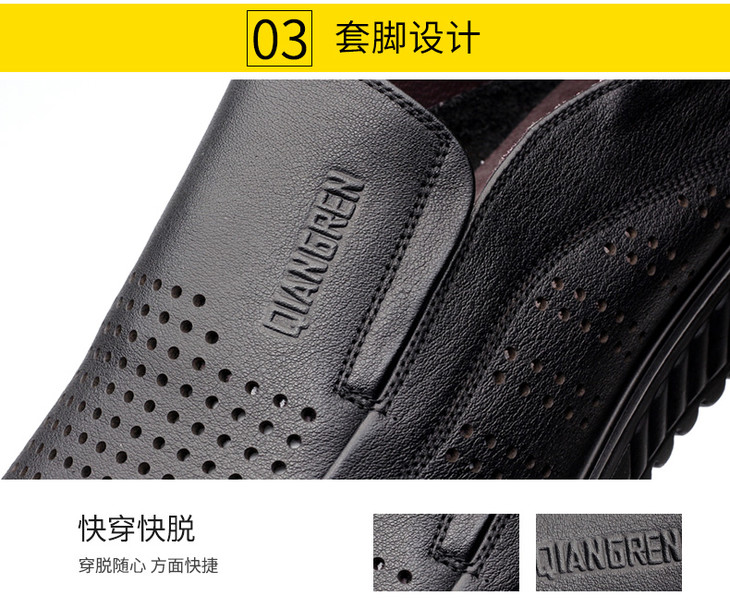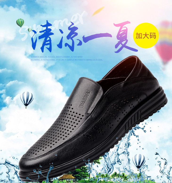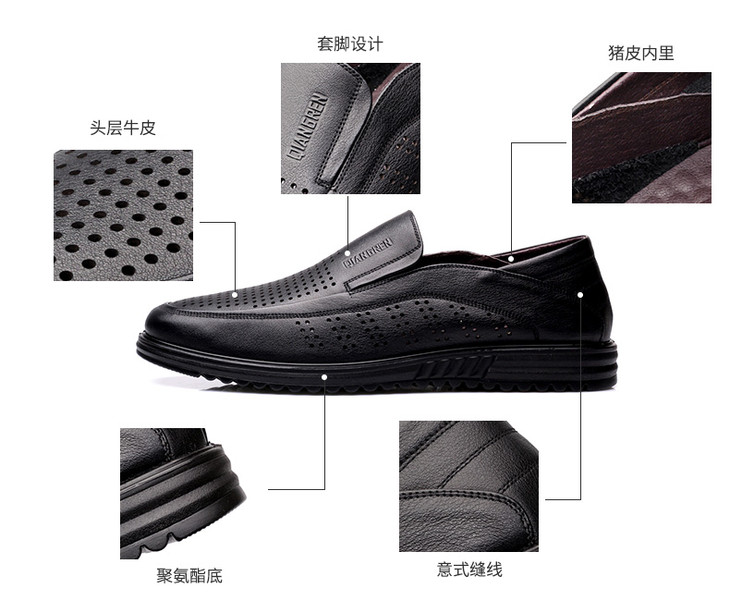 强人加大码凉鞋男套脚款轻便透气镂空款特大码休闲皮鞋 82DXD351008