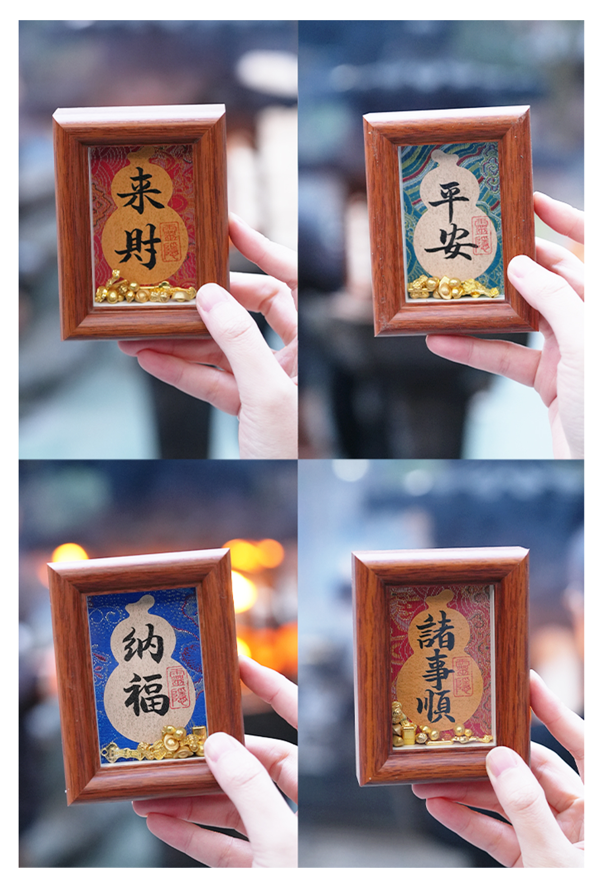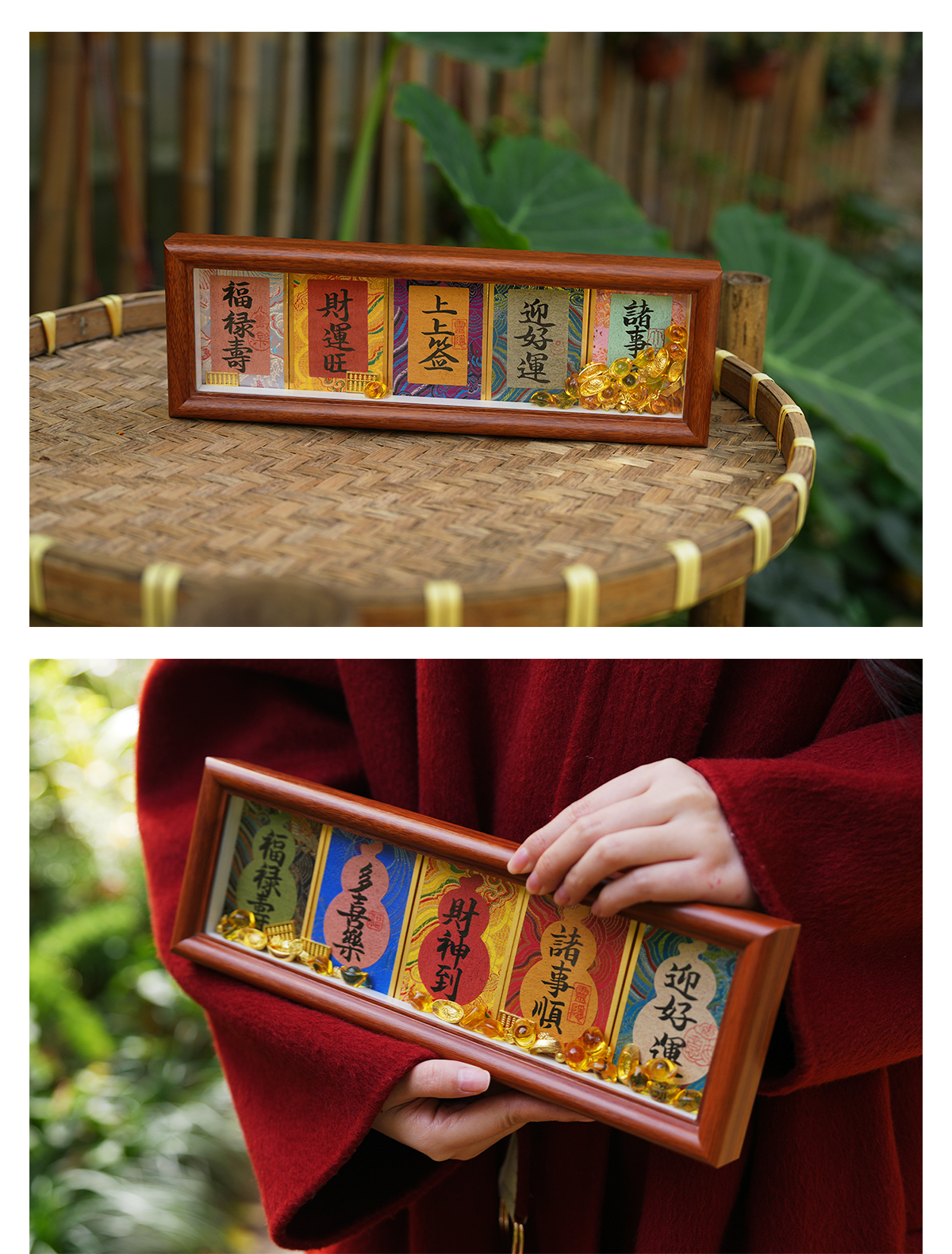 【预售3-5天】灵隐文创 五福摆台实木框书法摆件玄关摆件