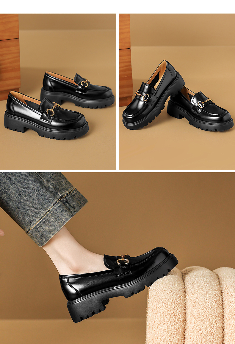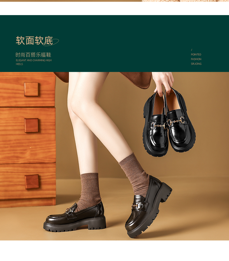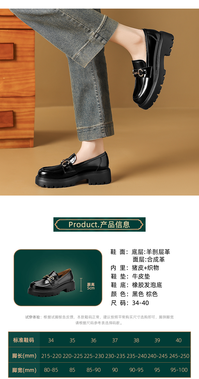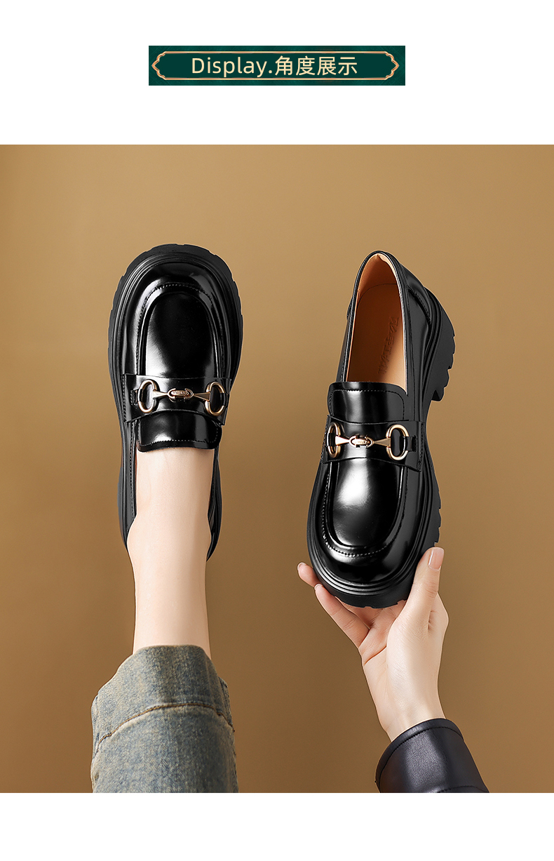 阿么手工女鞋英伦风真皮气质乐福鞋超软百搭5CM复古厚底小皮鞋女