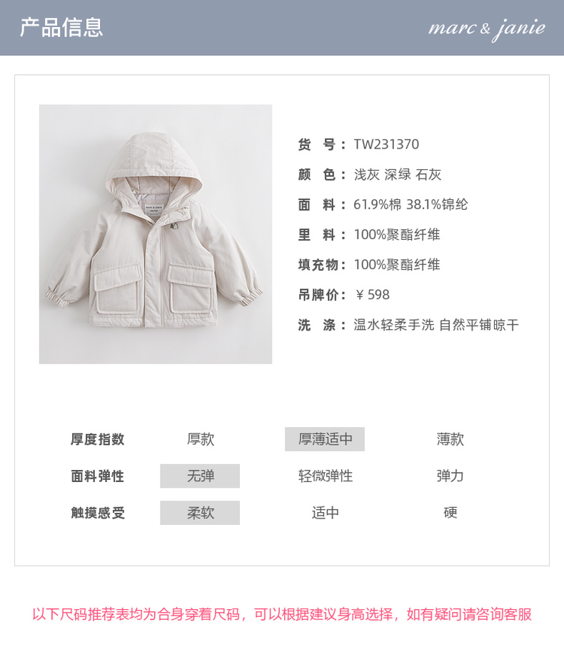 【户外风】马克珍妮秋装新款 男童大口袋连帽外套 231370