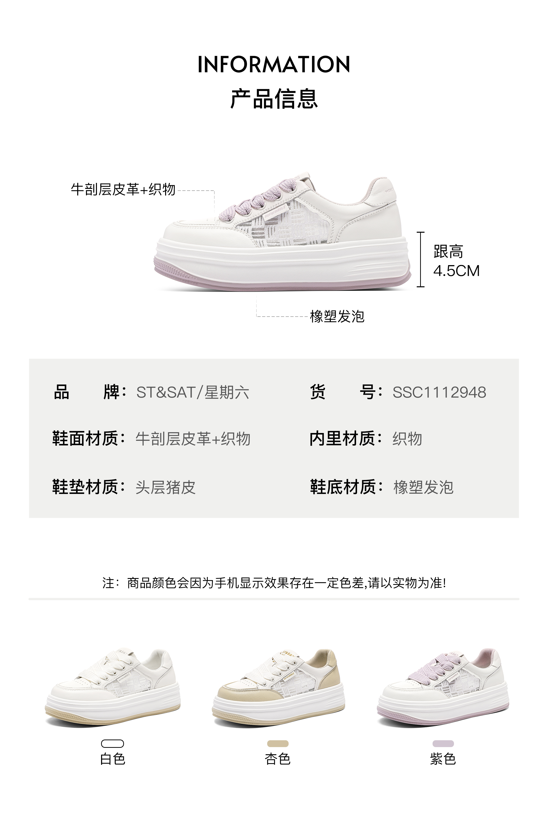 星期六个性拼色厚底休闲板鞋SSC1112948