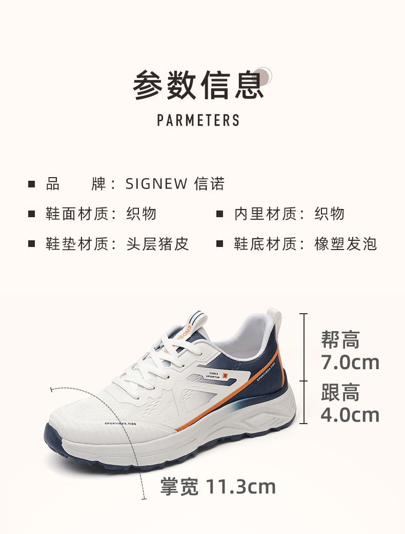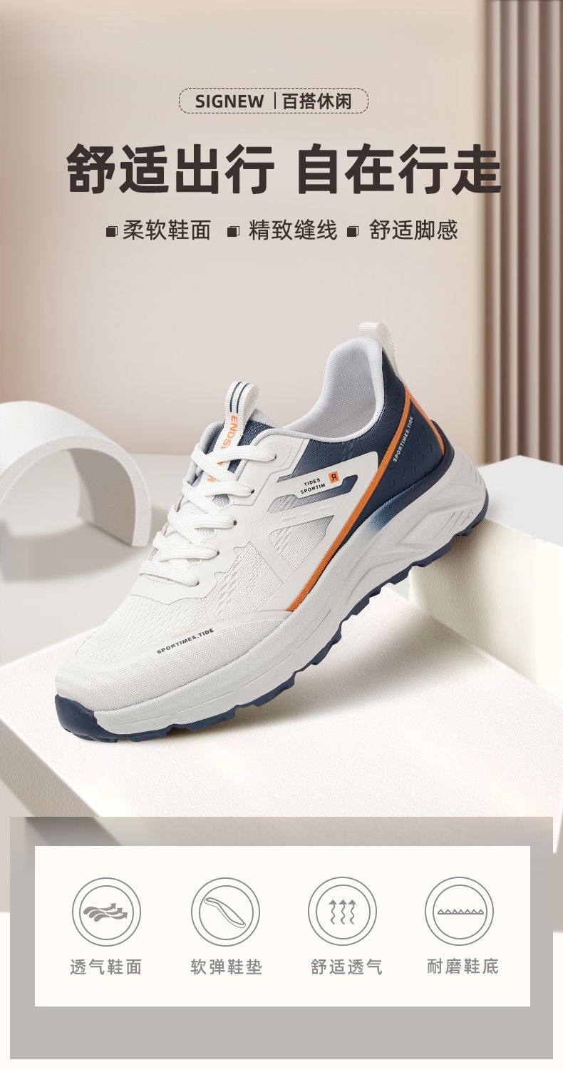 信诺厚底耐磨男鞋2025春夏新款软底舒适跑步鞋男士透气休闲运动鞋N5C063-42