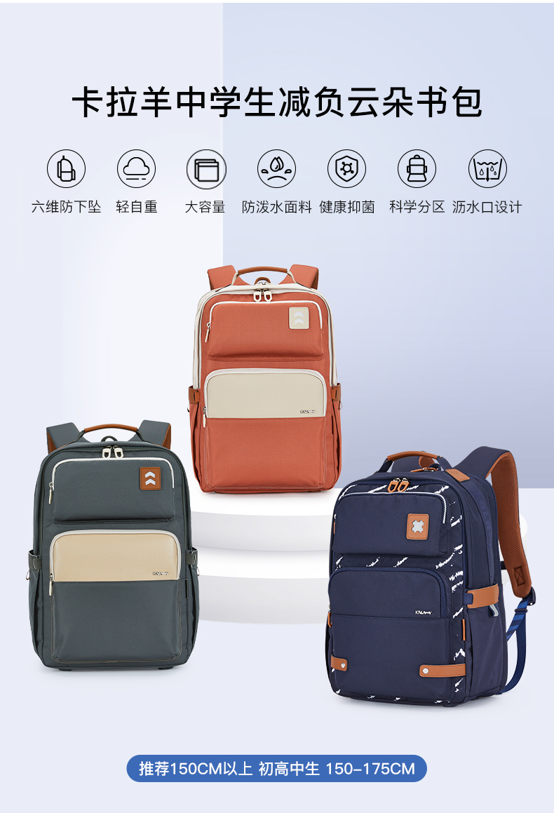 【断码清仓】卡拉羊初高中生6维减负防下坠云朵书包CX5479+5197