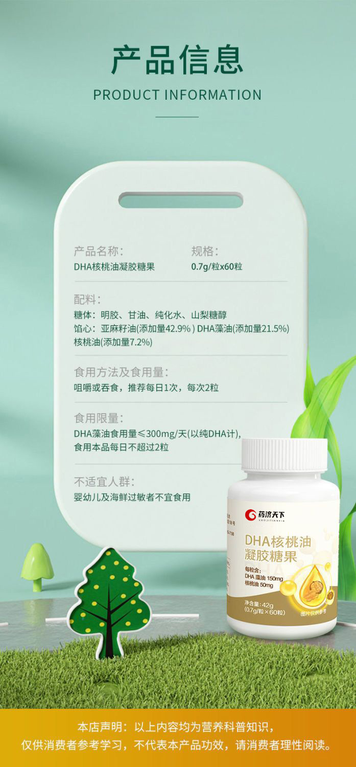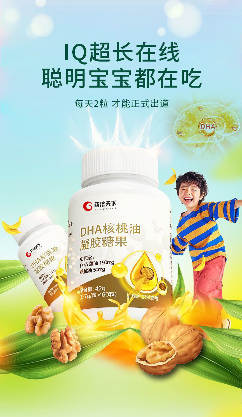 【五瓶更超值! DHA核桃油凝胶糖果】甄选优质原料,DHA藻油/核桃油/亚麻籽油,颗颗饱满,每棵不止6个核桃,健康好吸收,营养看得见,记忆力补充小孩老人食用软糖L