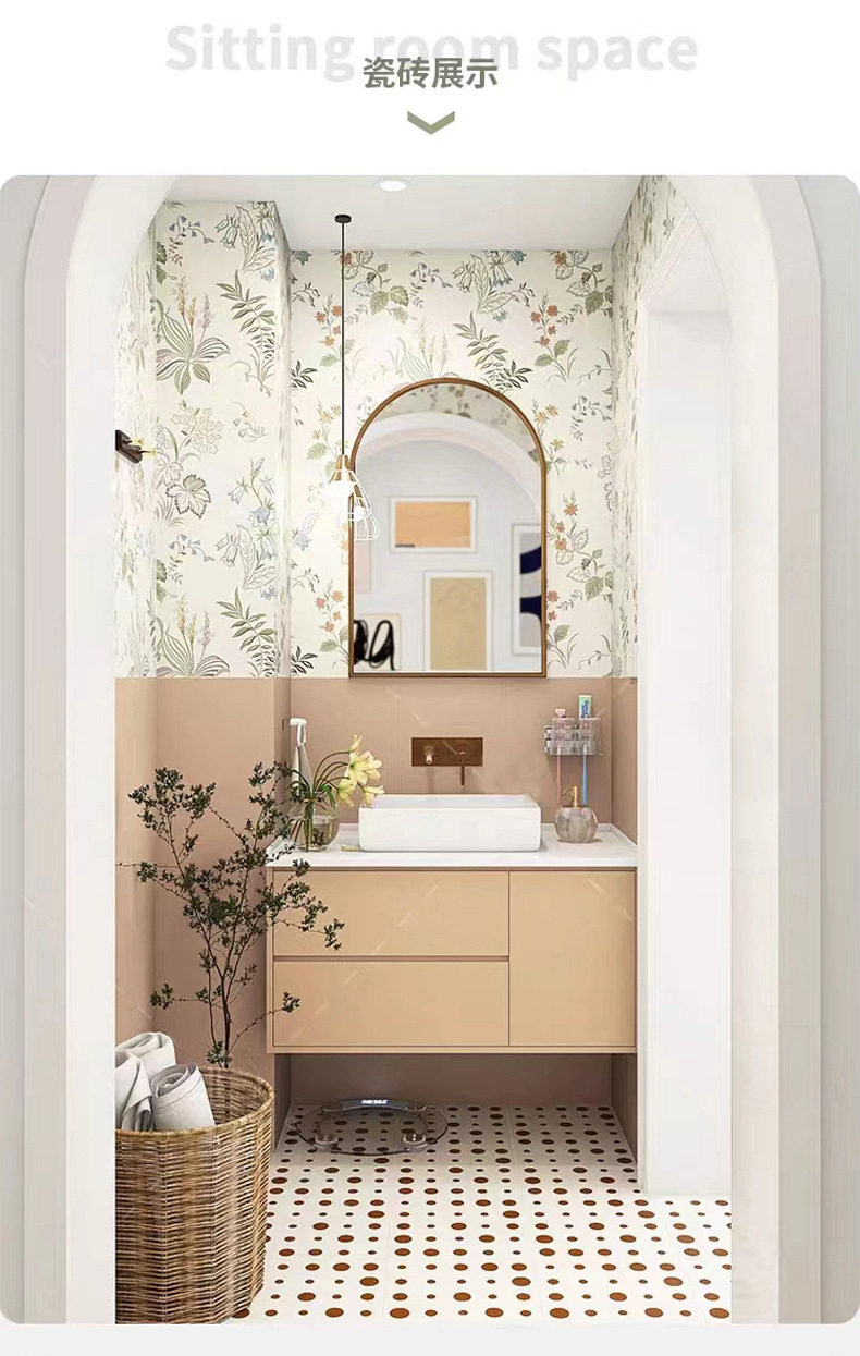 系墙砖柔光地砖壁纸圆点花清新卫生间暖色300x300阳台砖花砖厨房 商品图3