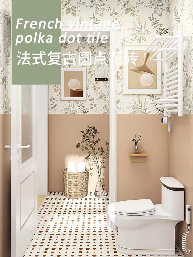 系墙砖柔光地砖壁纸圆点花清新卫生间暖色300x300阳台砖花砖厨房 商品图0