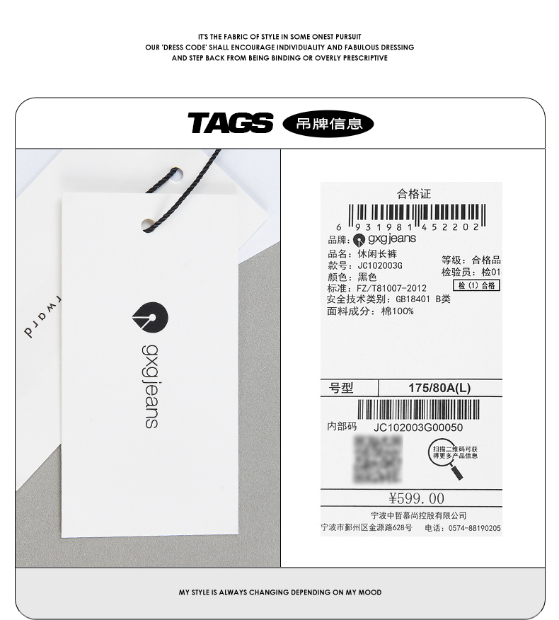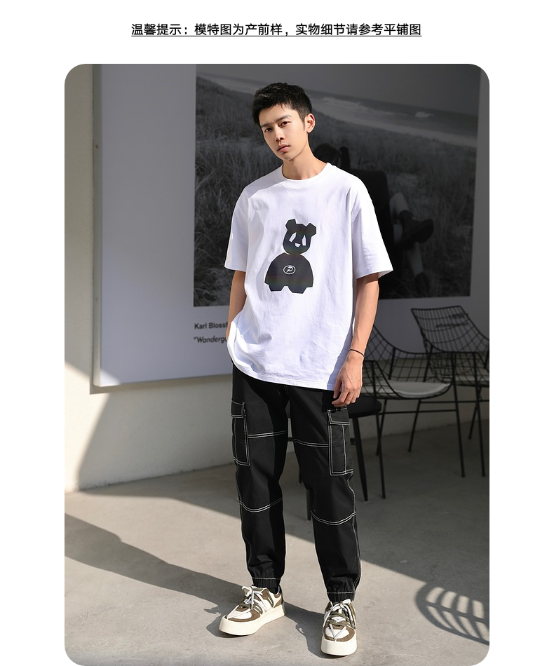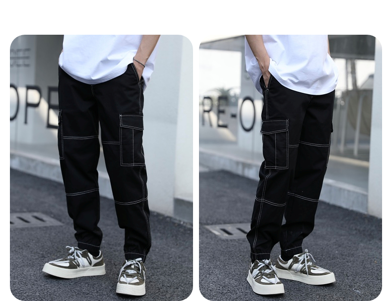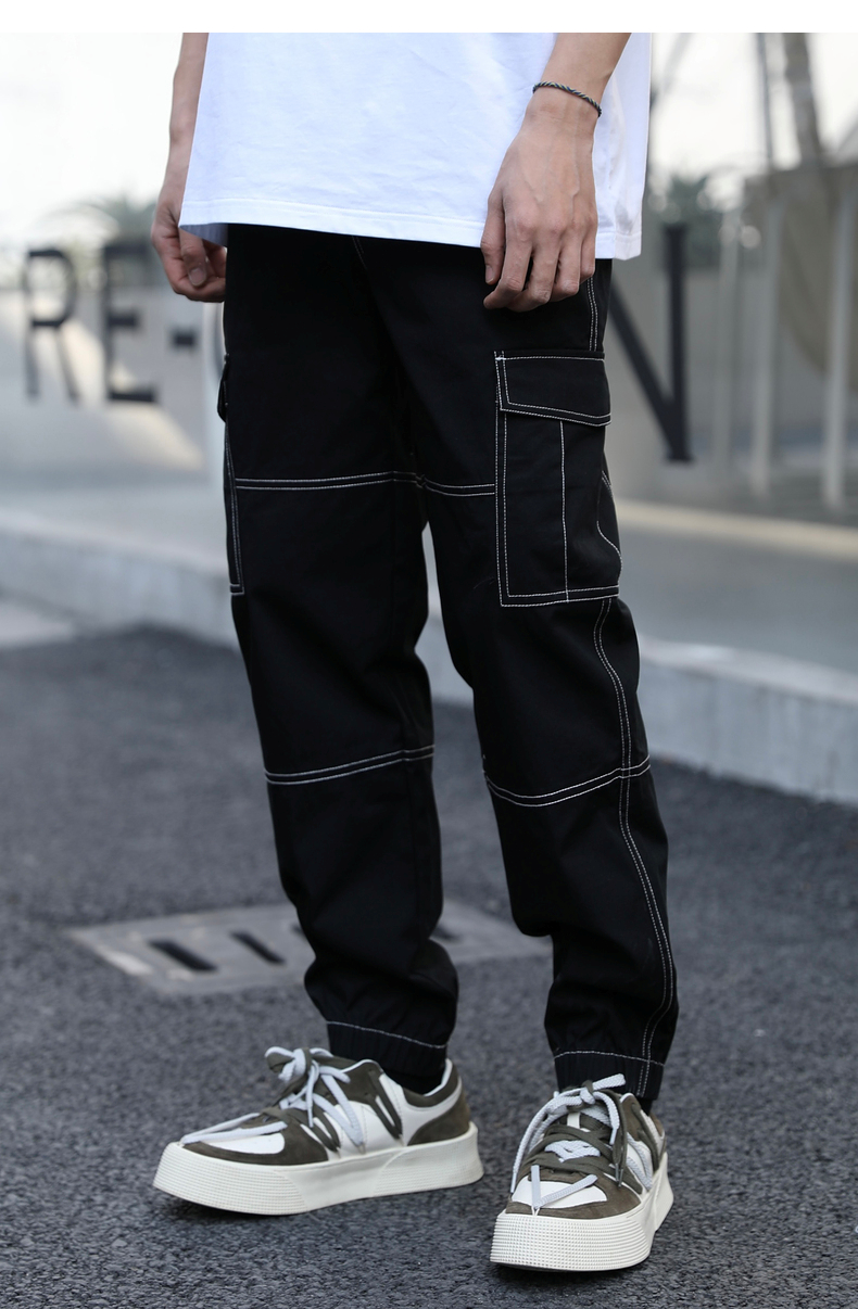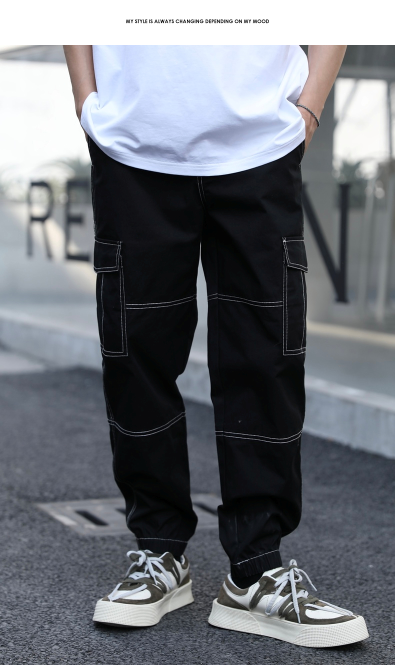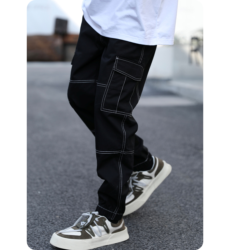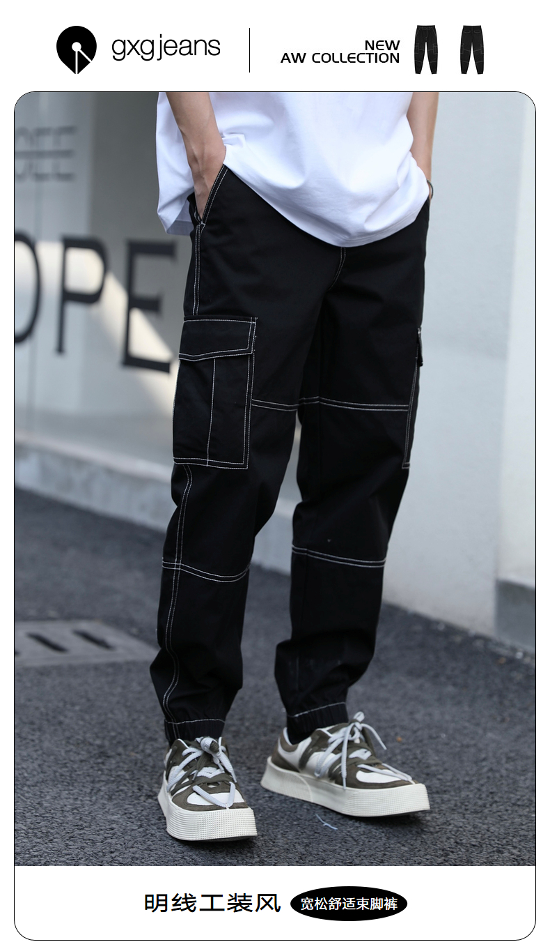 gxg.jeans男装束脚休闲裤黑色明线工装宽松棉质运动裤子潮JC102003G