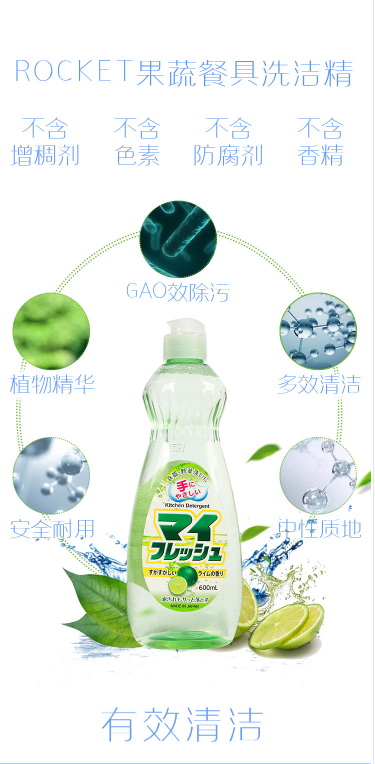 日本原装火箭rocket洗洁精 餐具果蔬去油不伤手无添加600ml清洁剂洗涤剂1.6