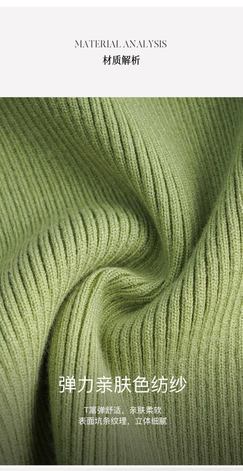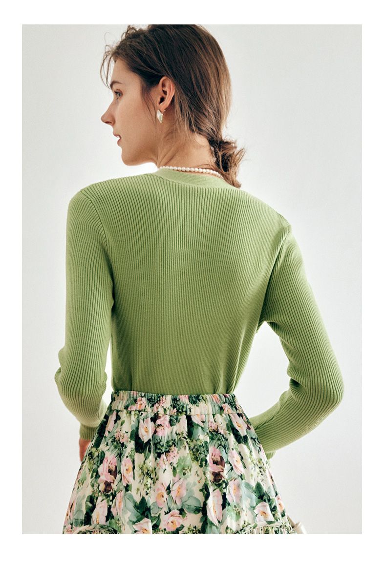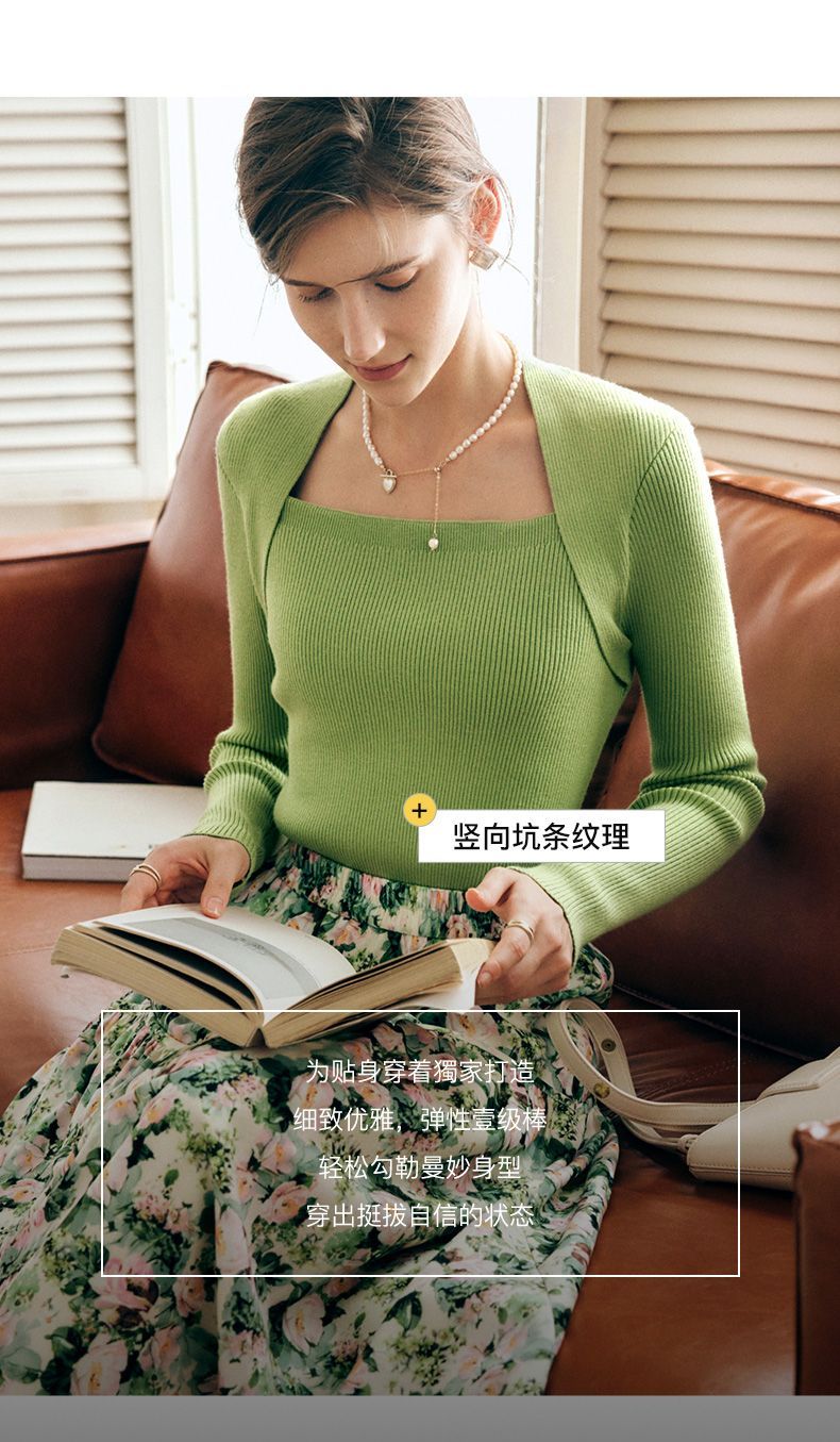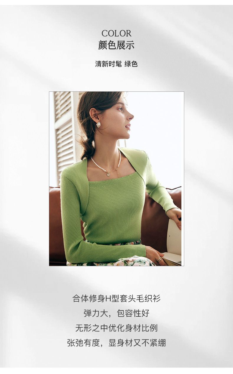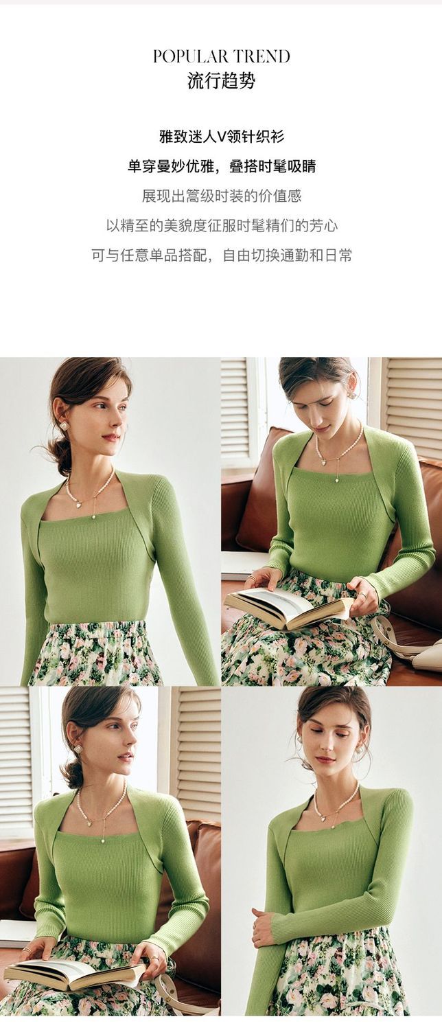 OLrain欧芮儿法式绿色套头针织衫女秋季2022年新款修身假两件毛衣