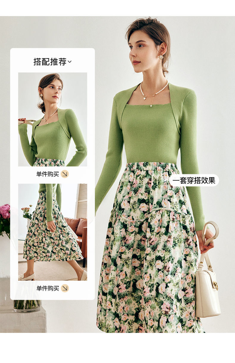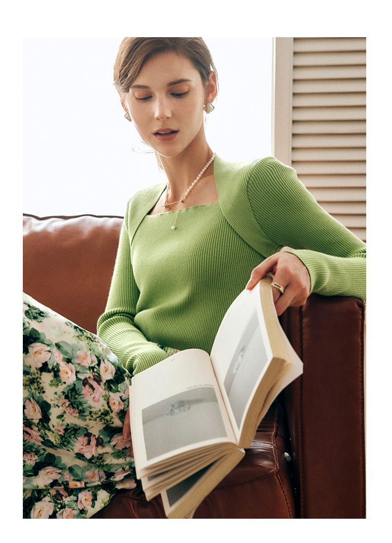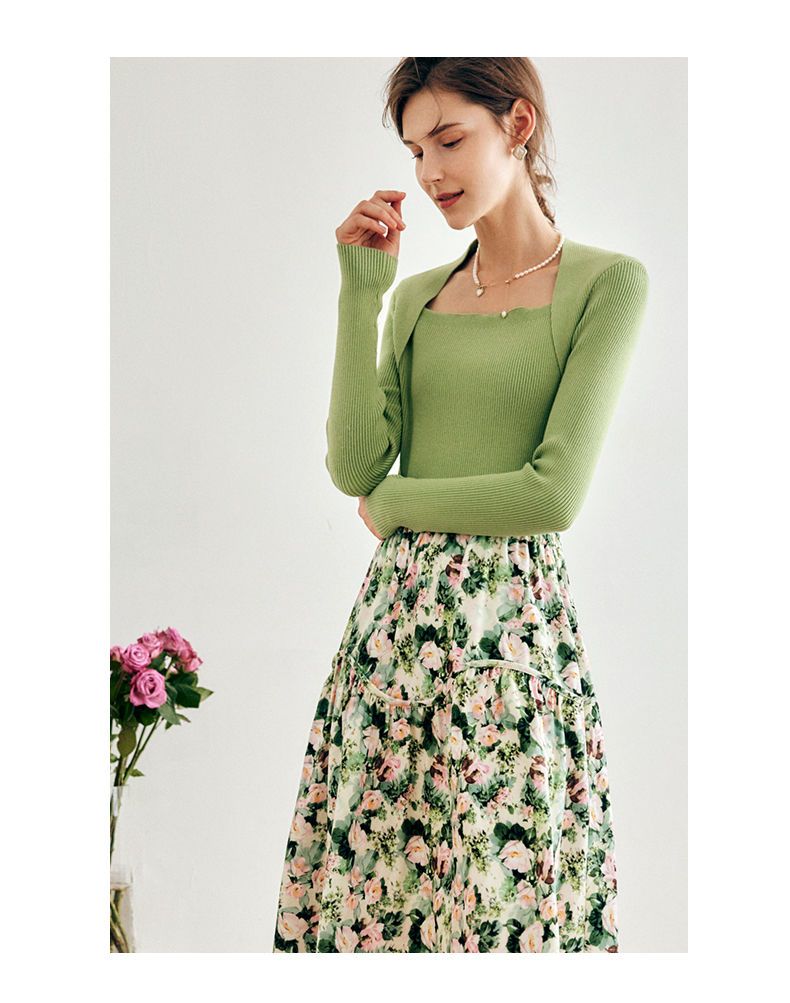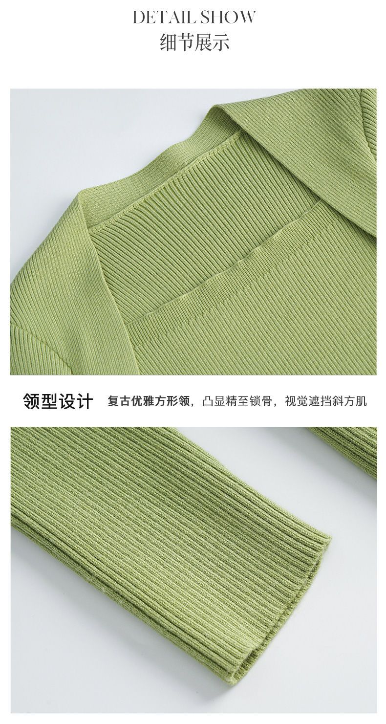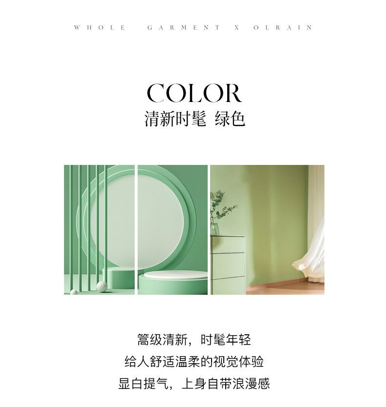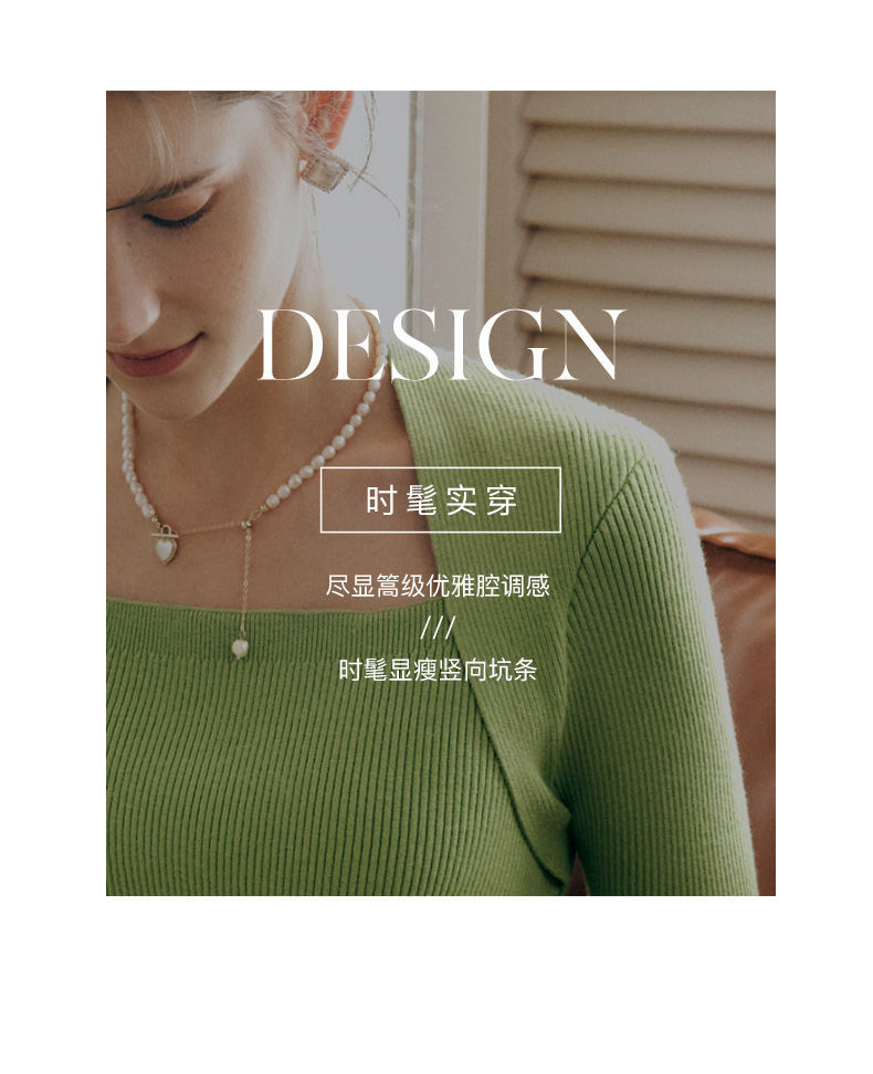 OLrain欧芮儿法式绿色套头针织衫女秋季2022年新款修身假两件毛衣