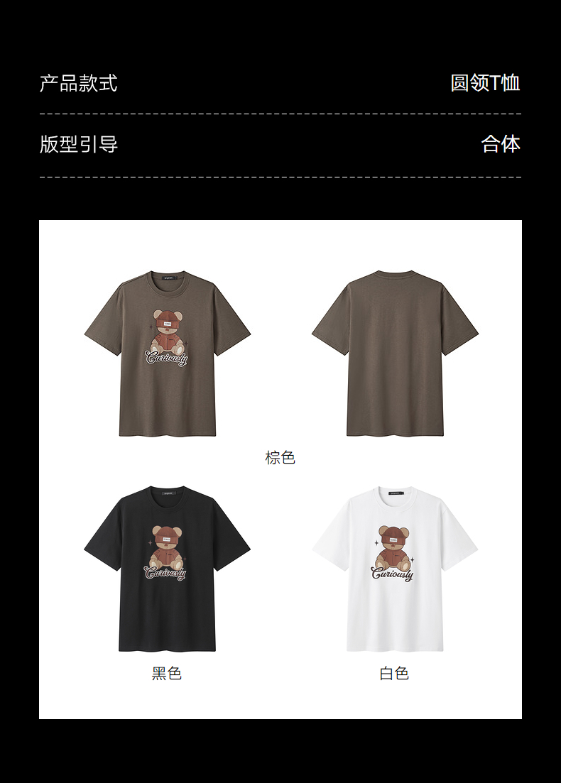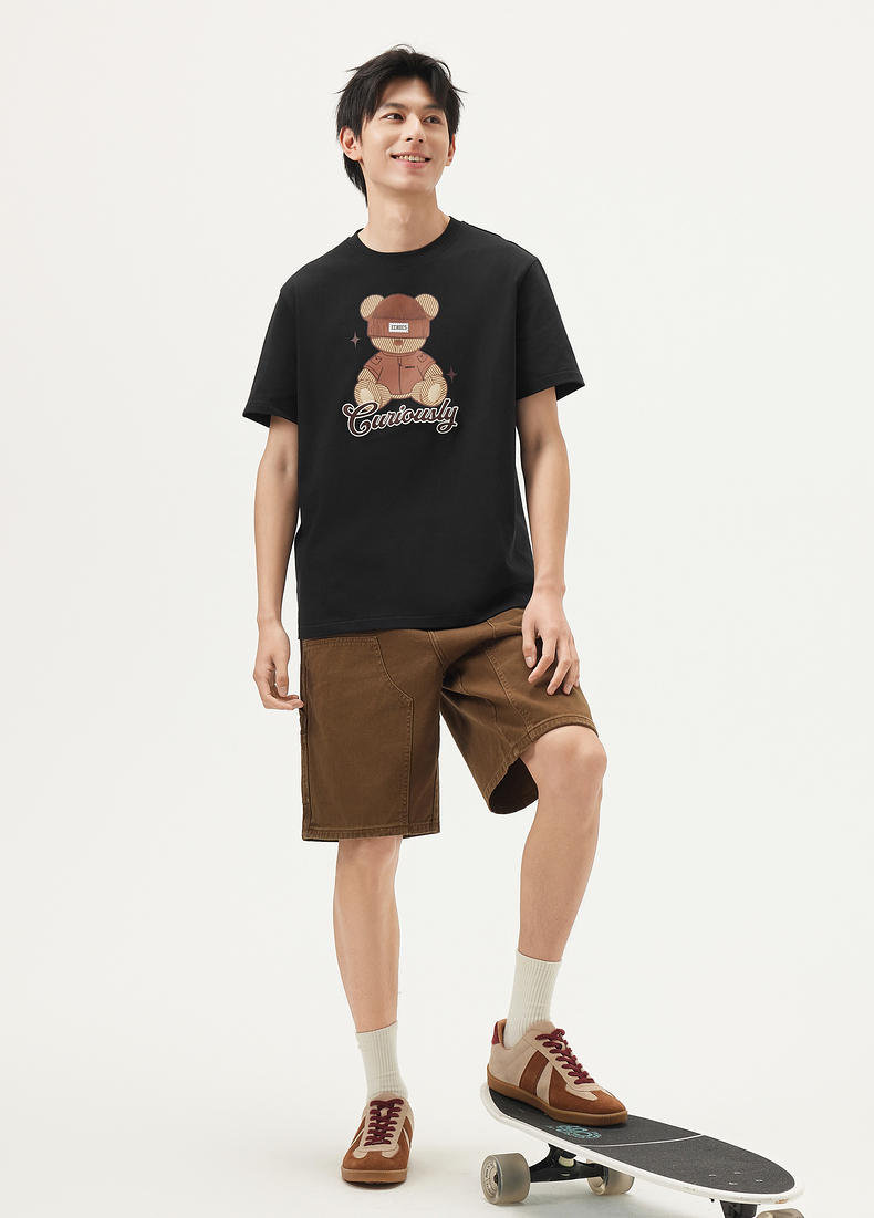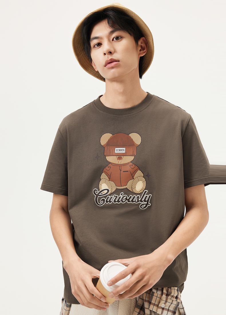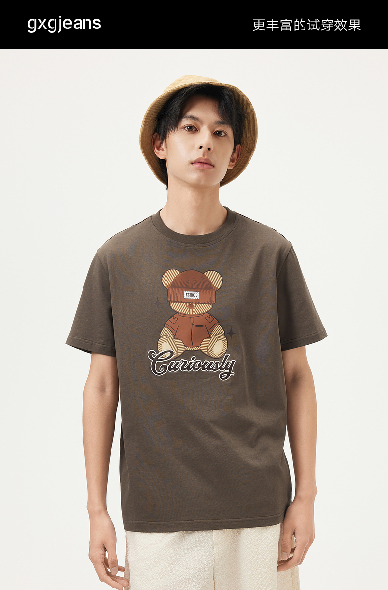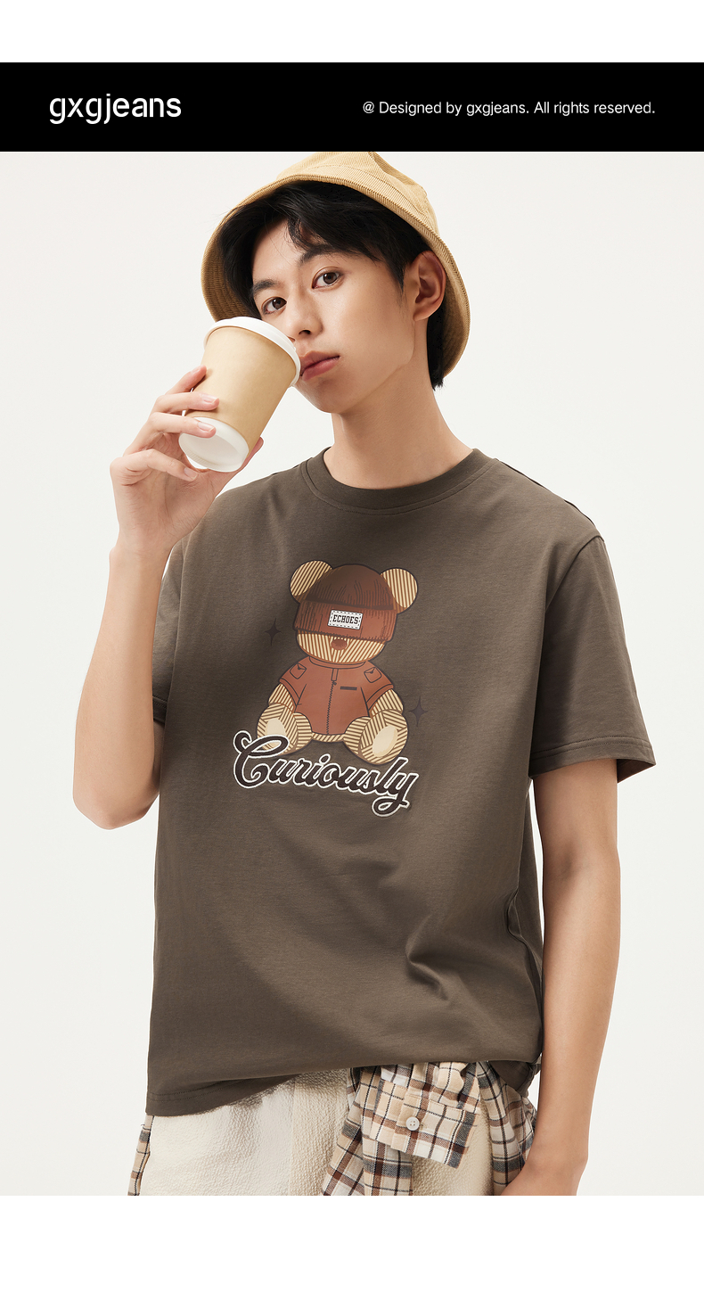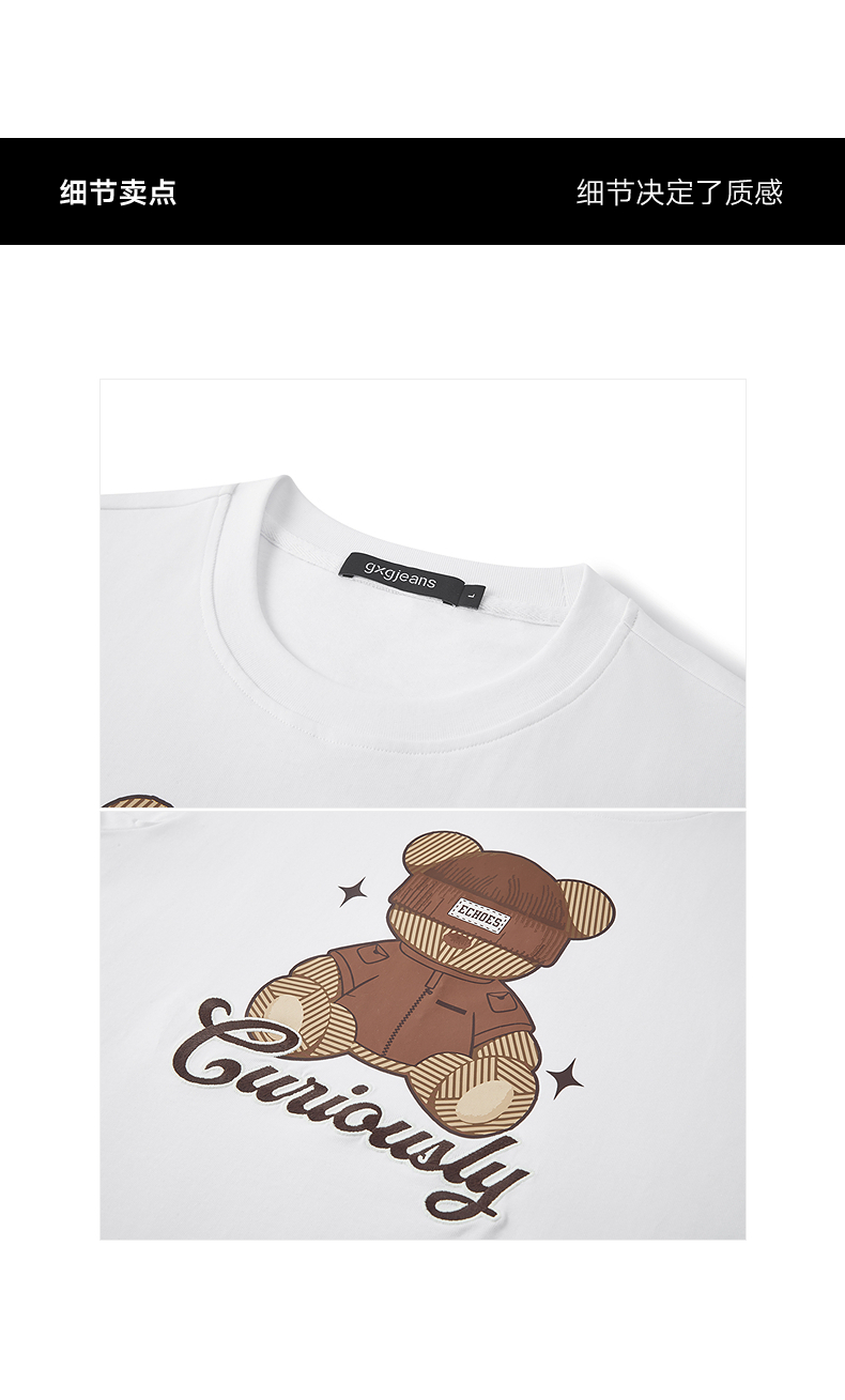 gxg.jeans男装 多色小熊图案潮流时尚宽松圆领短袖T恤男 25夏热卖