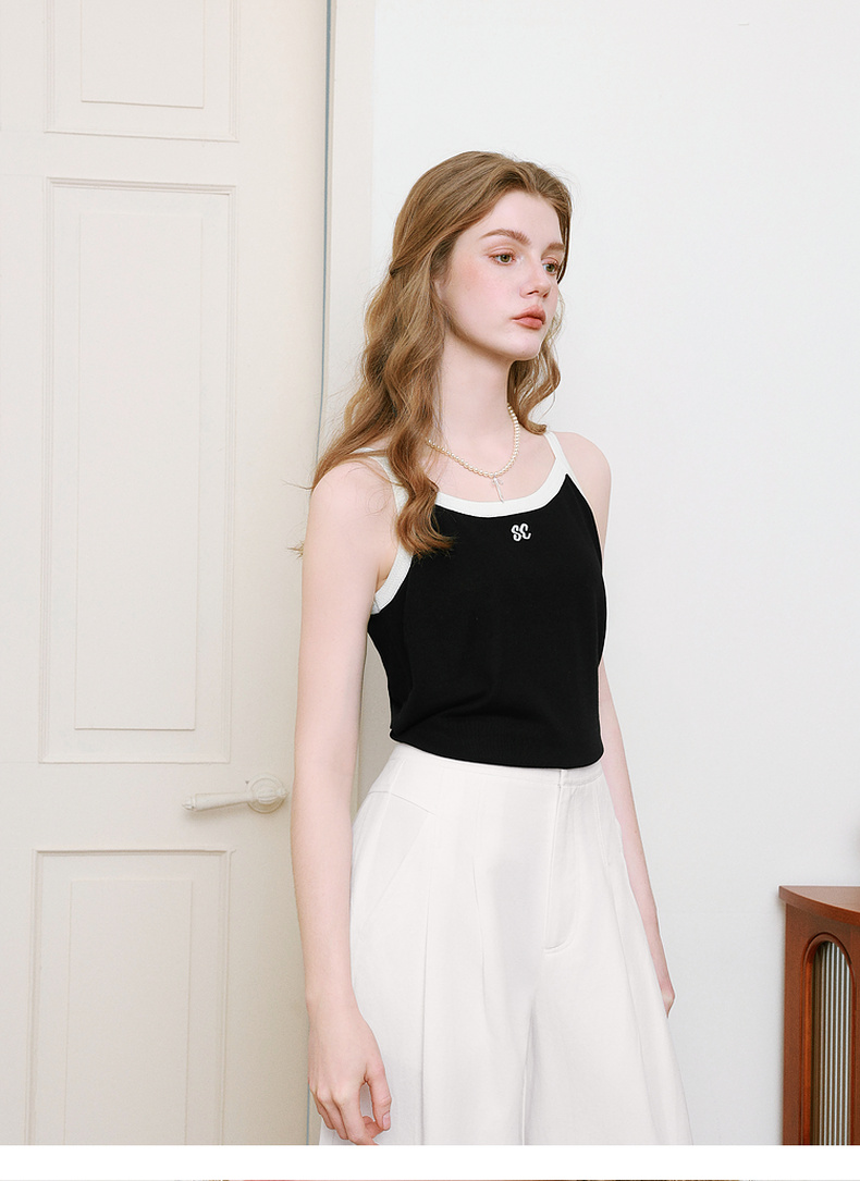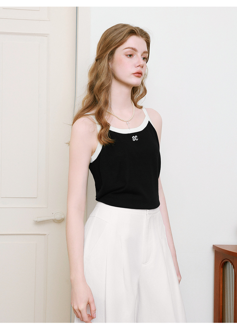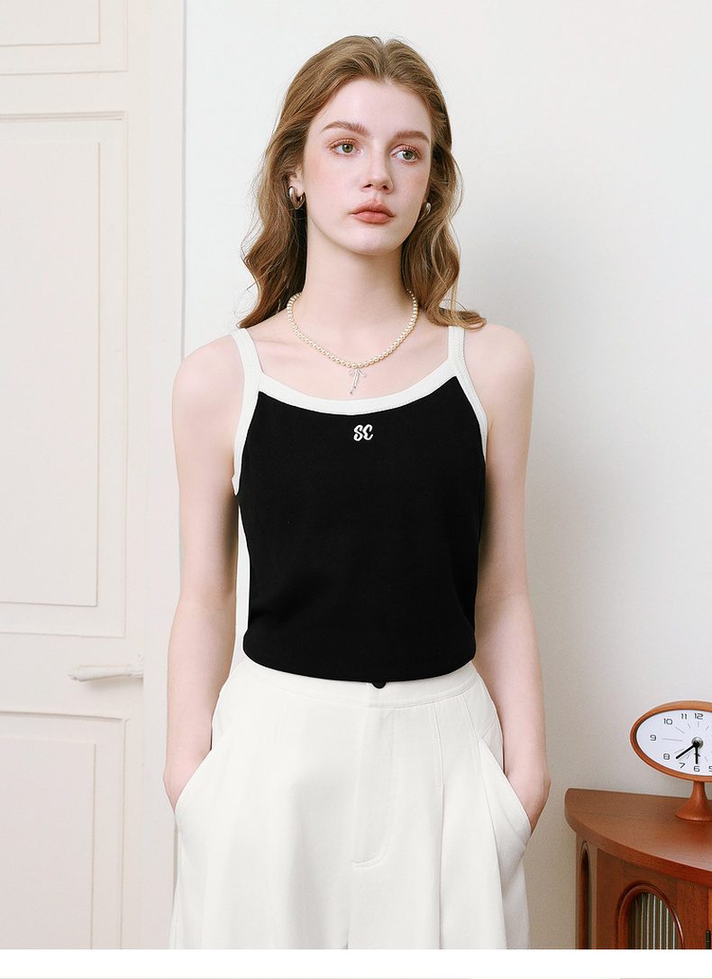 【商场同款】诗凡黎圆领刺绣吊带背心25夏新款针织上衣3G4130781