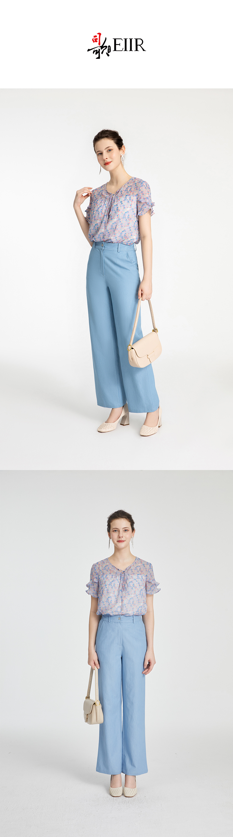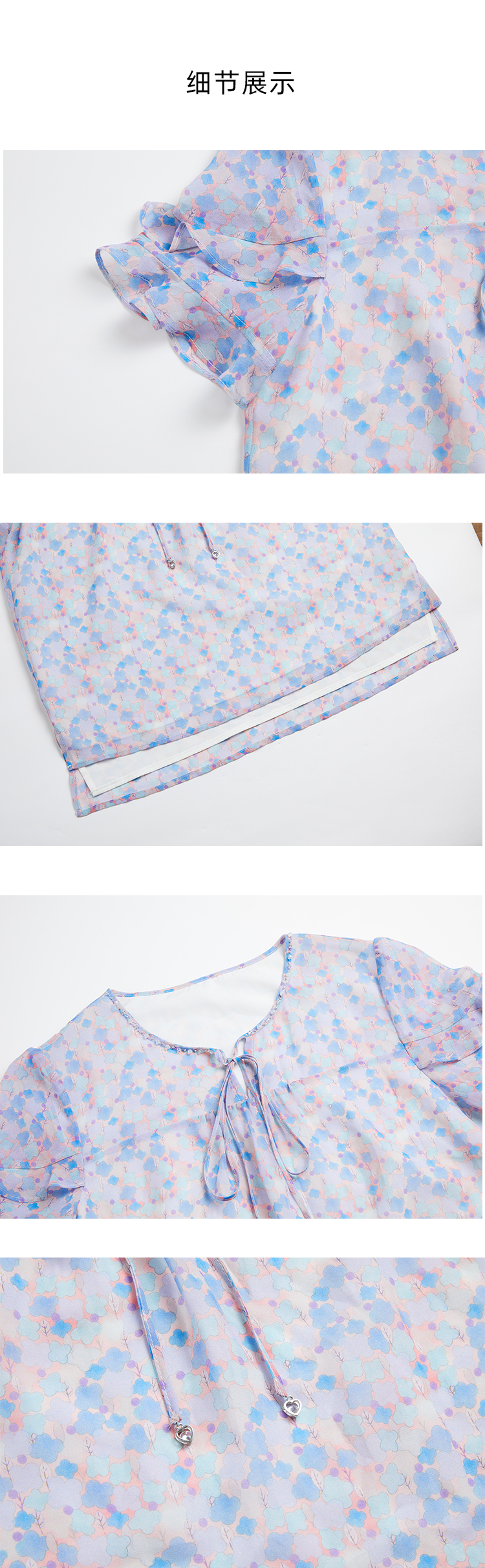 司歌雪纺荷叶V领显瘦上衣T881274