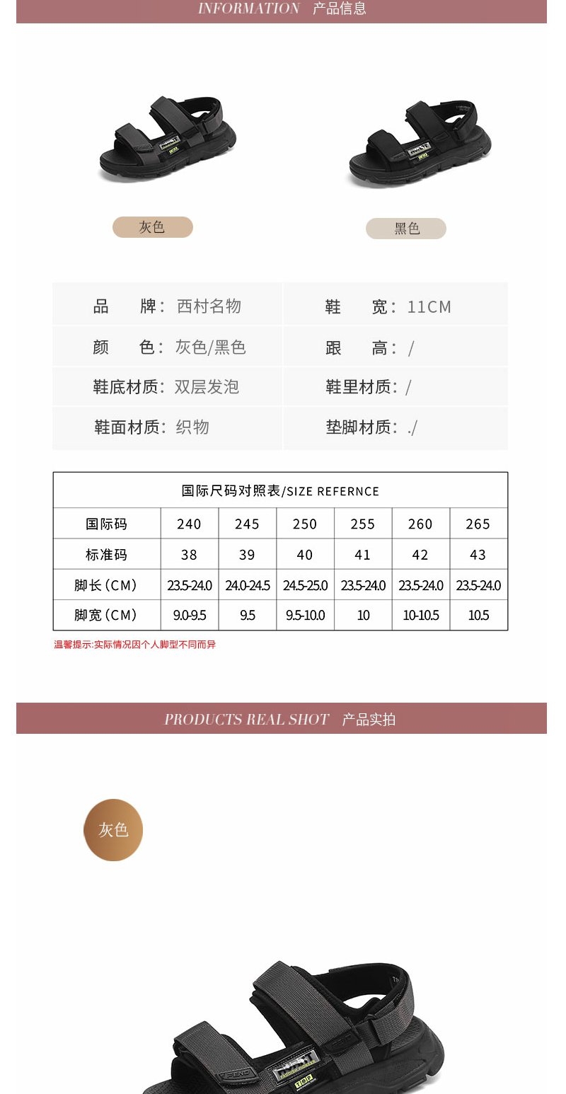 西村名物2022年夏新款透气运动休闲沙滩男凉鞋24561