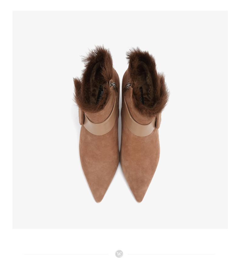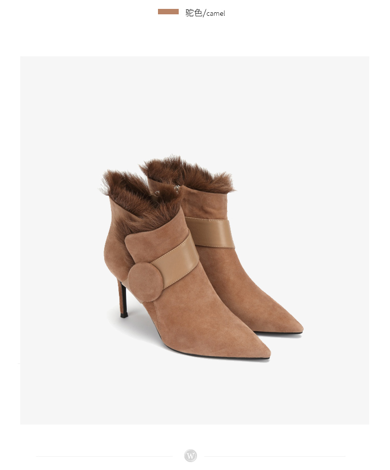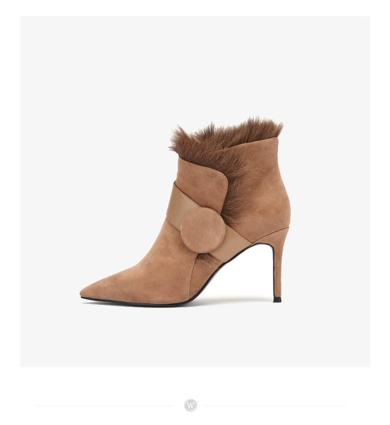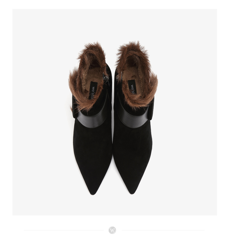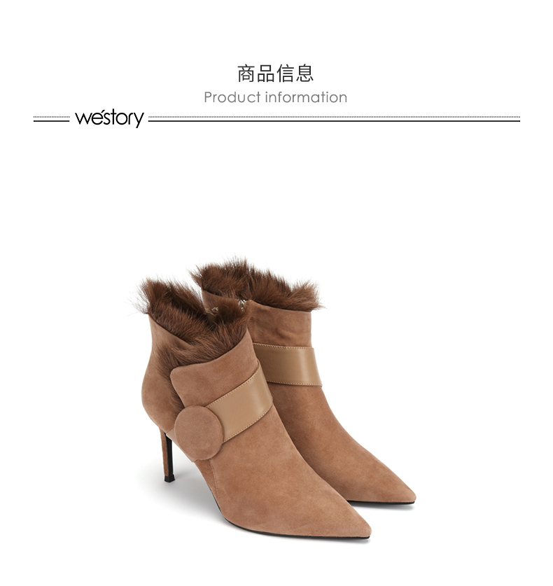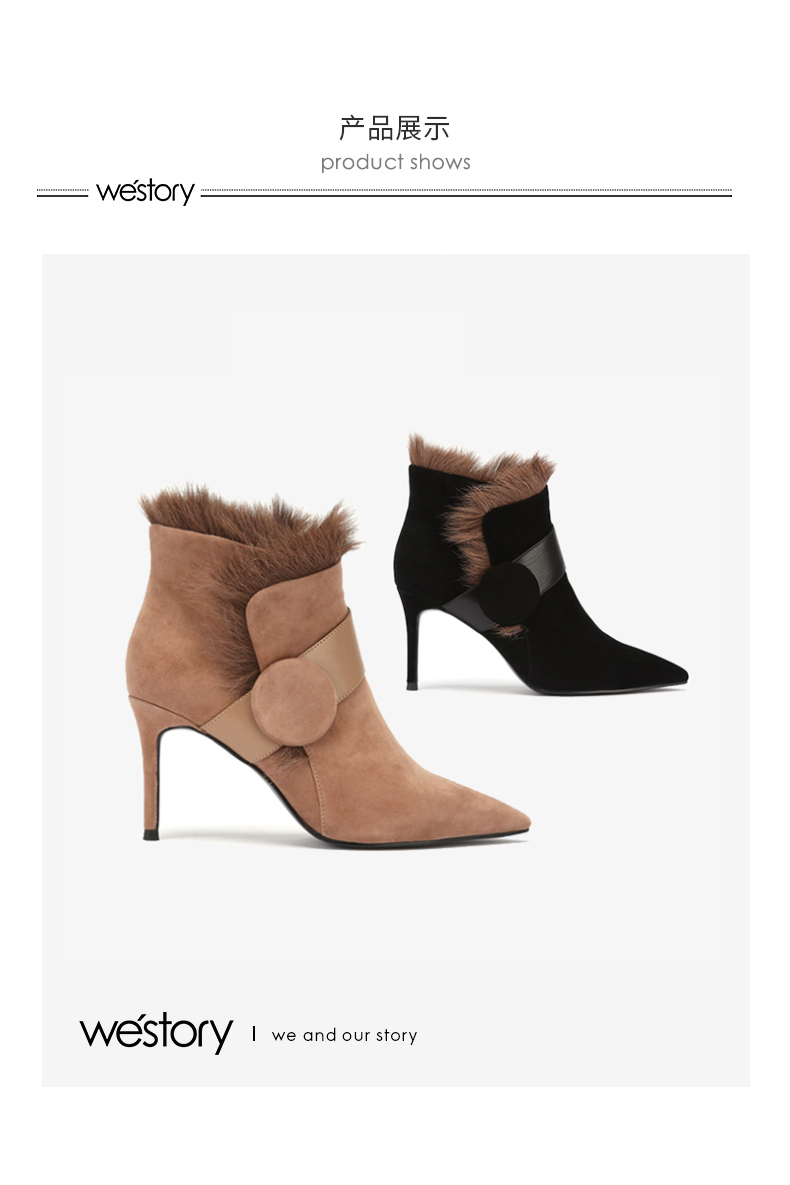 westory商场同款冬季时尚高跟短靴细跟尖头毛毛靴子W284S81201