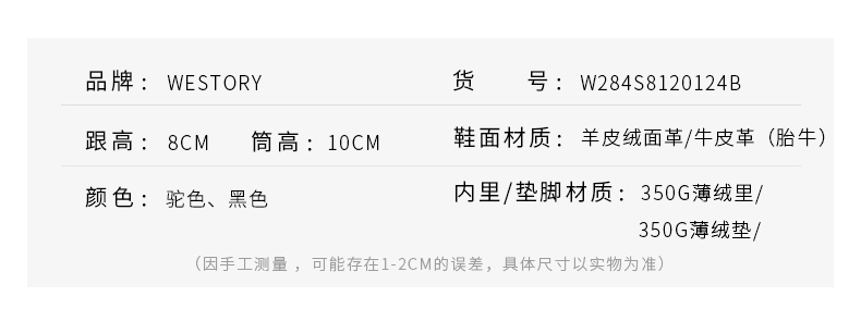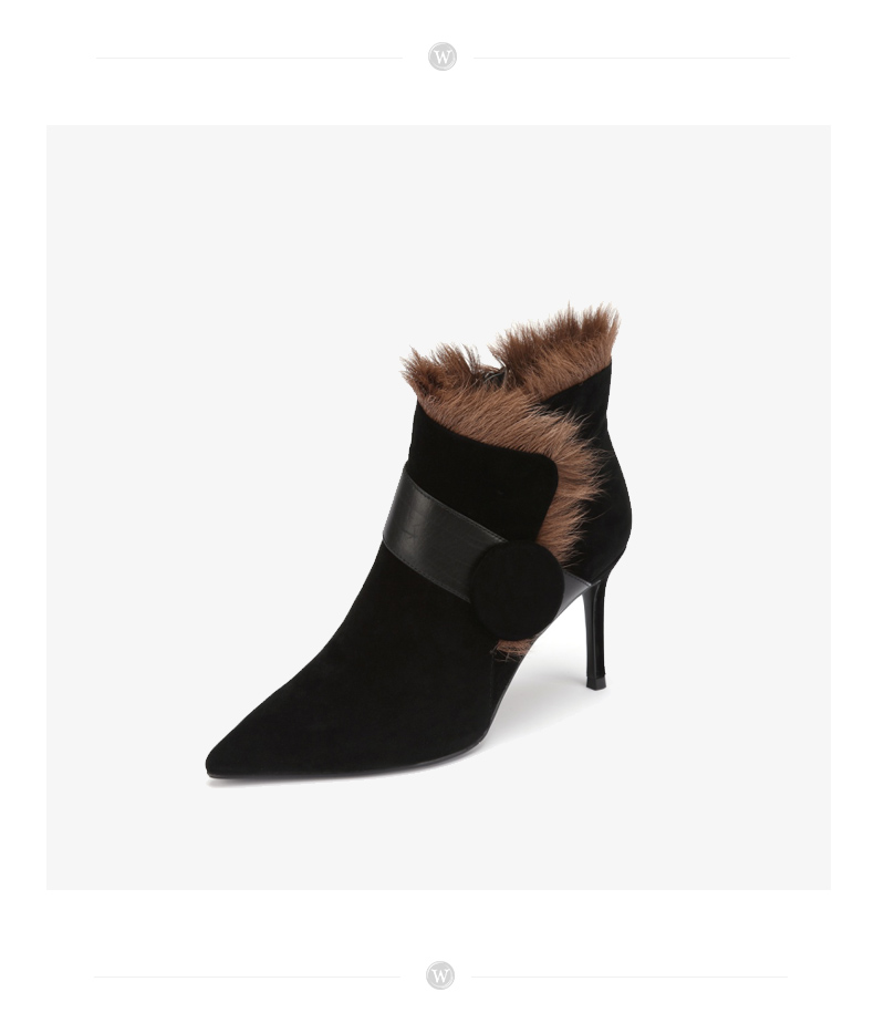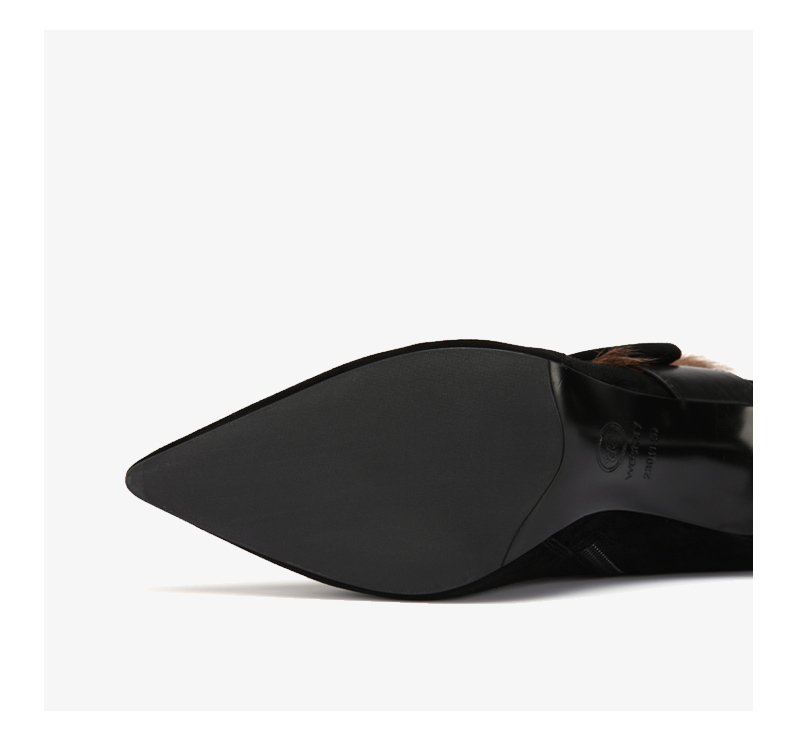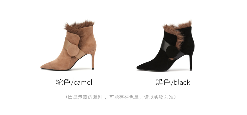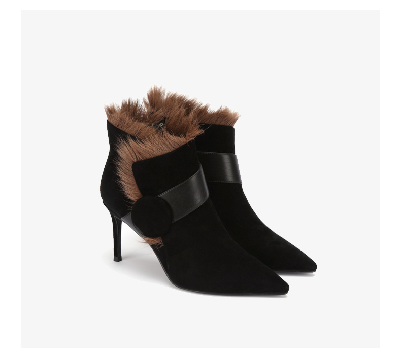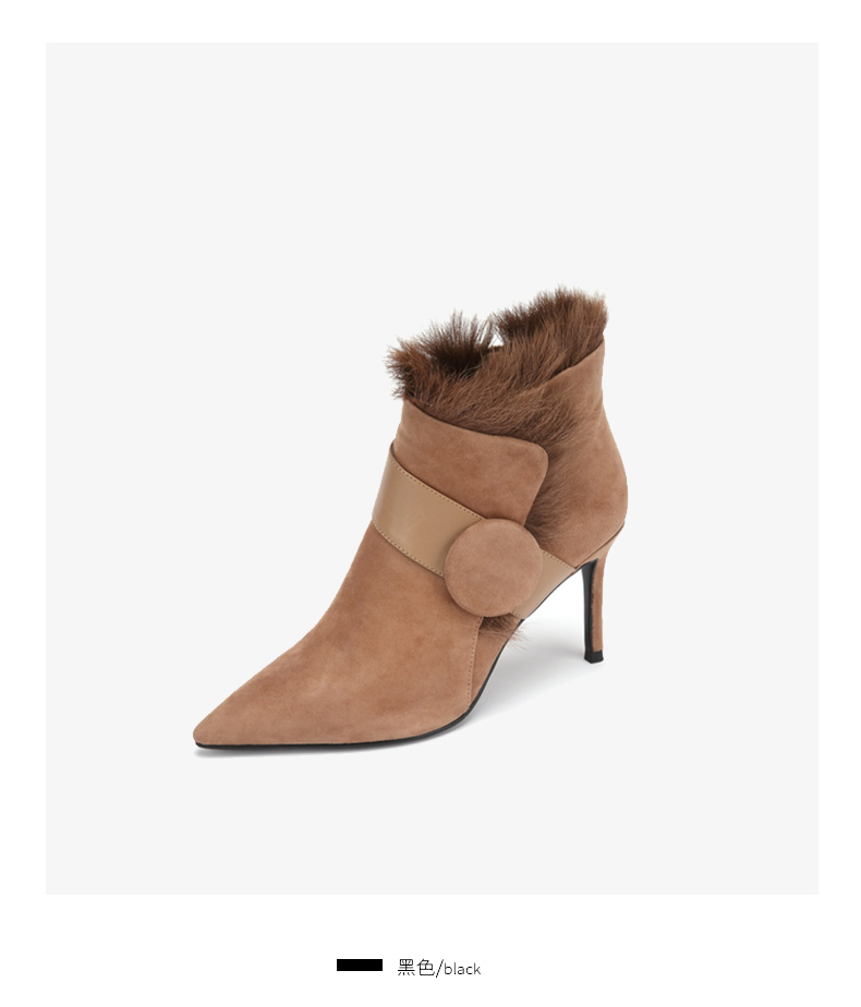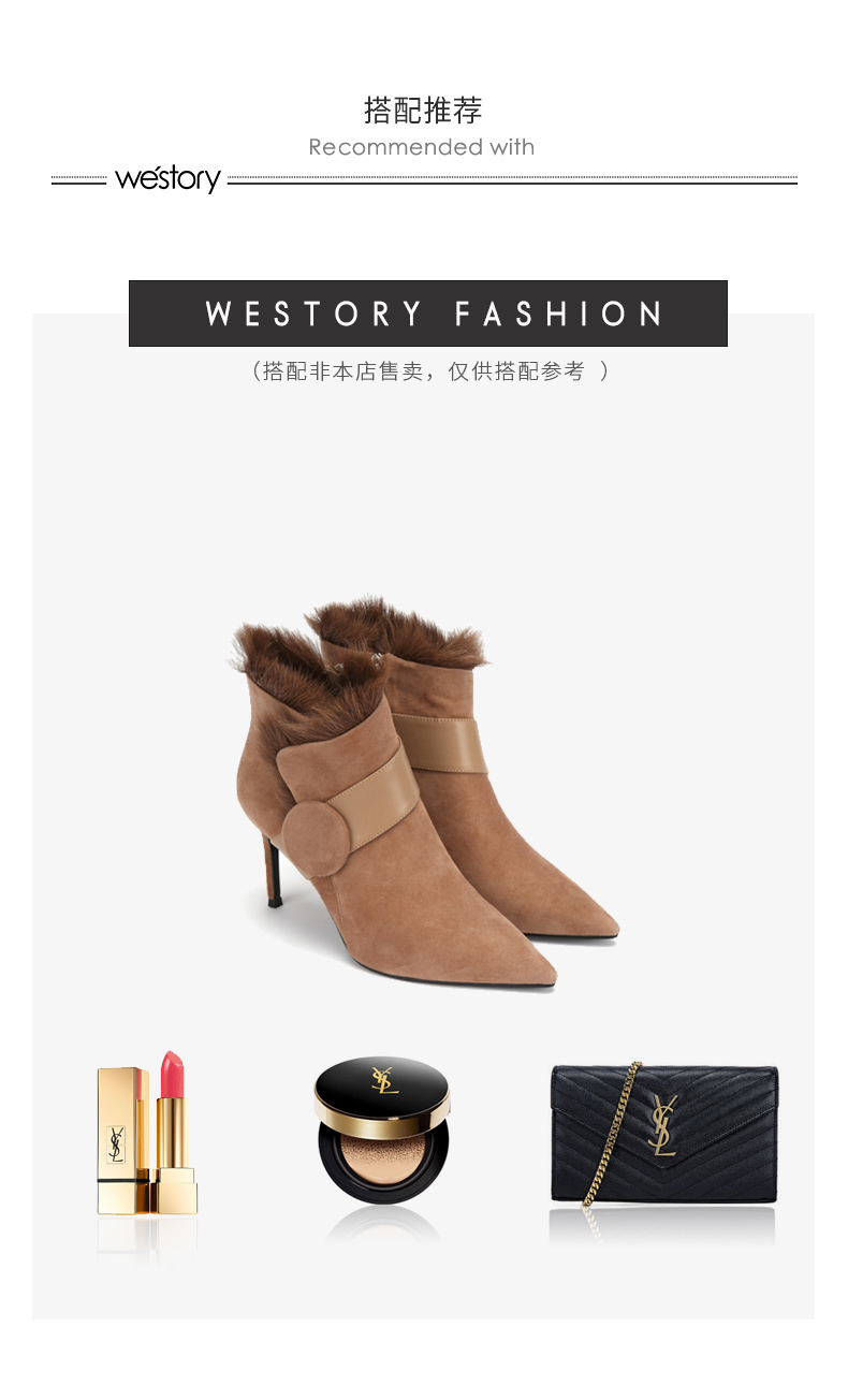 westory商场同款冬季时尚高跟短靴细跟尖头毛毛靴子W284S81201