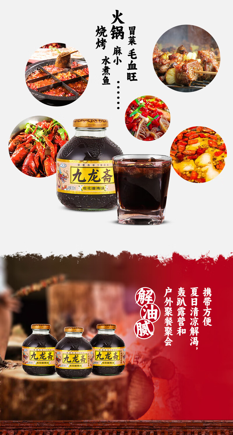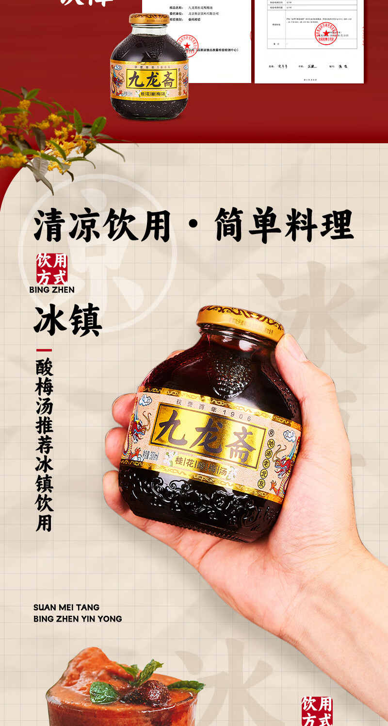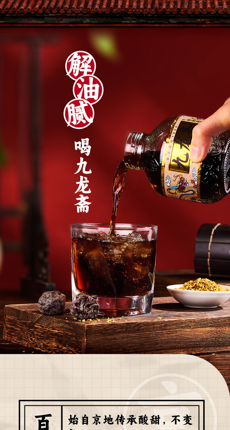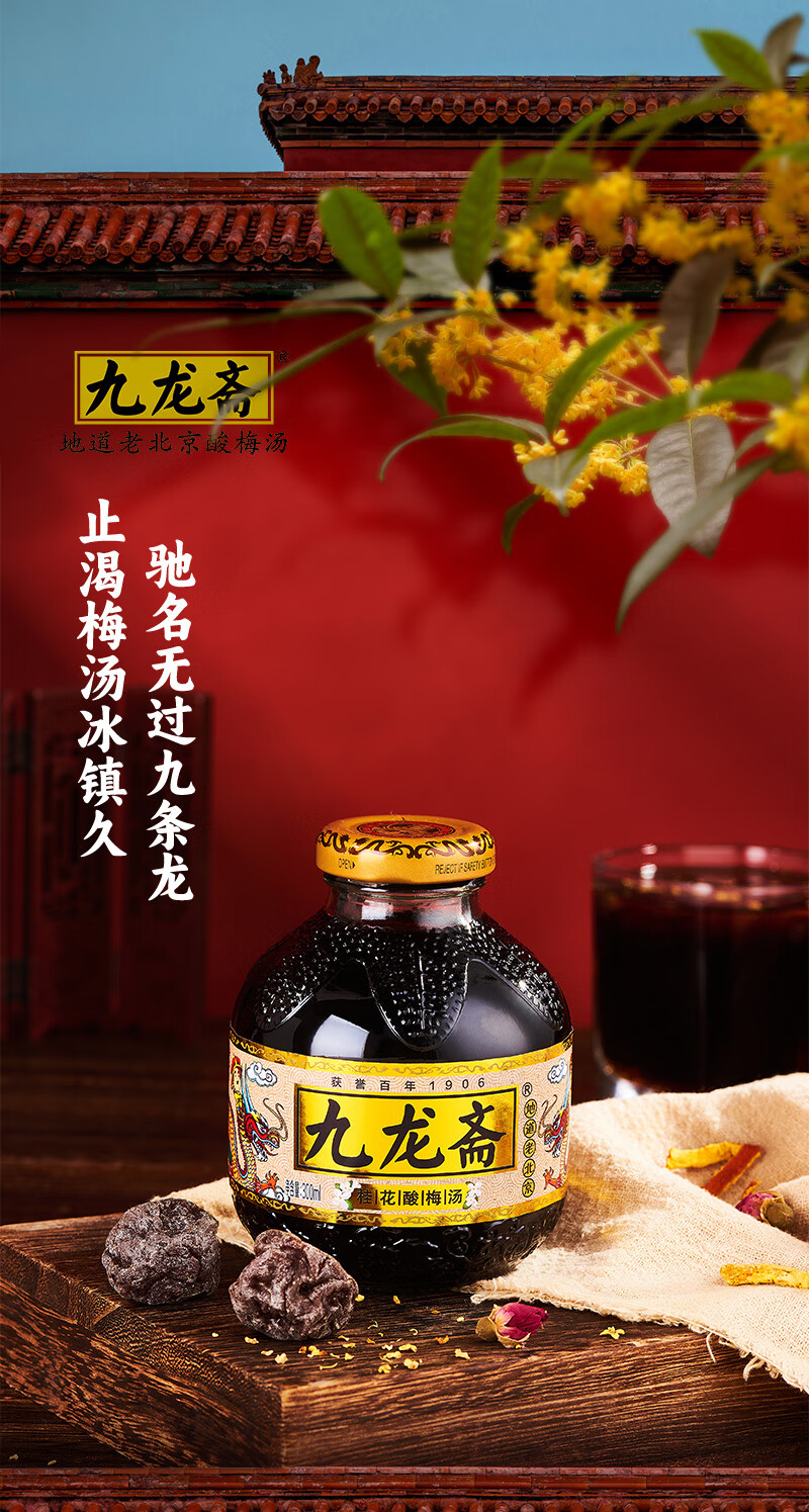 九龙斋 老北京 酸梅汤 300ml*12瓶 酸梅汁 饮料 整箱 火锅伴侣 清爽解腻 新老包装随机发货