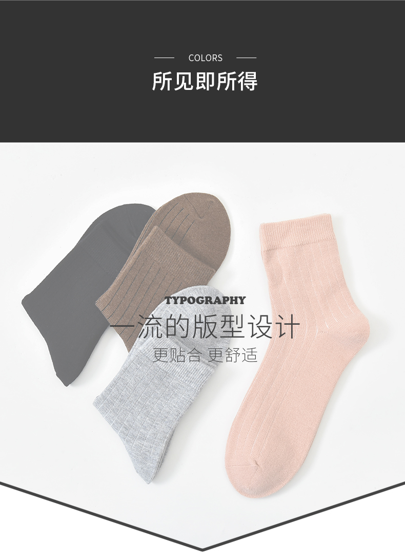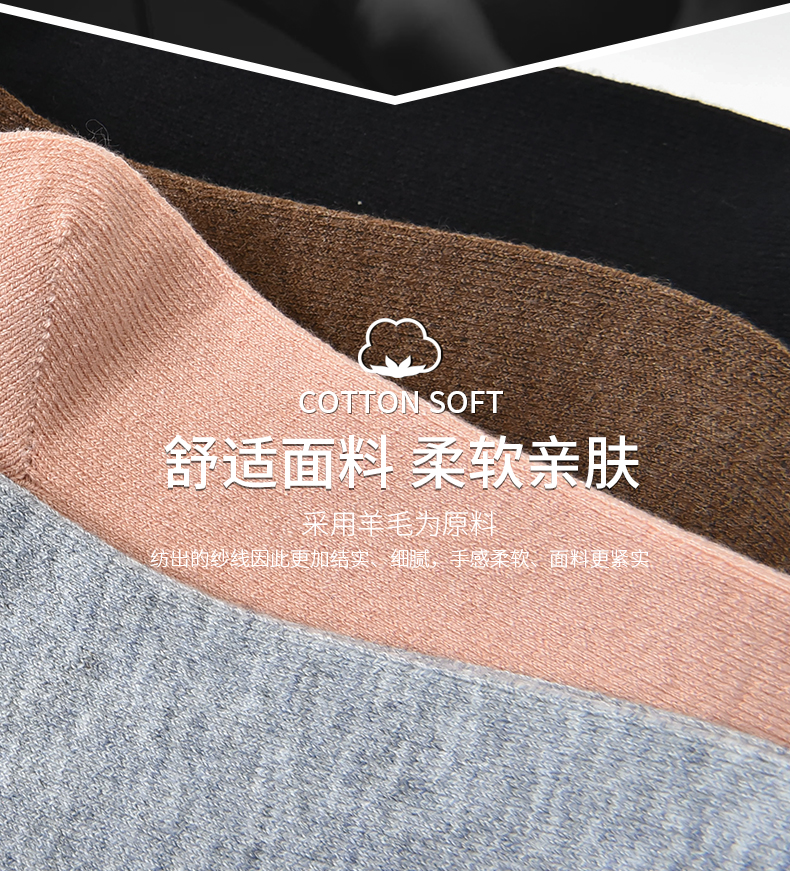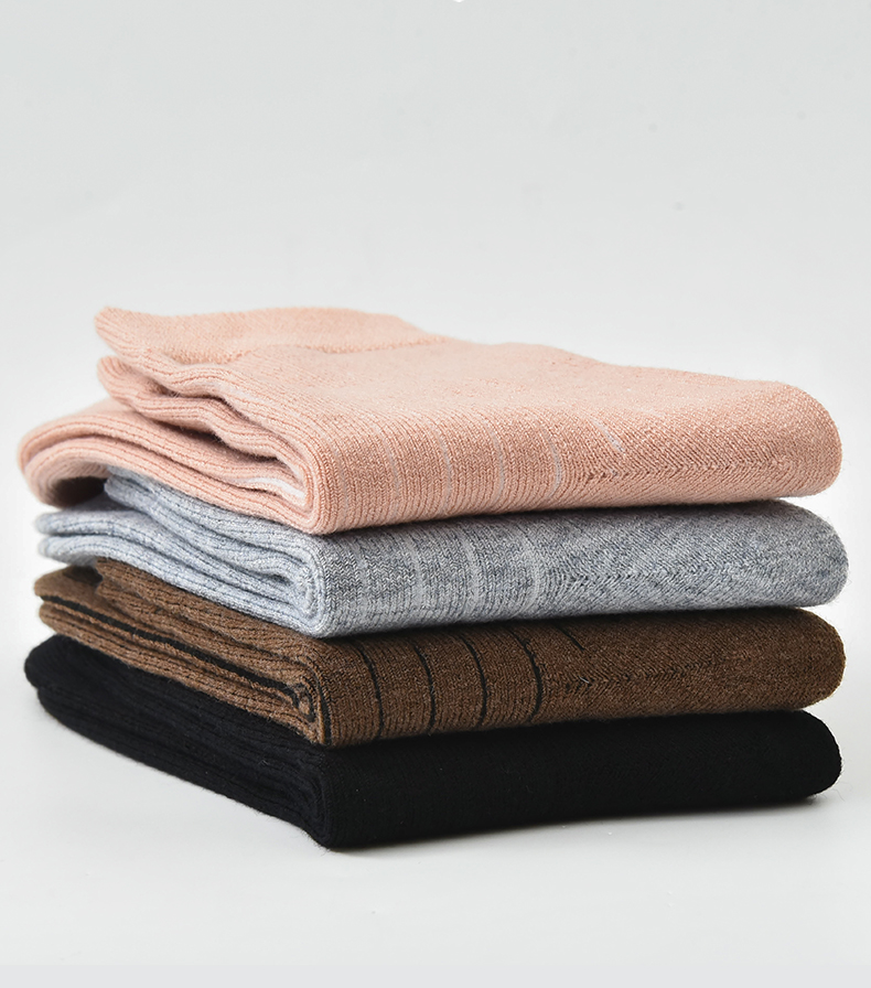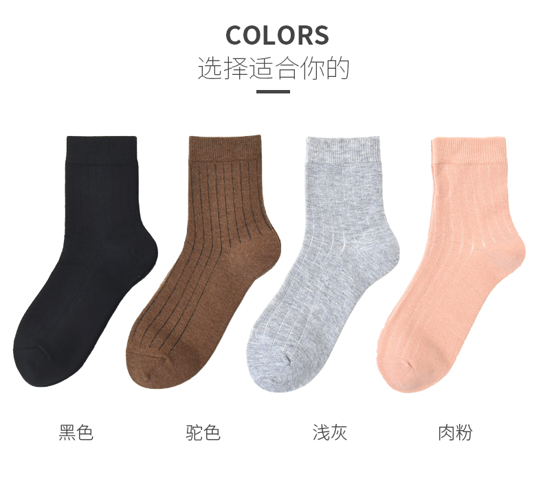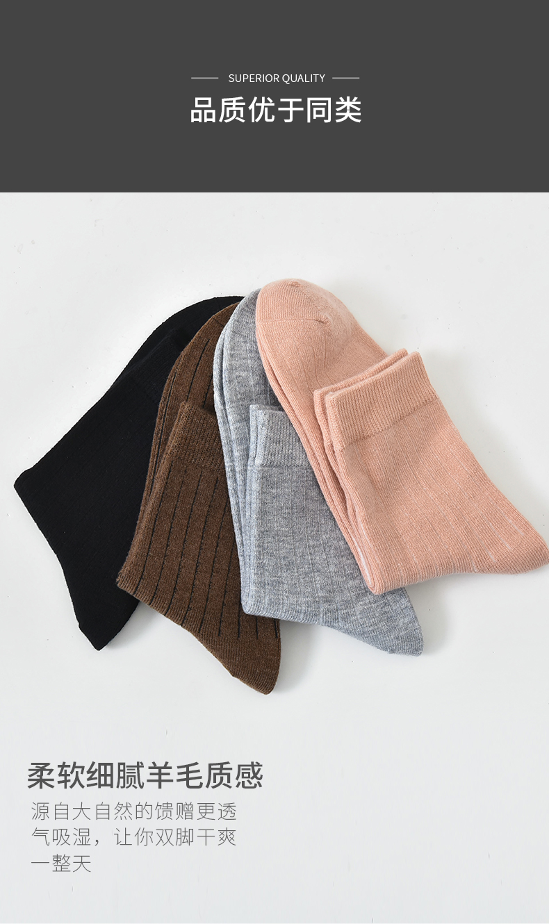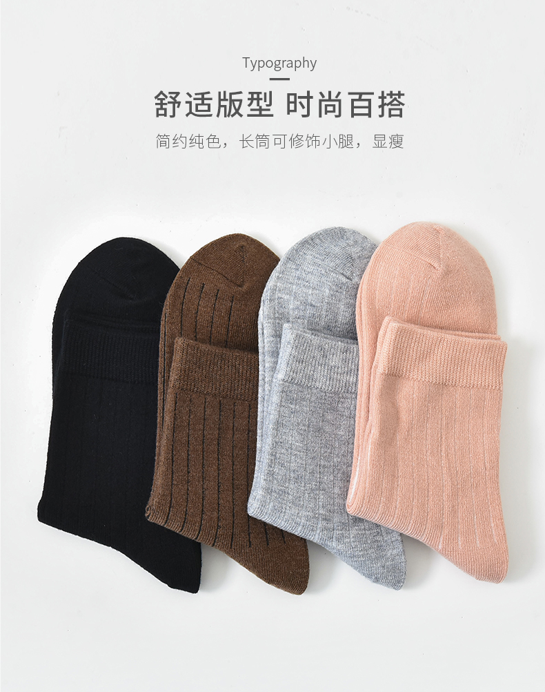 洁丽雅4双装羊毛女袜中筒袜保暖亲肤简约纯色袜子女