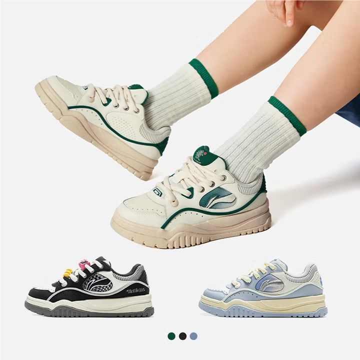 李宁女子2025春秋情侣鞋经典舒适防滑板鞋休闲鞋AGCV060-2