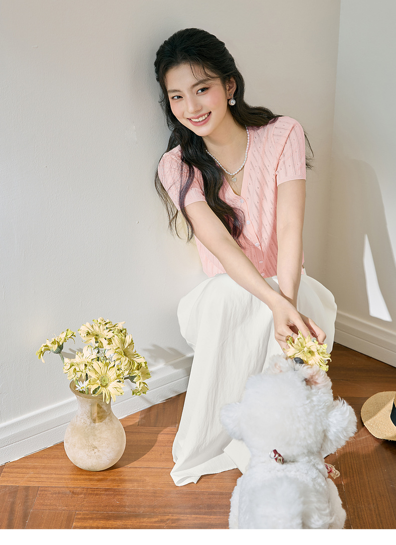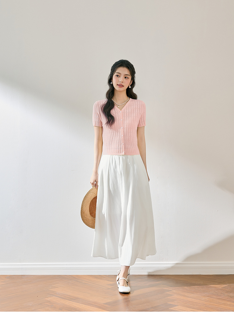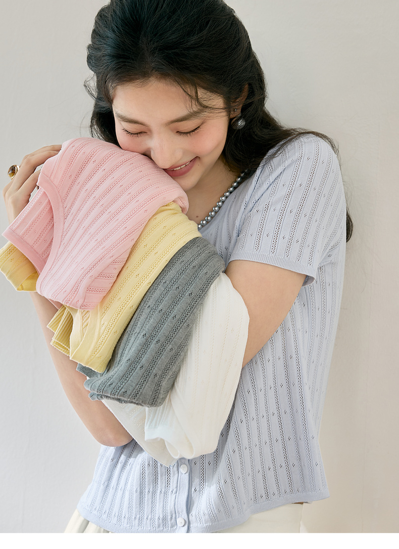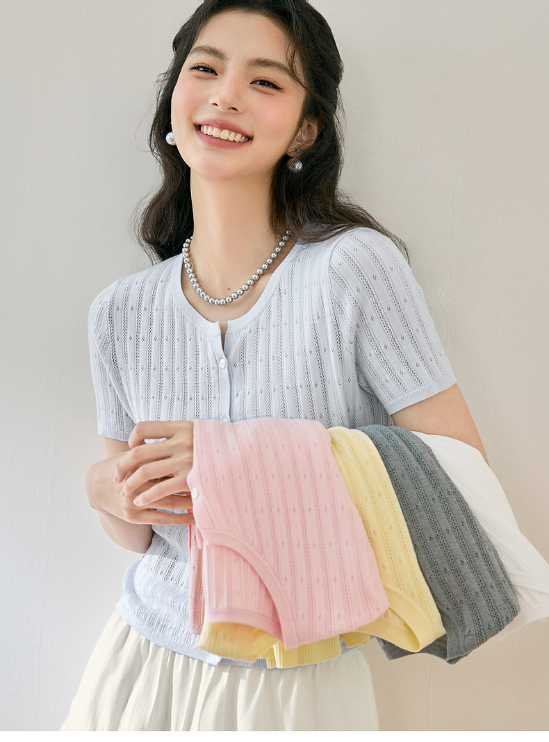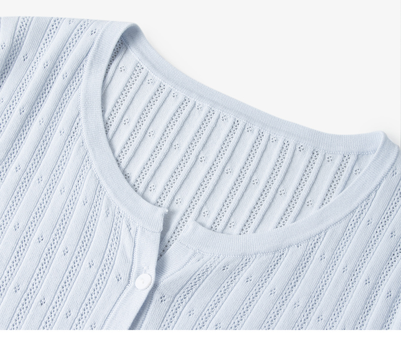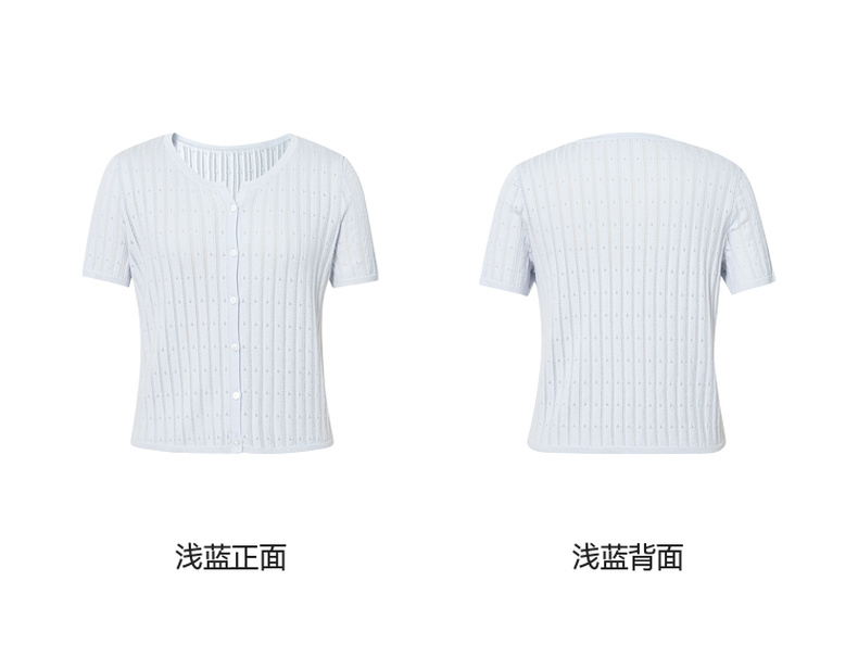 【严选】诗凡黎醋酸天丝镂空针织开衫2025夏新款温柔慵懒风半开领上衣7G4130651