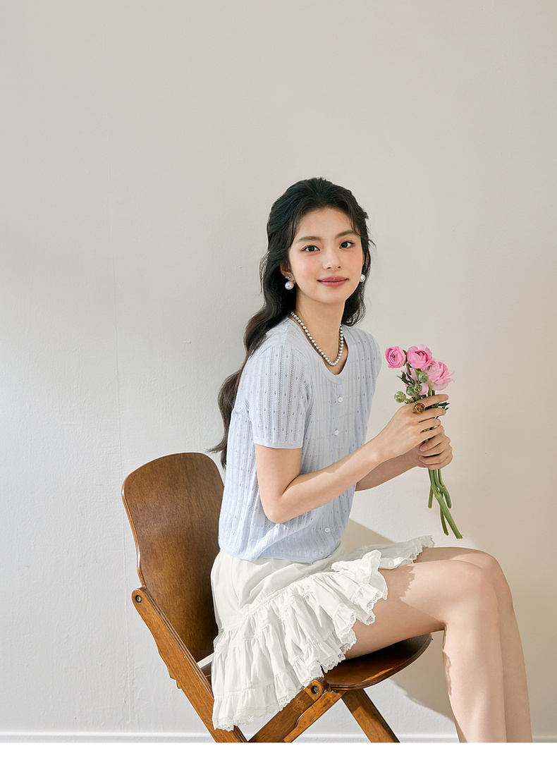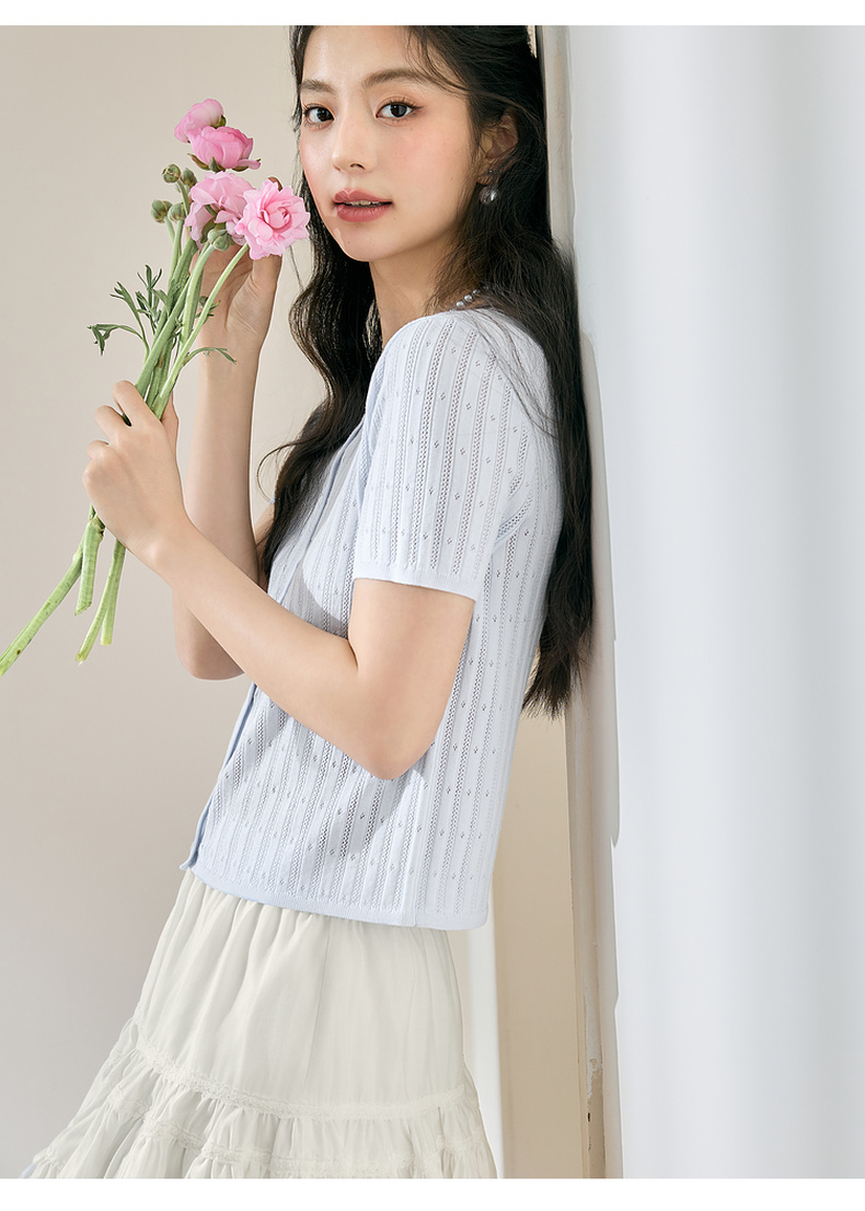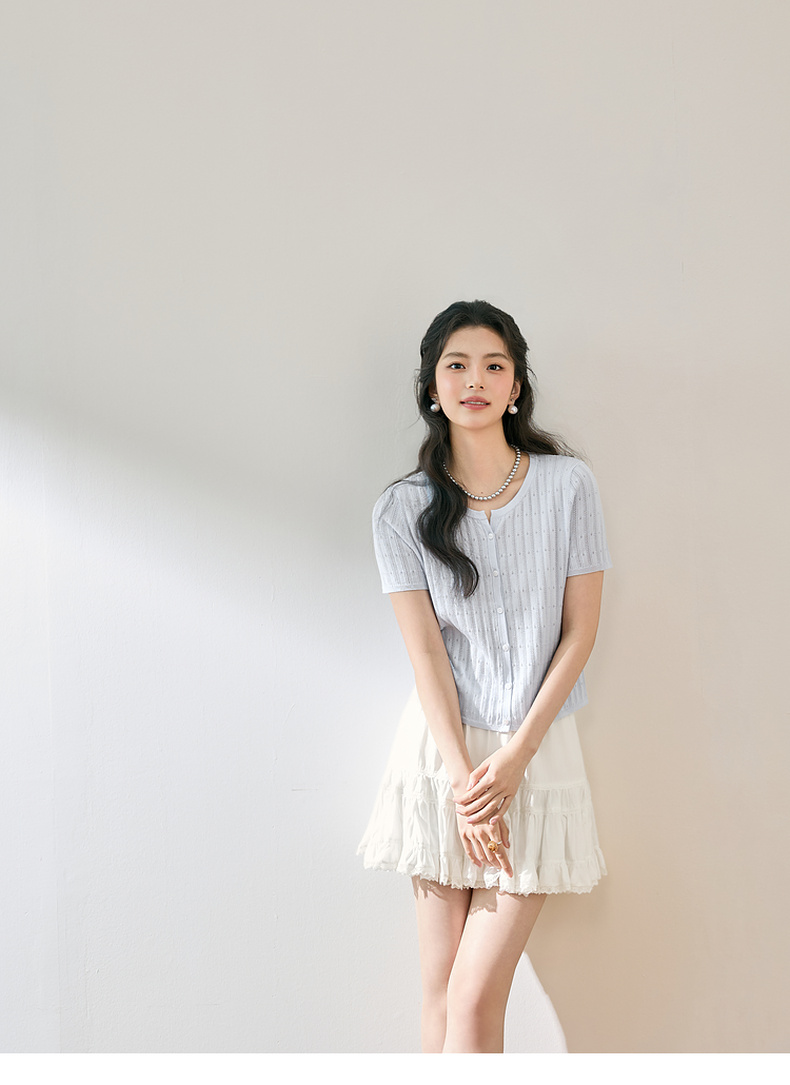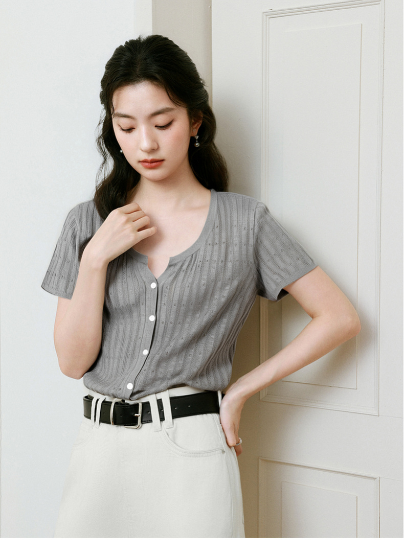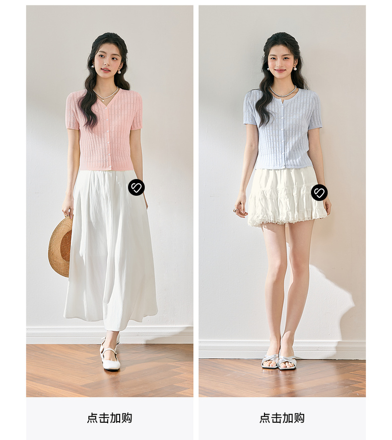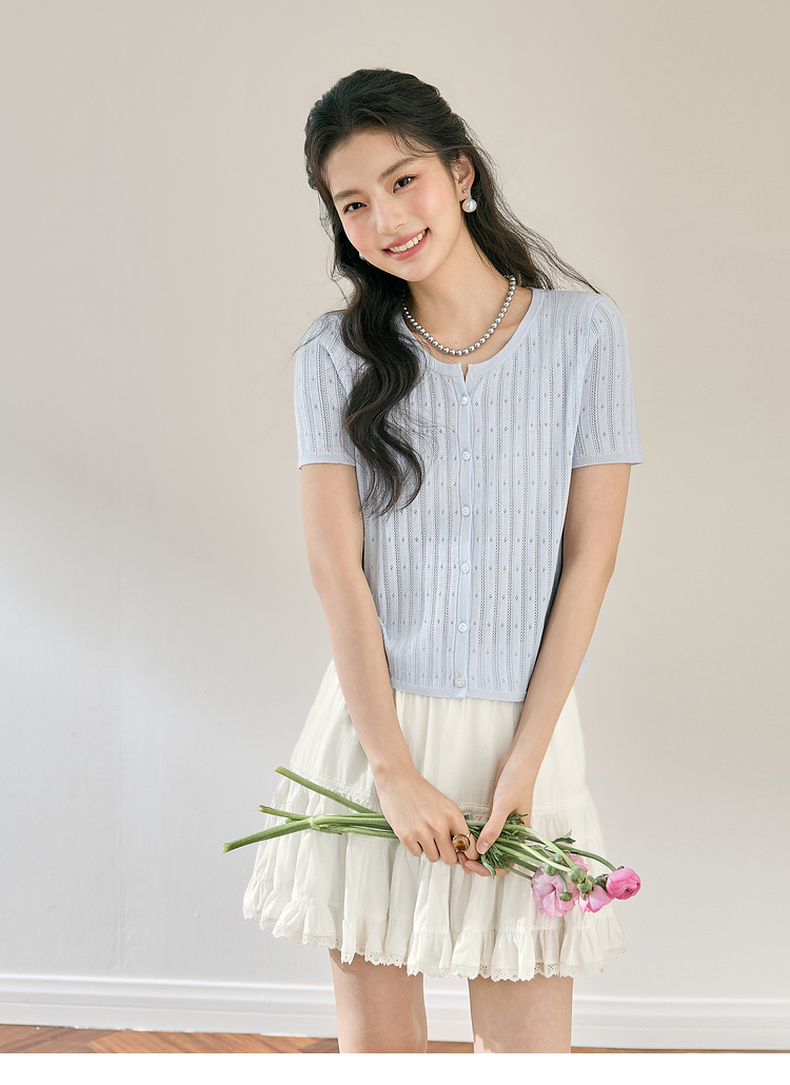 【严选】诗凡黎醋酸天丝镂空针织开衫2025夏新款温柔慵懒风半开领上衣7G4130651