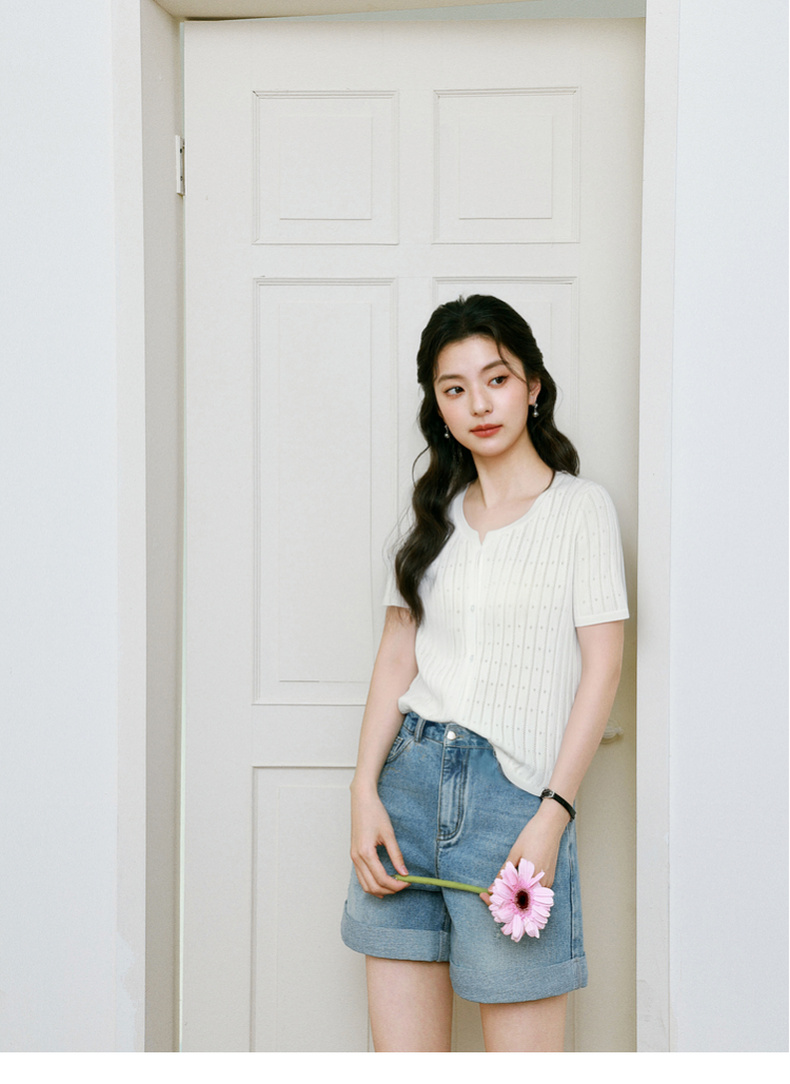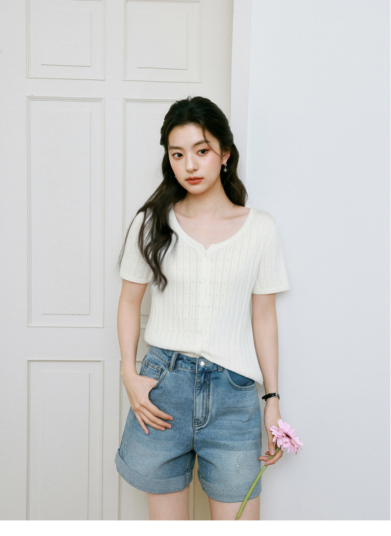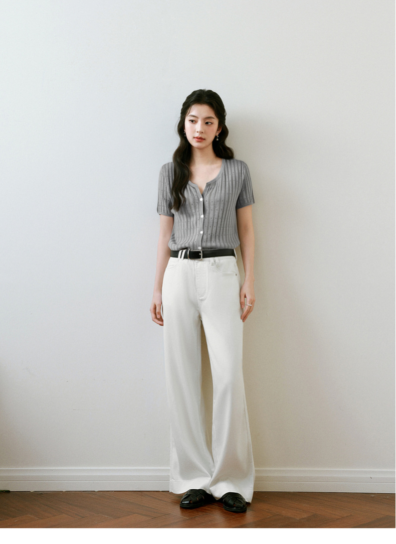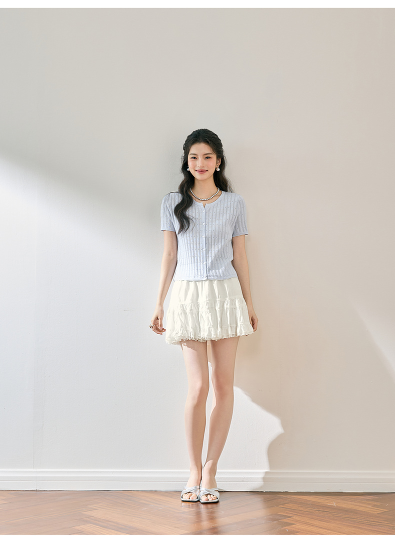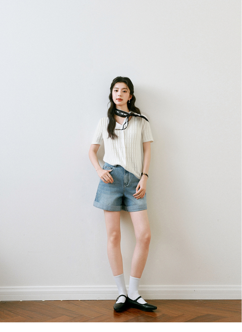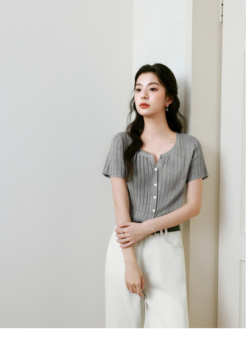 【严选】诗凡黎醋酸天丝镂空针织开衫2025夏新款温柔慵懒风半开领上衣7G4130651