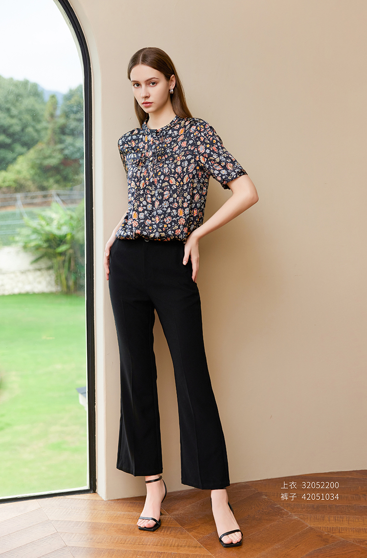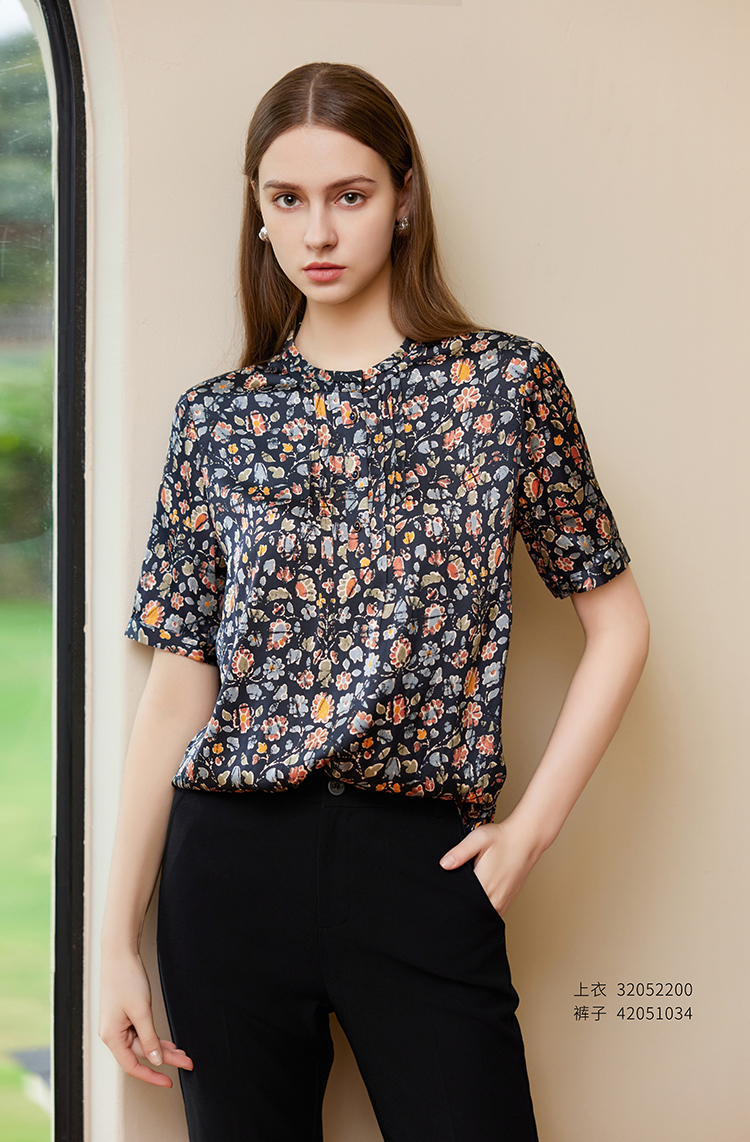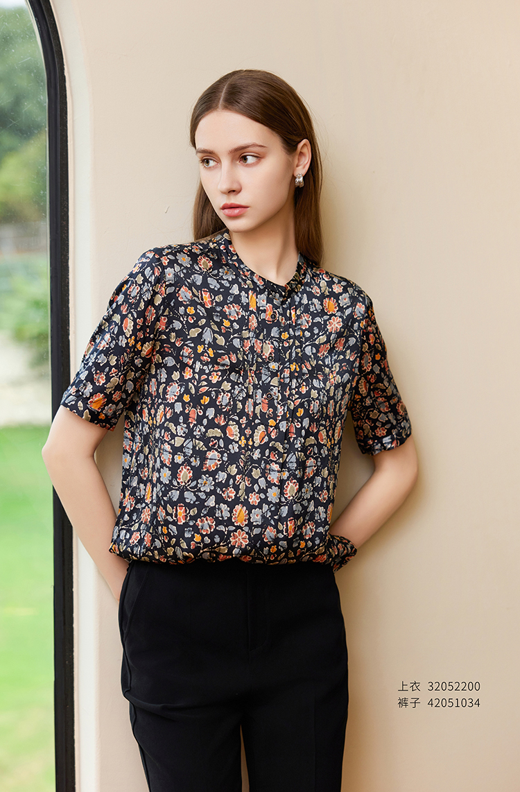 【桑蚕丝印花上衣】25年夏季新品女士真丝碎花薄款短袖衬衫