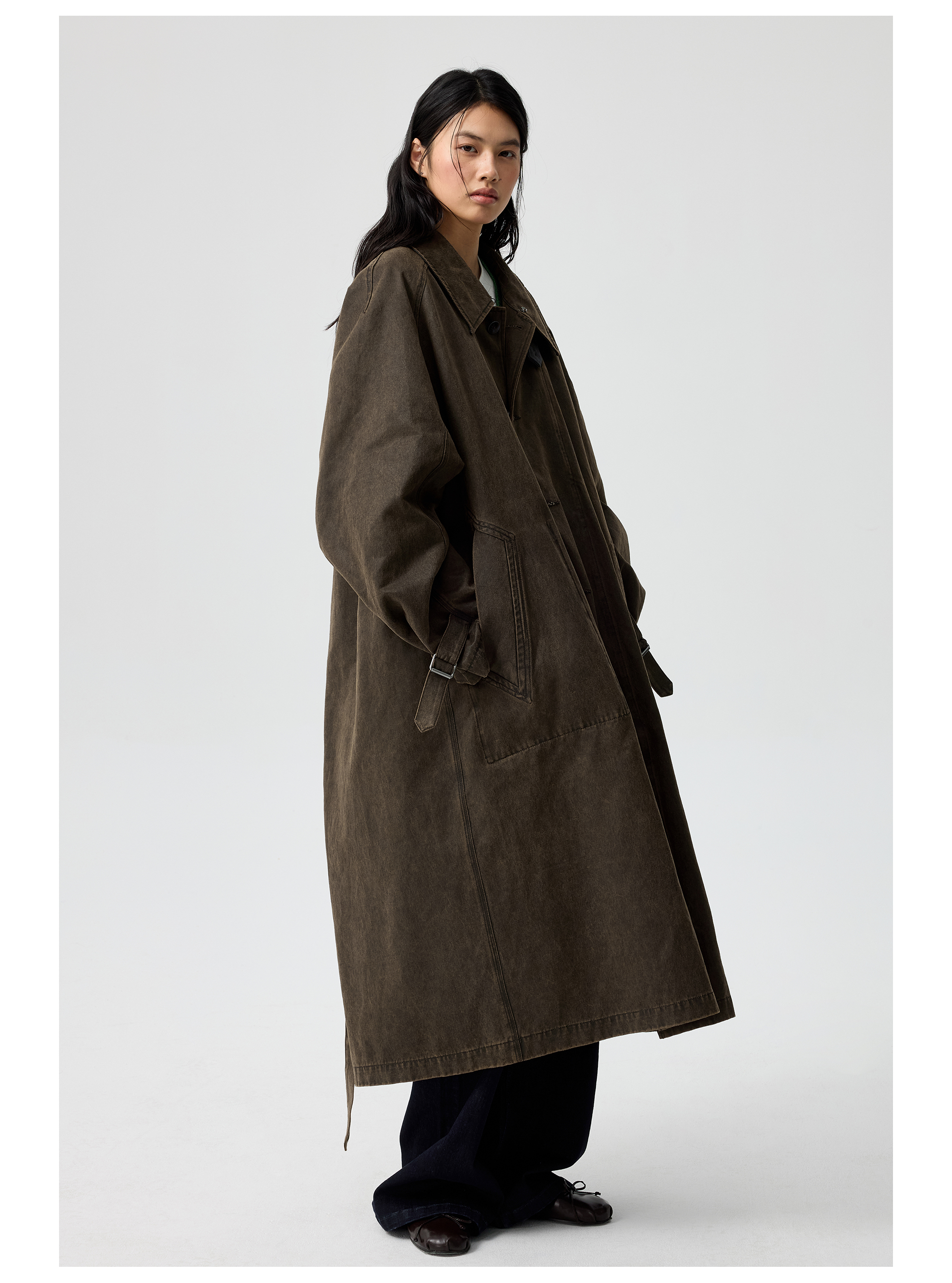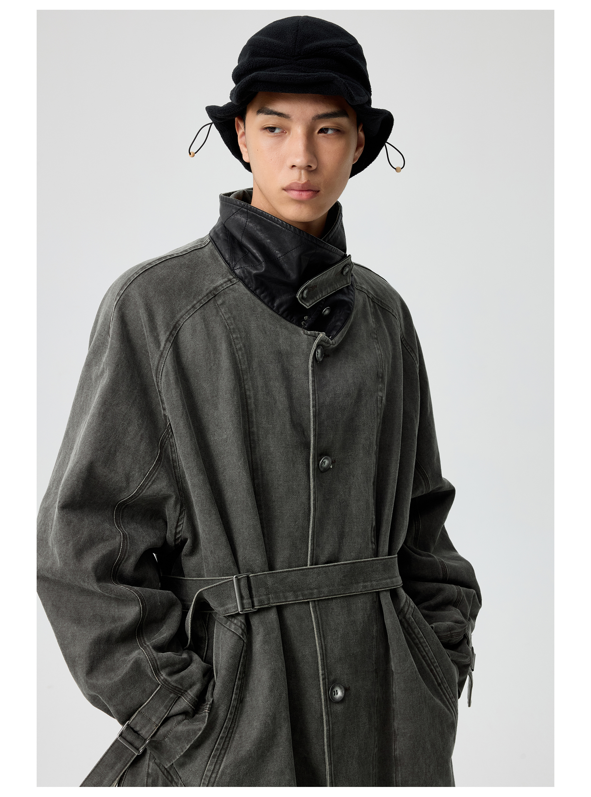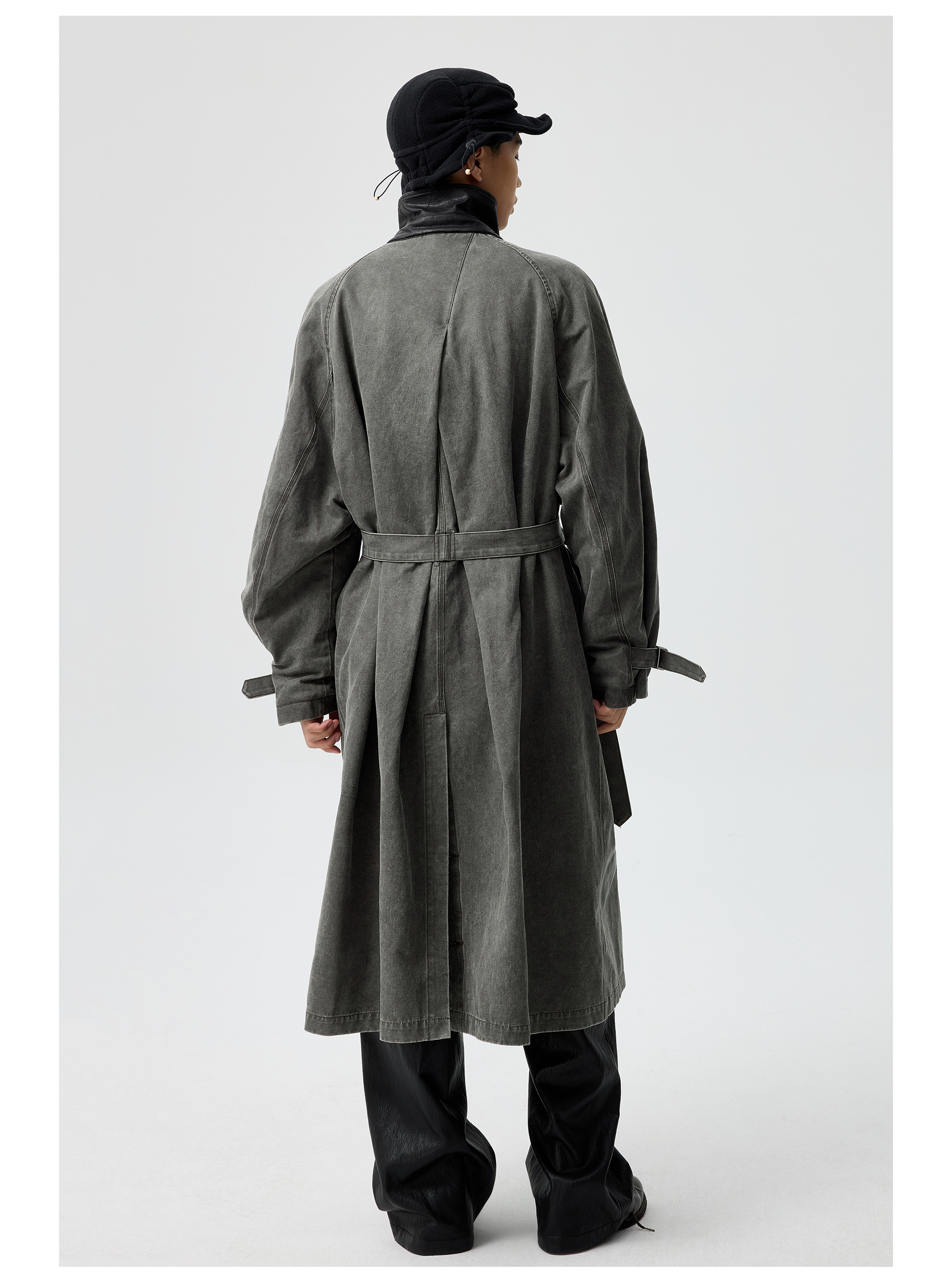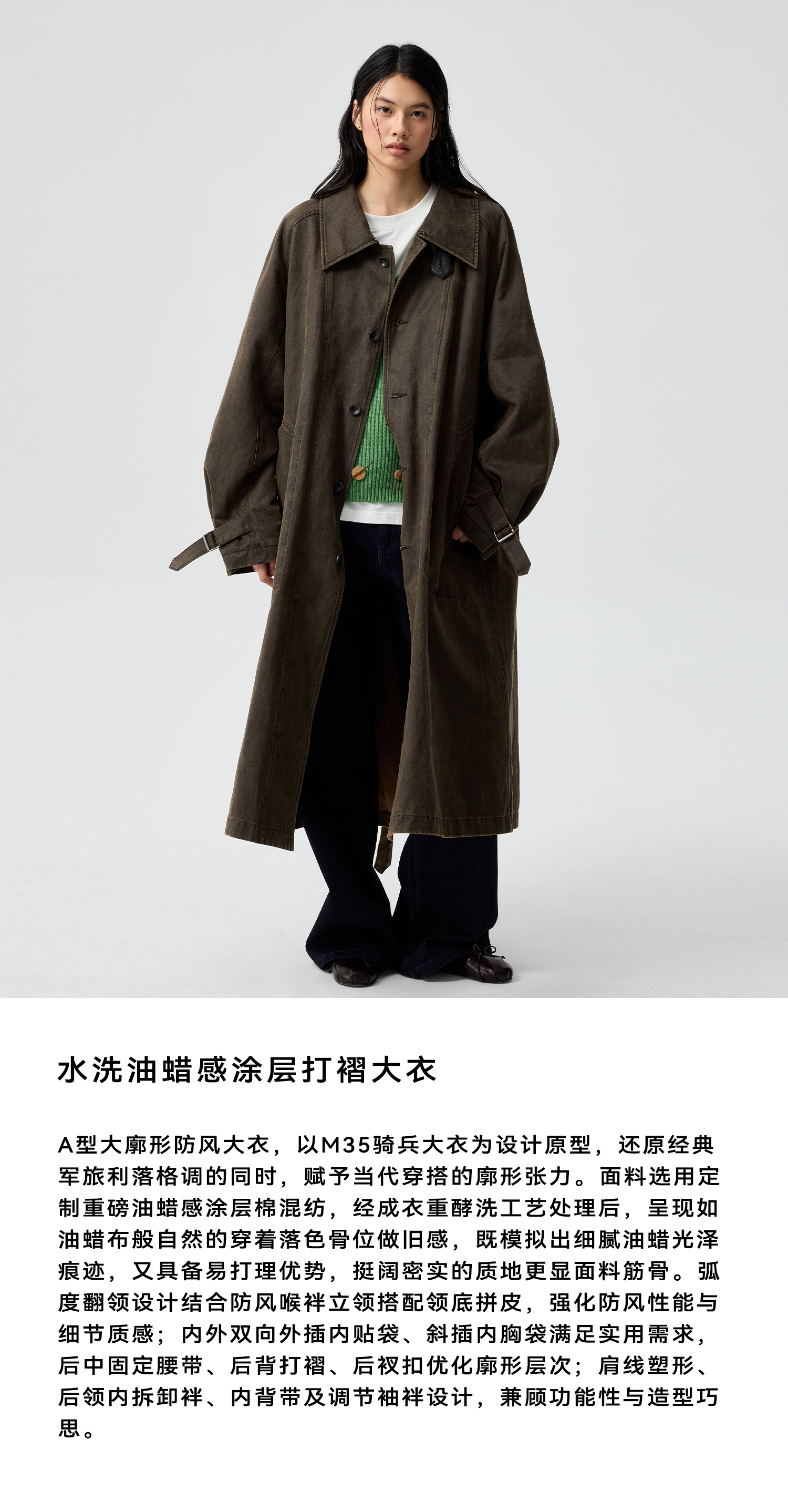 Simple Project/Y25217/水洗油蜡感涂层打褶大衣