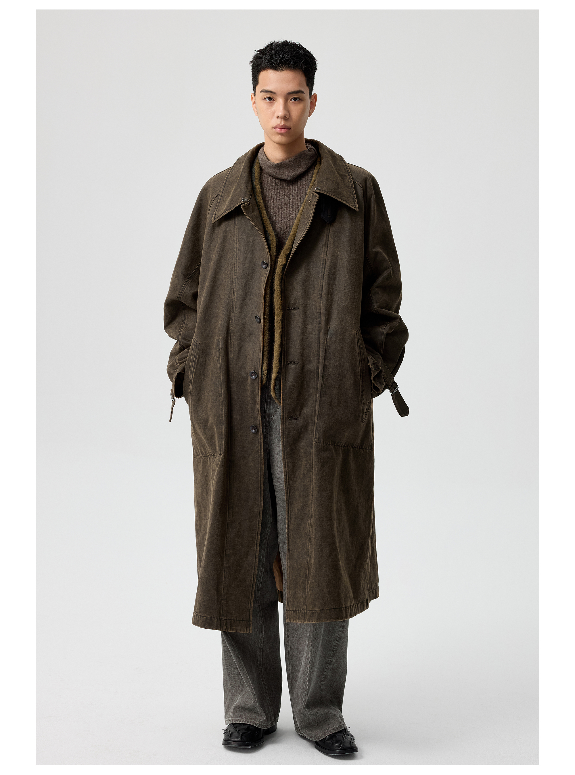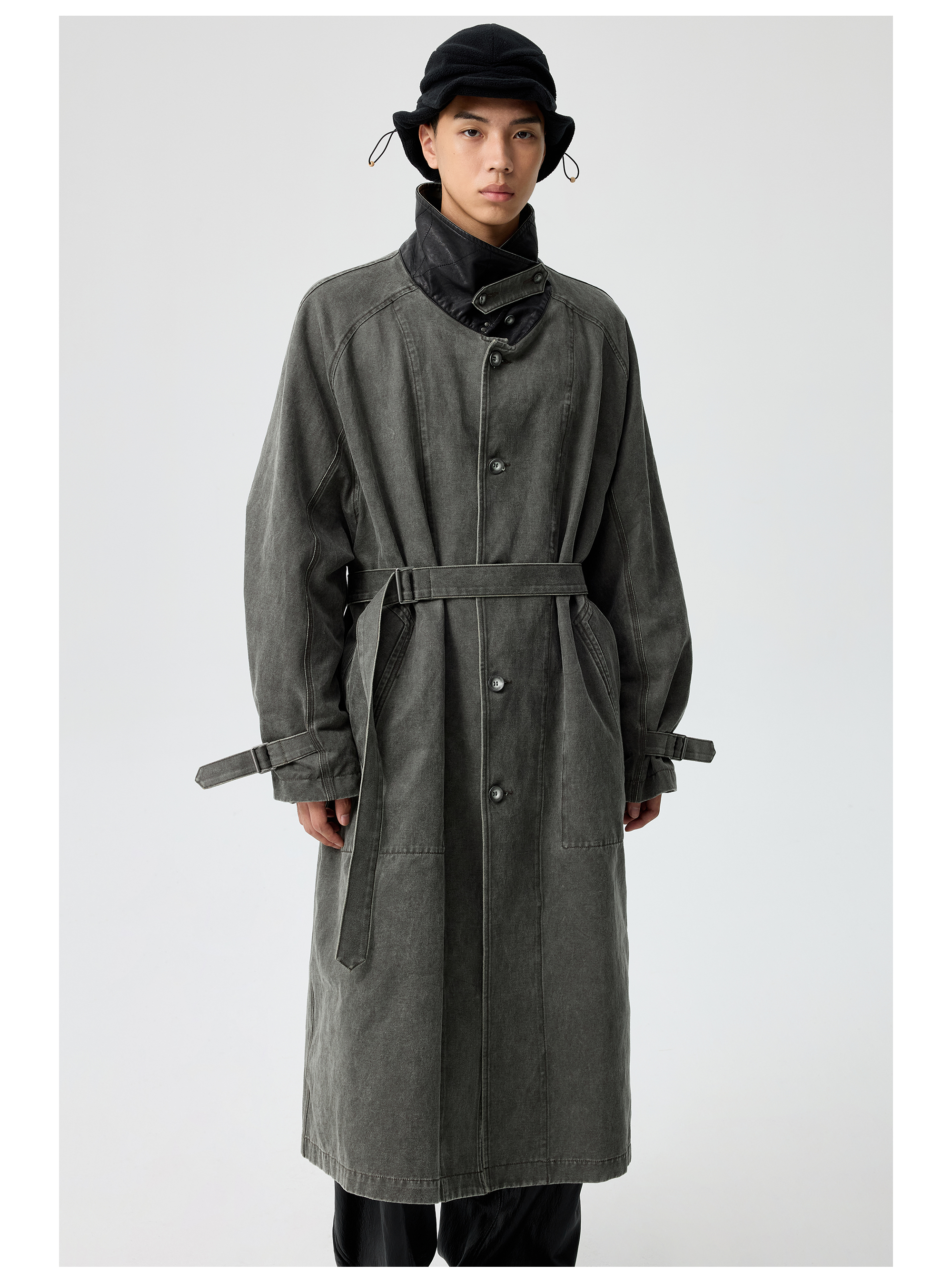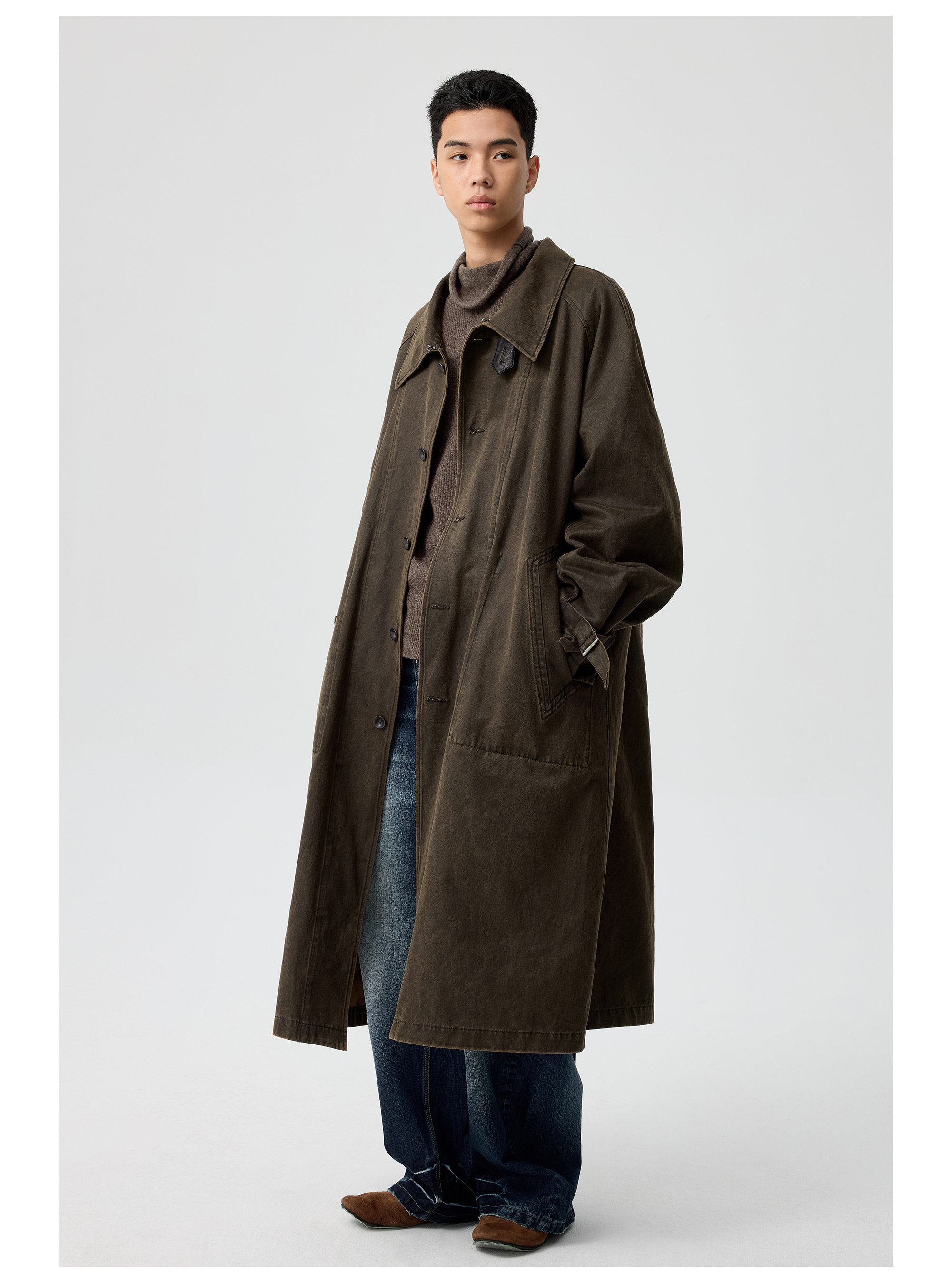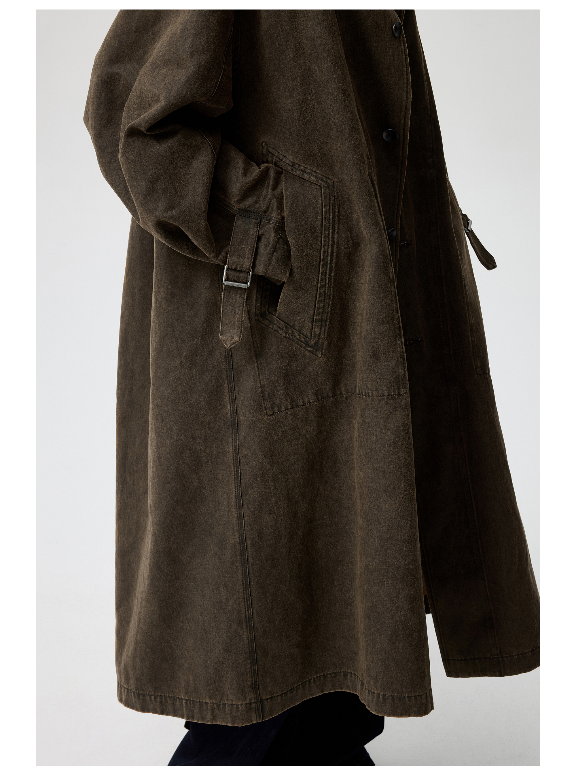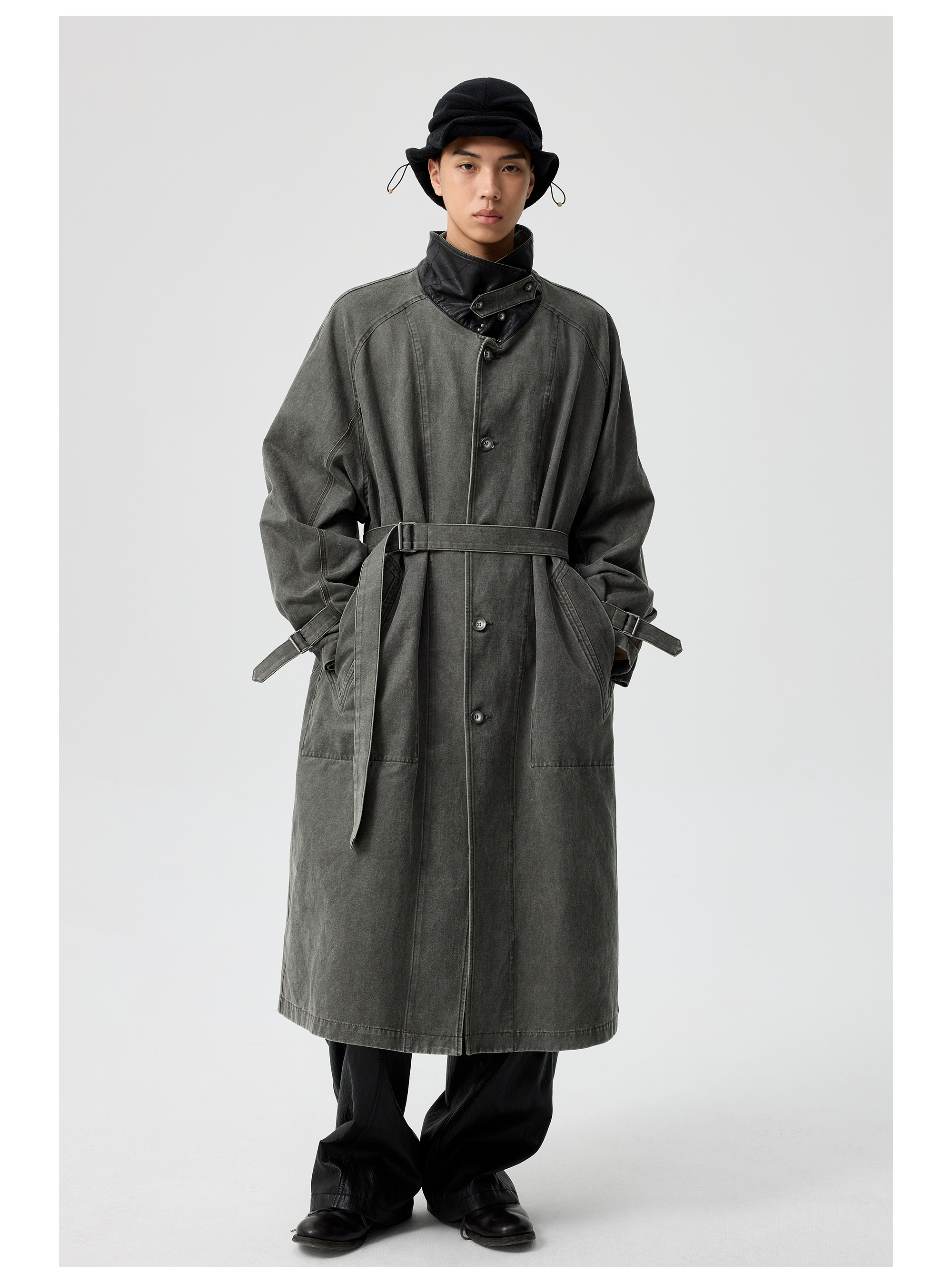 Simple Project/Y25217/水洗油蜡感涂层打褶大衣