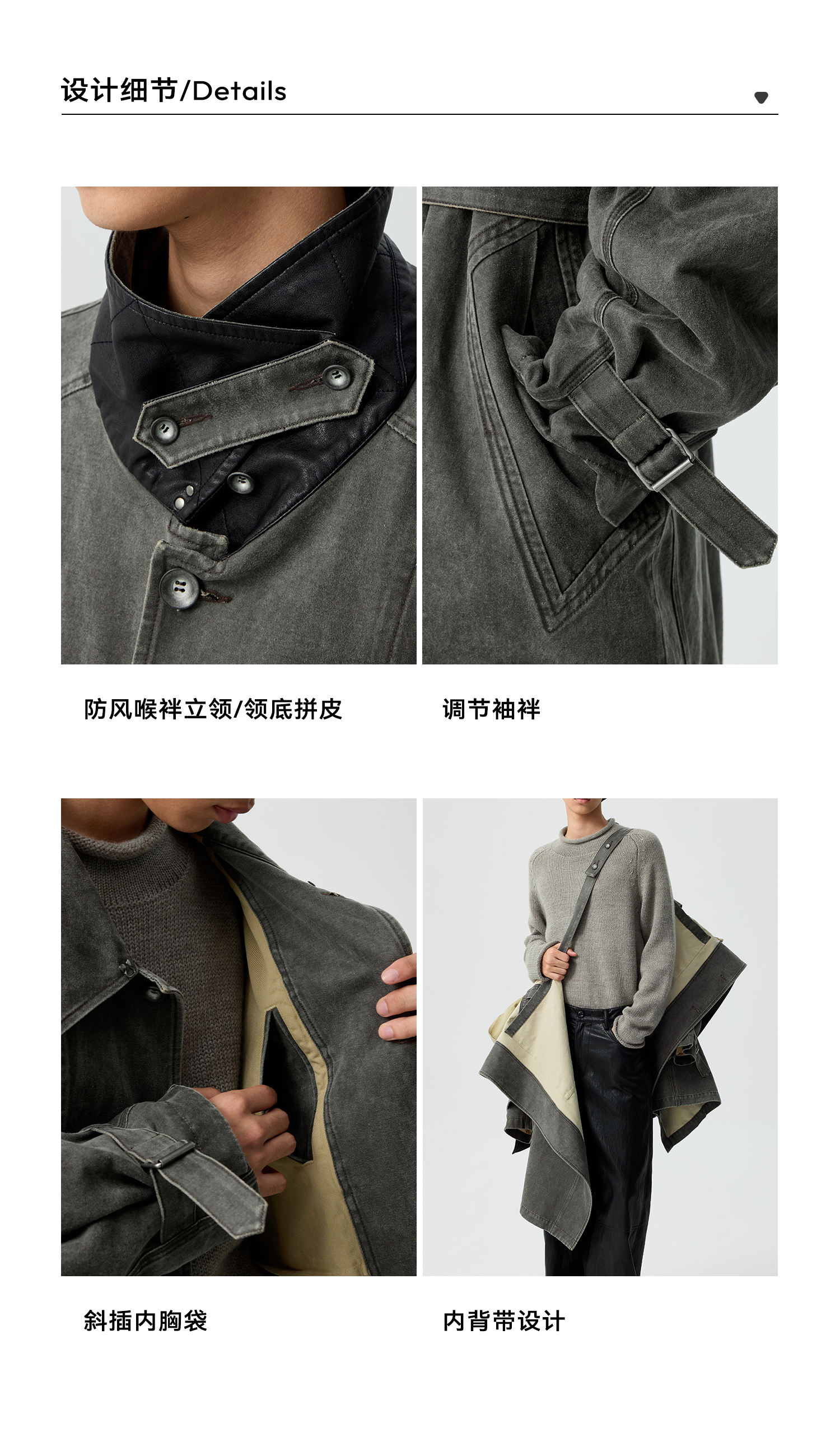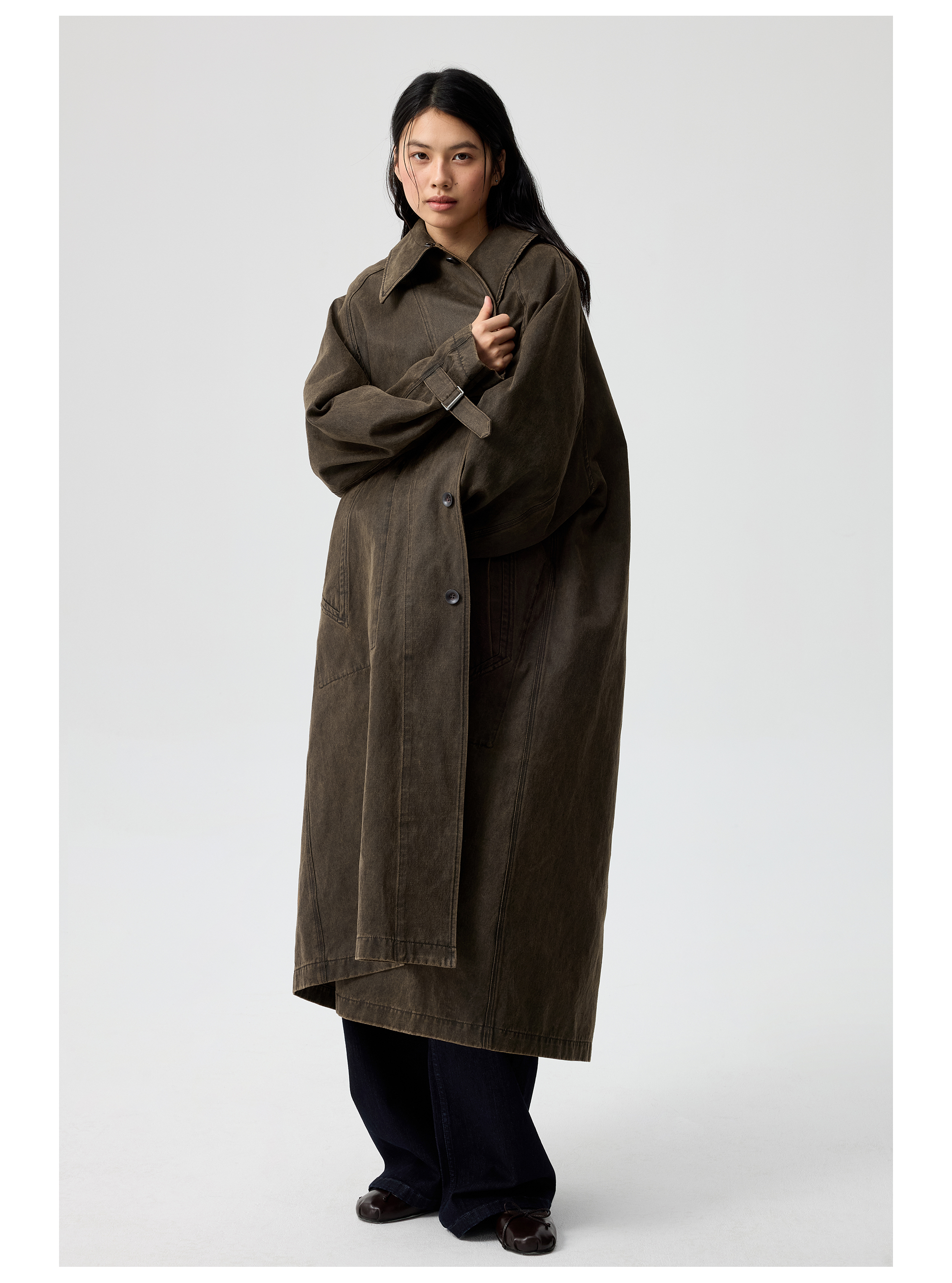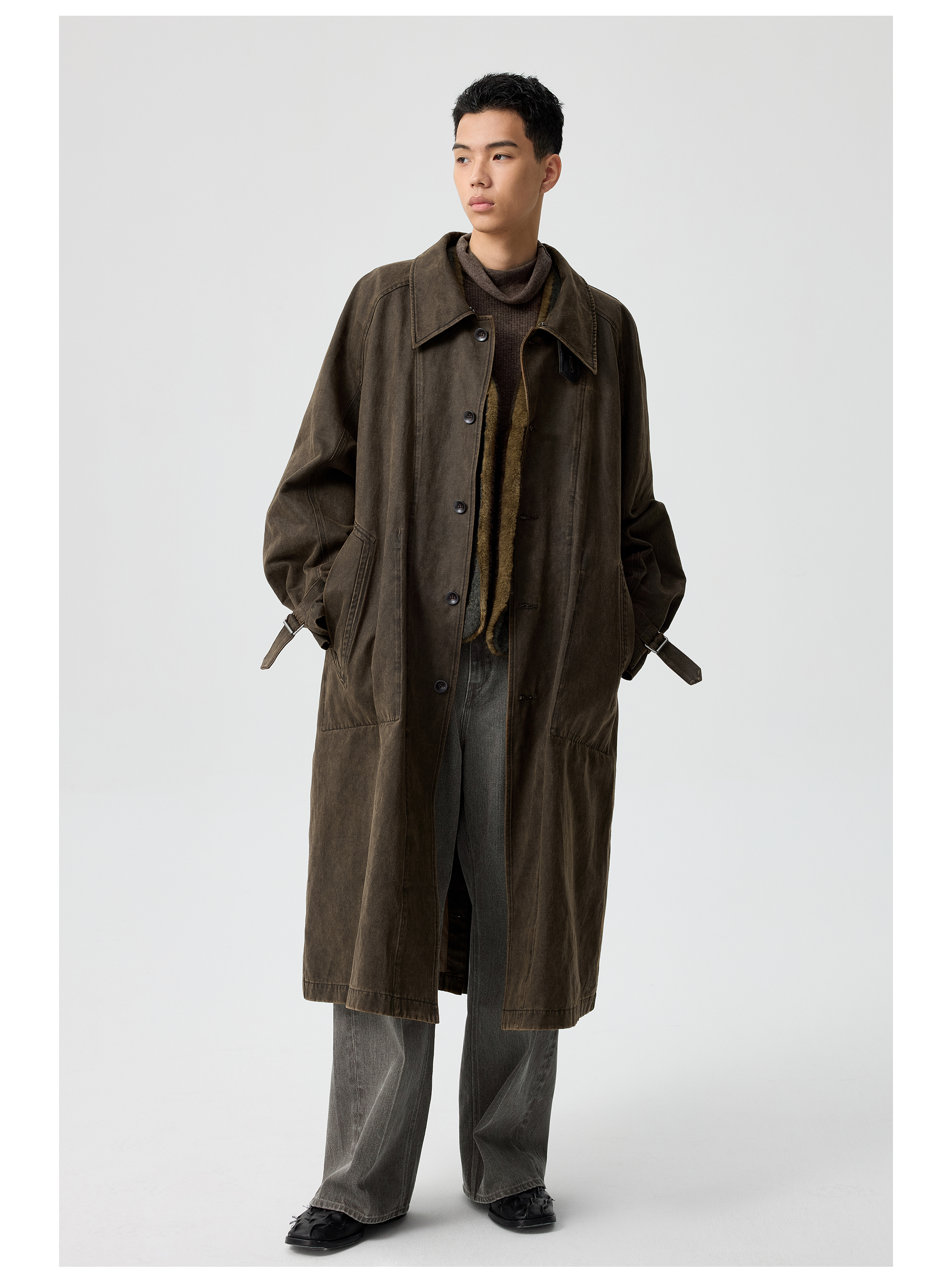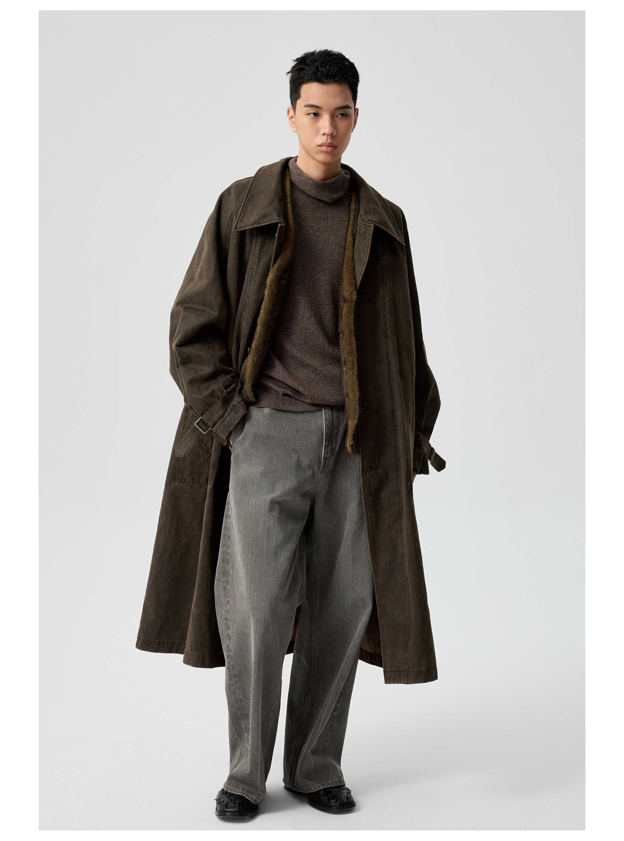 Simple Project/Y25217/水洗油蜡感涂层打褶大衣