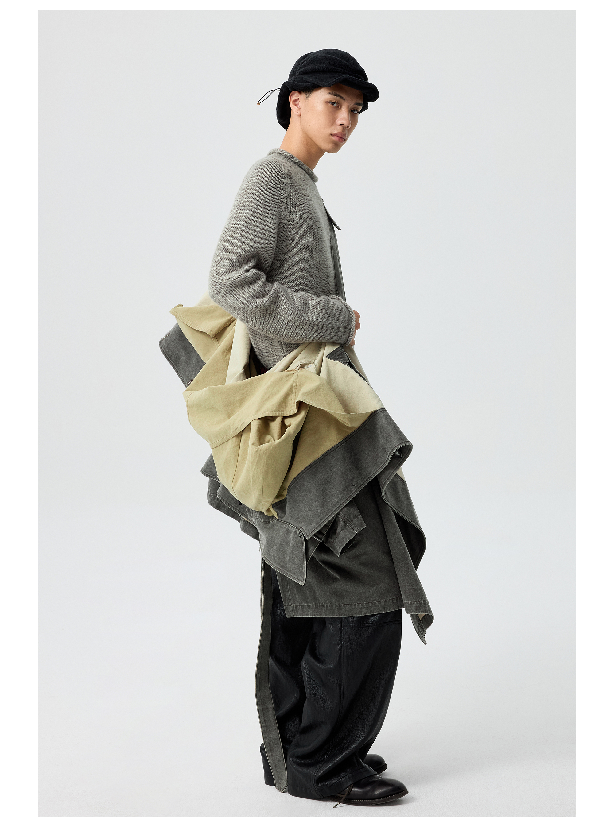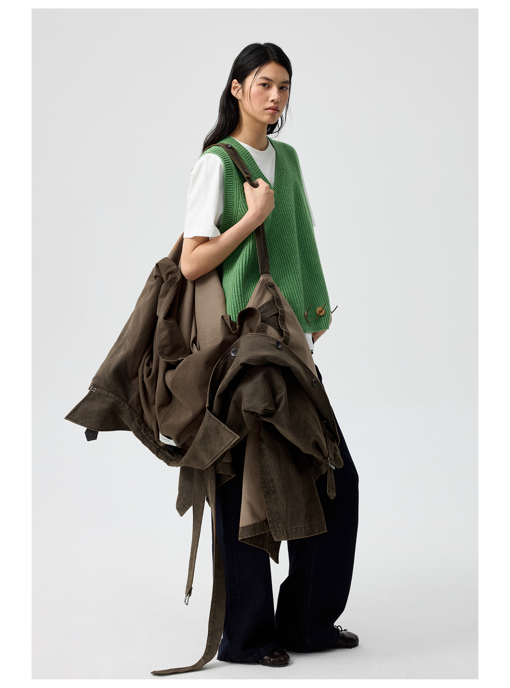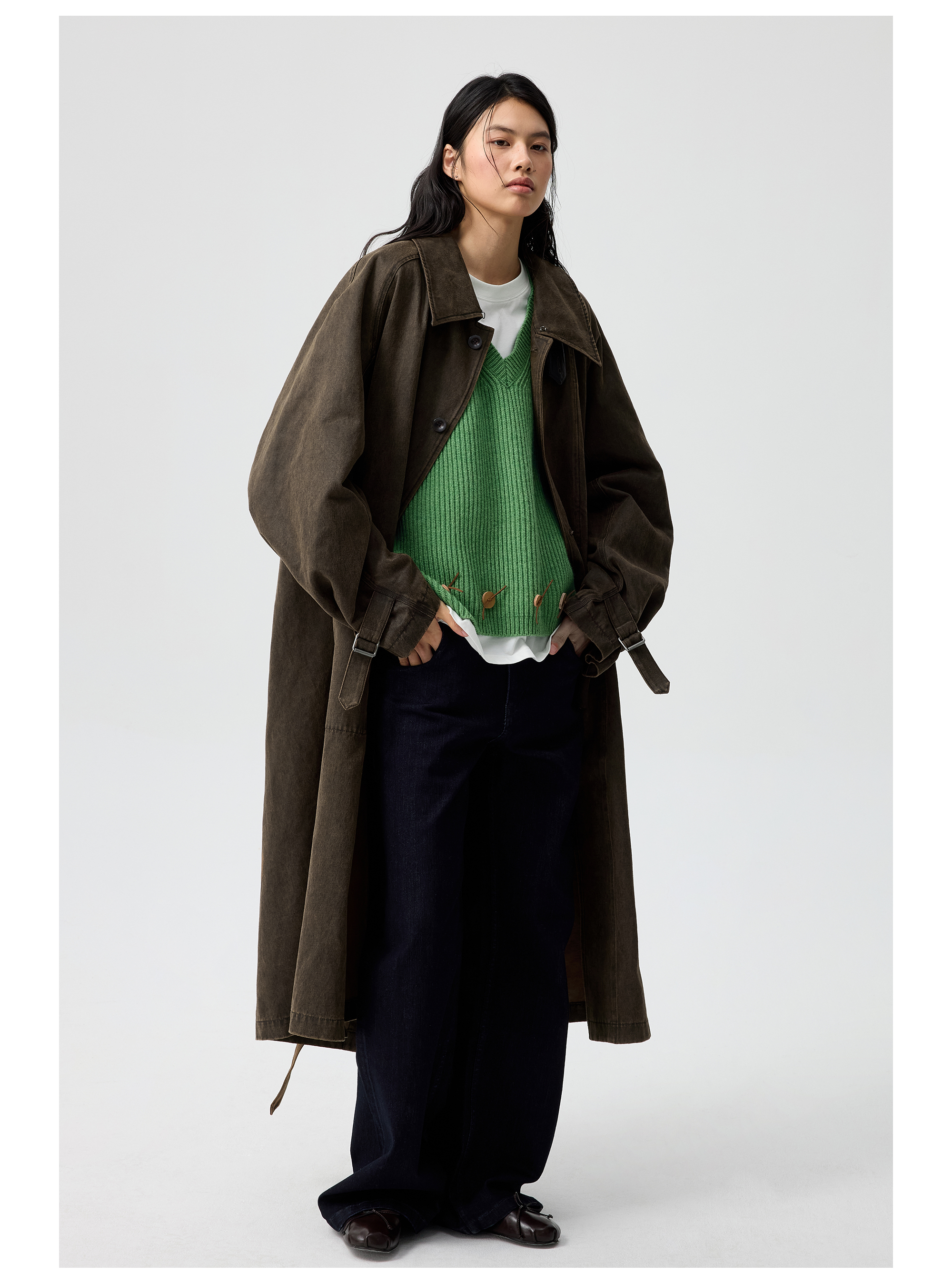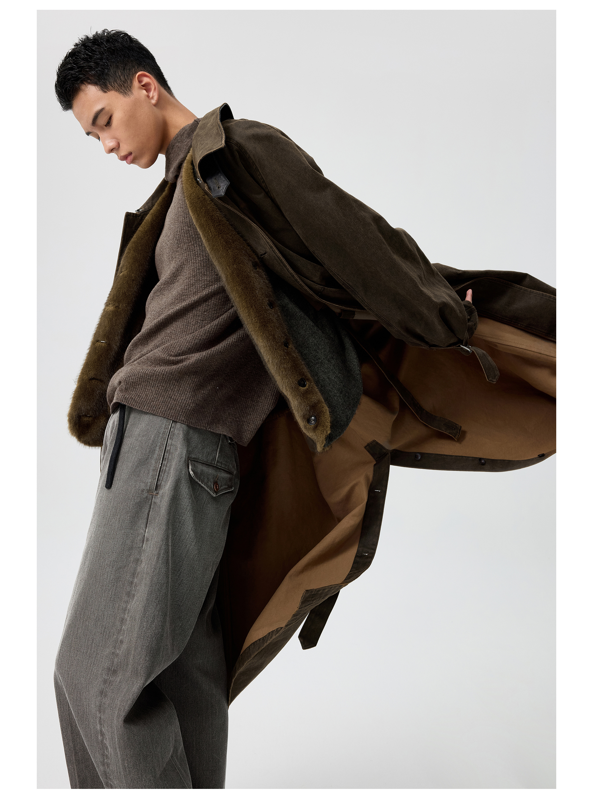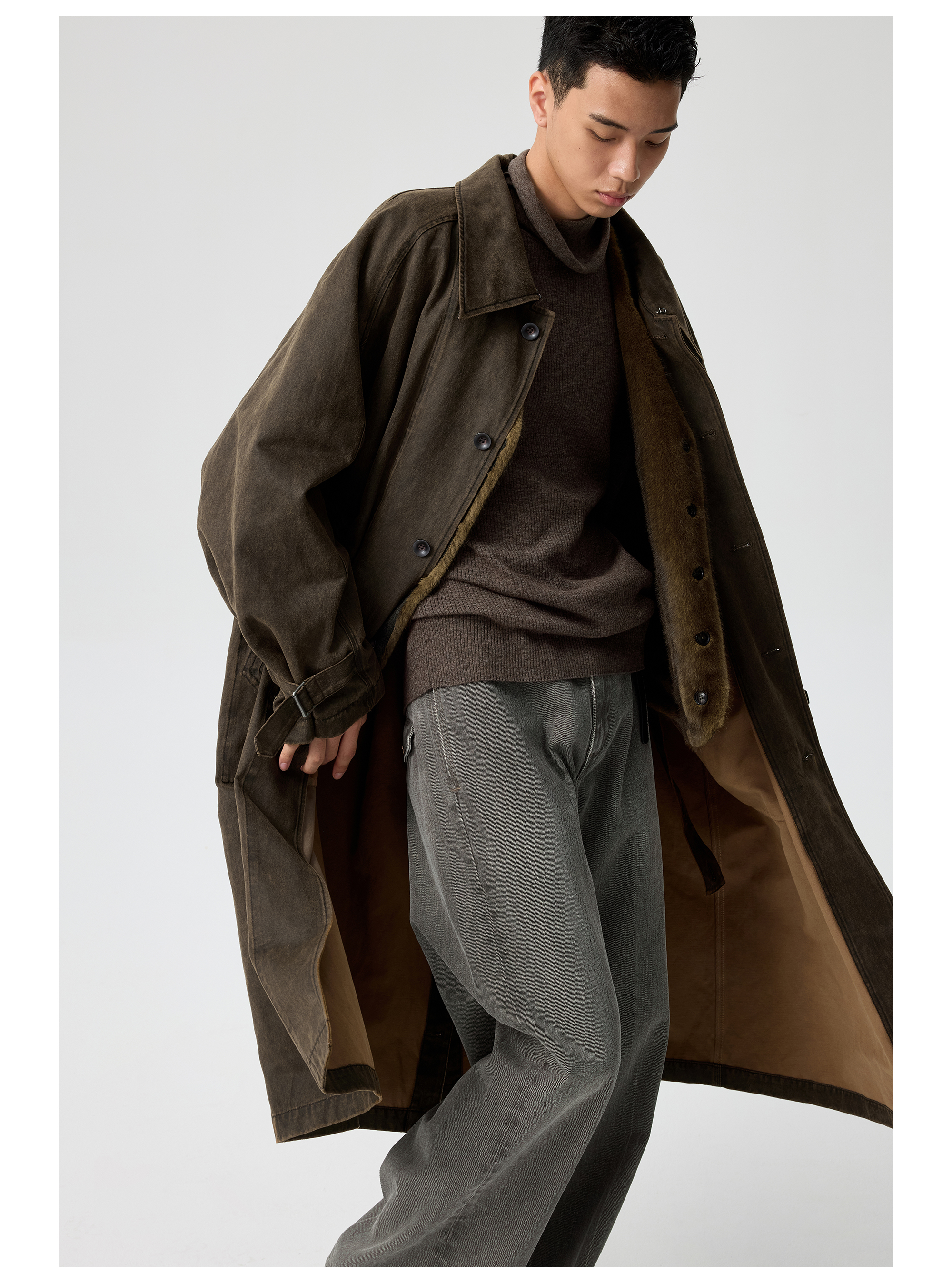 Simple Project/Y25217/水洗油蜡感涂层打褶大衣