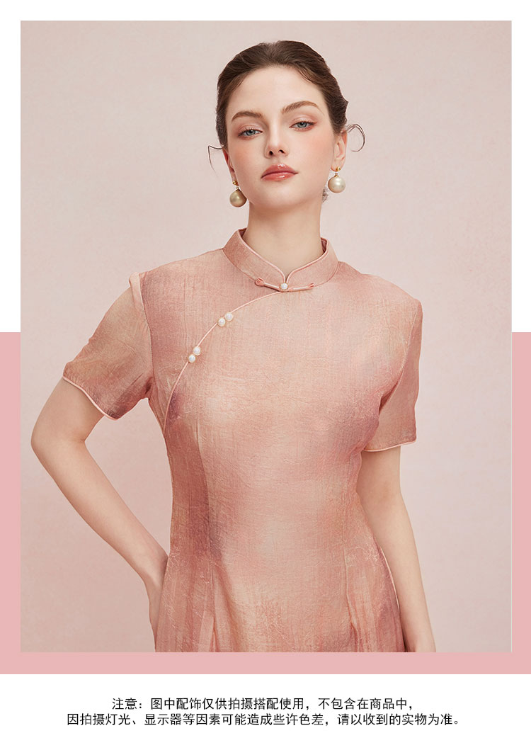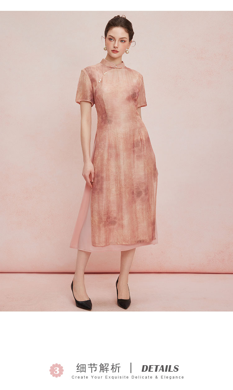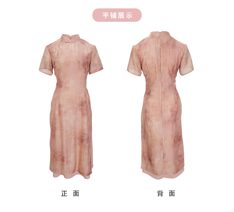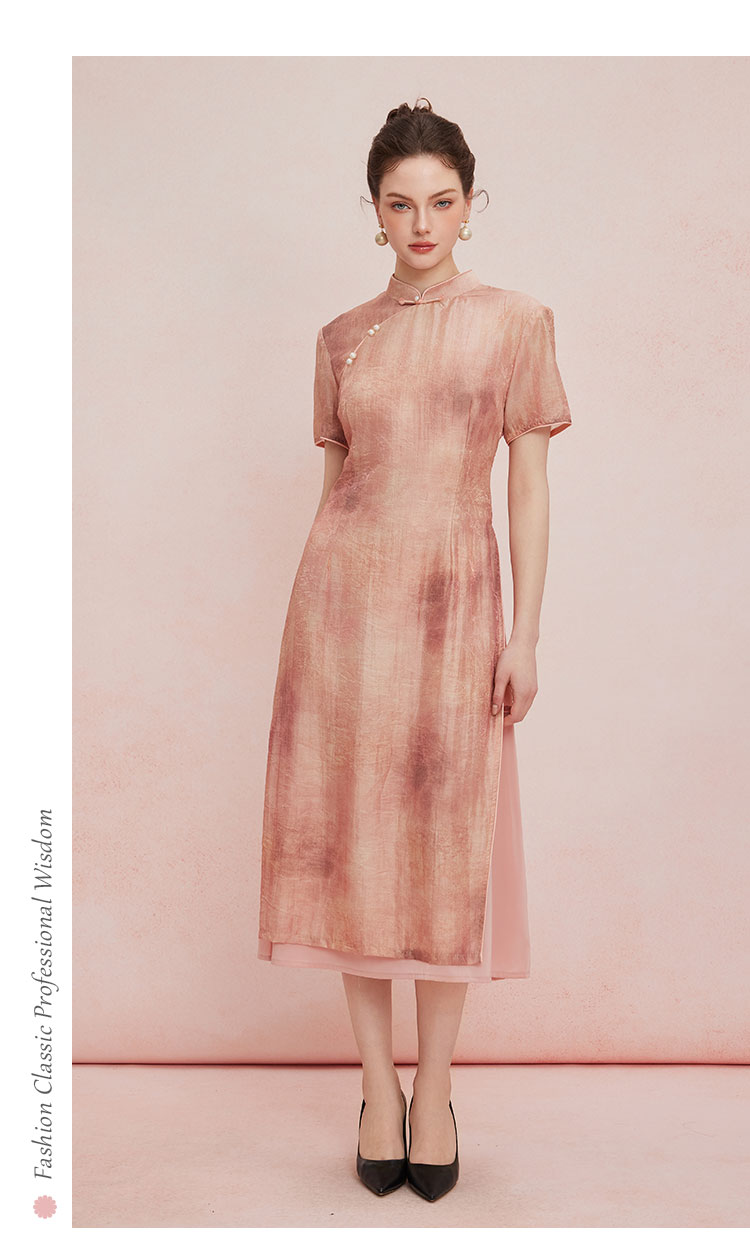QF821斯尔丽25夏季新款旗袍奥黛A摆晕染效果手工盘扣旗开得胜连衣裙