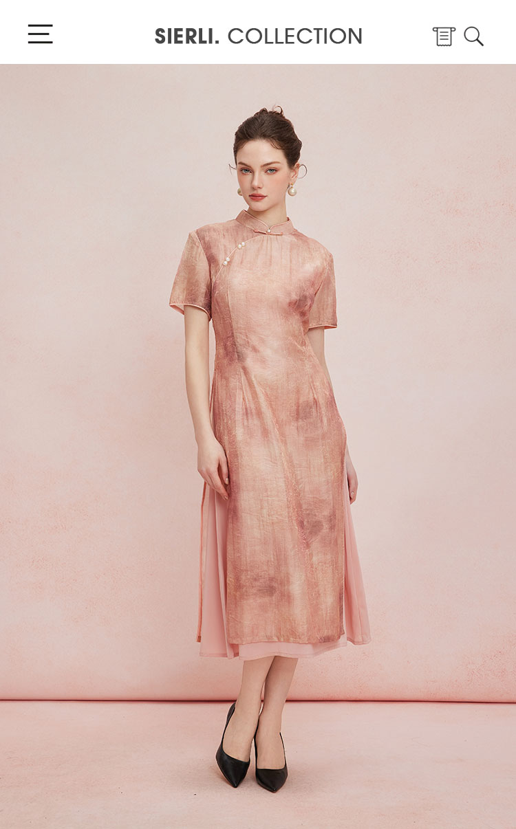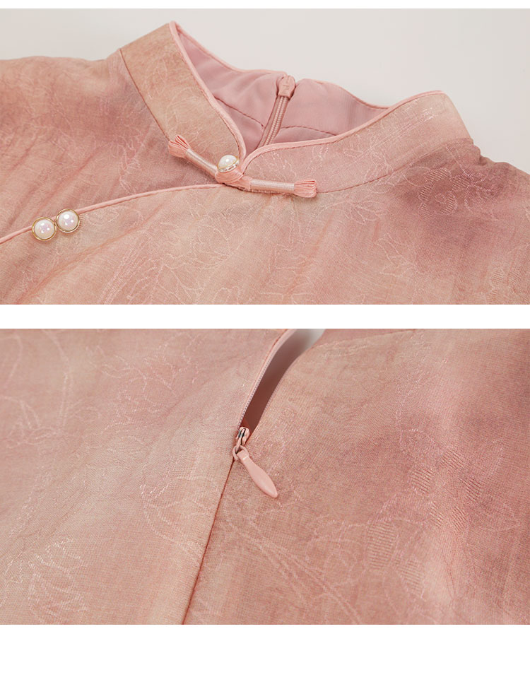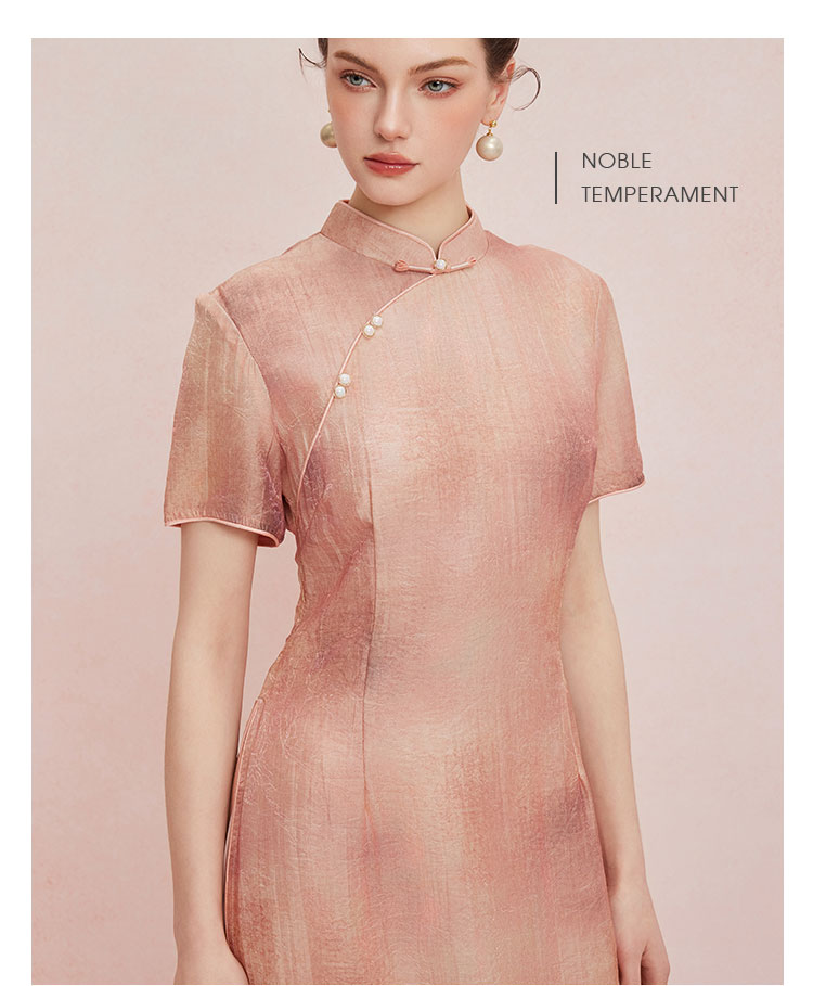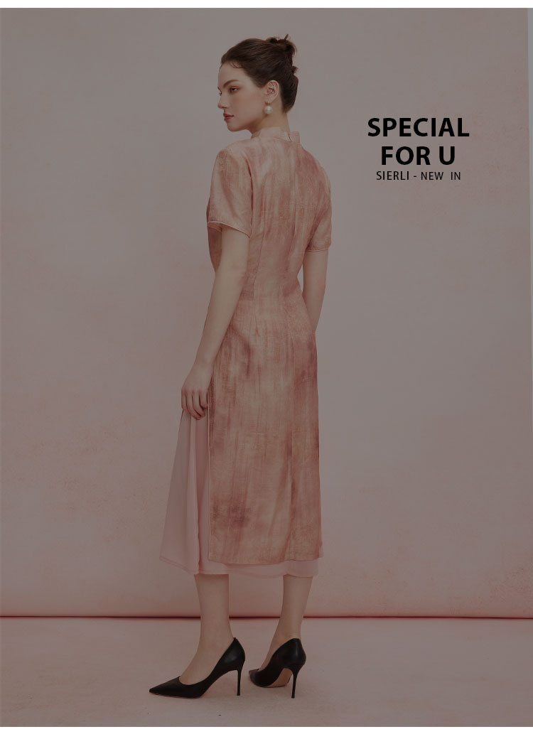 QF821斯尔丽25夏季新款旗袍奥黛A摆晕染效果手工盘扣旗开得胜连衣裙