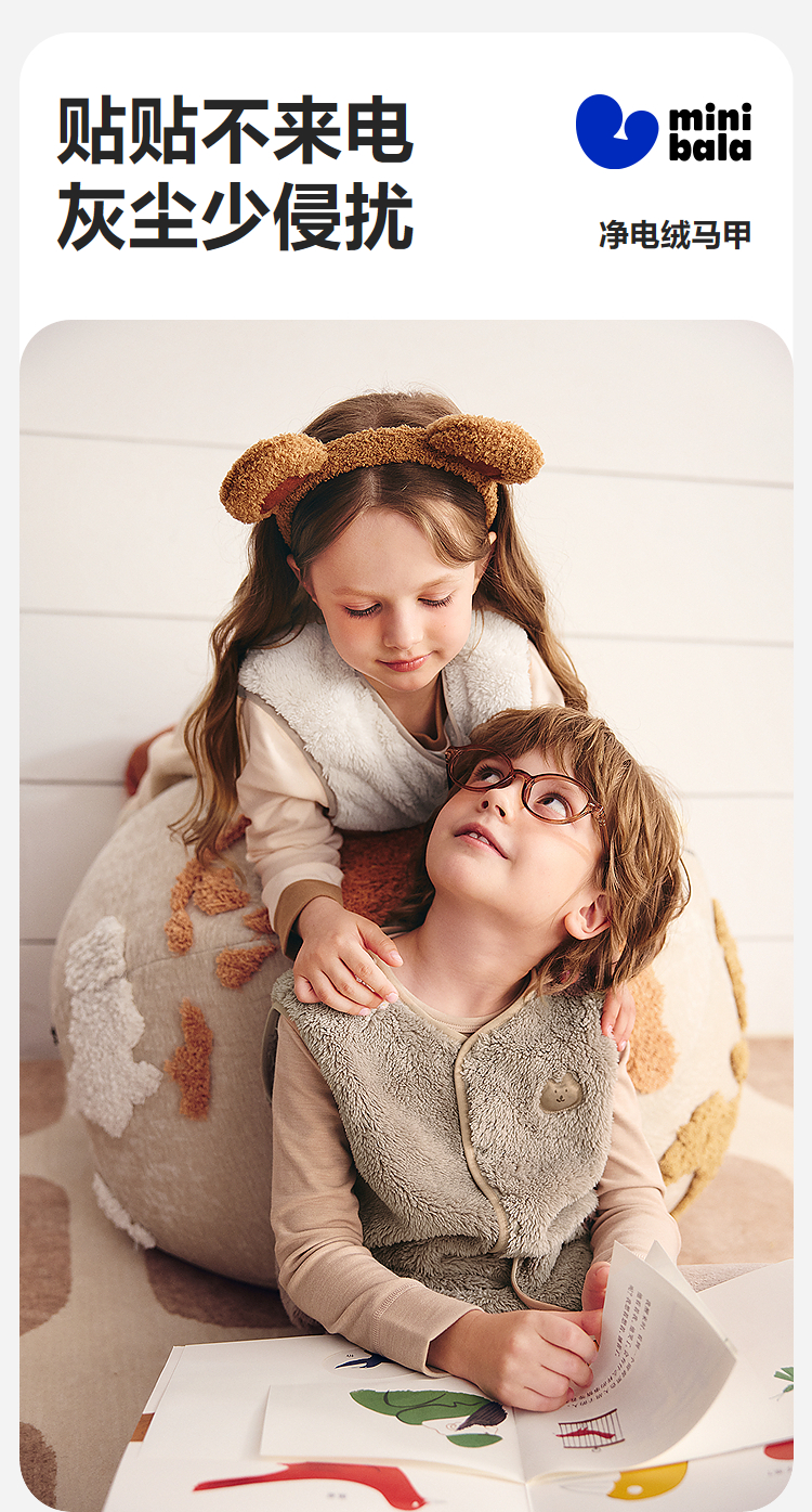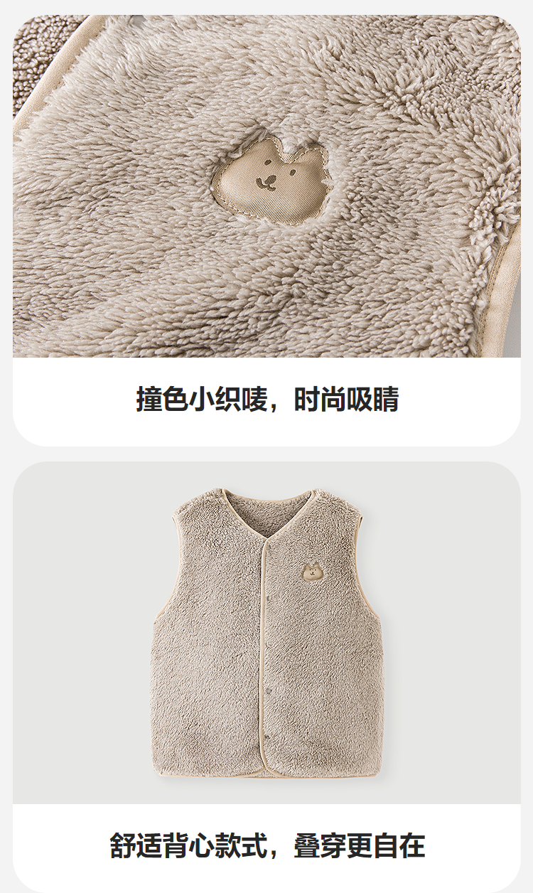 【抗静电】迷你巴拉儿童保暖马甲男女童宝宝秋冬双面珊瑚绒背心★