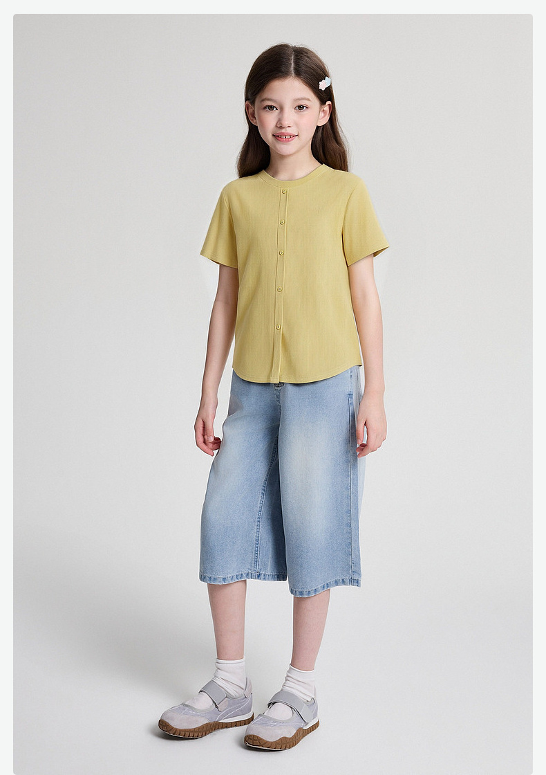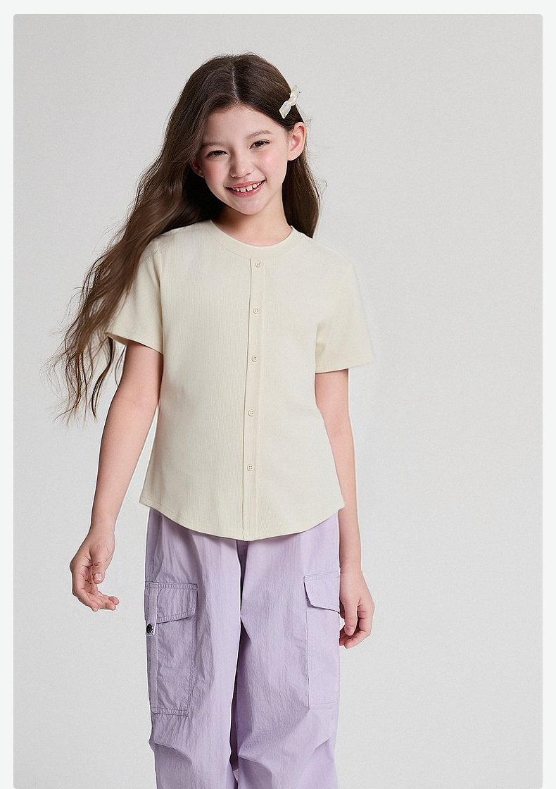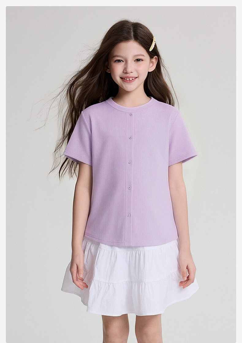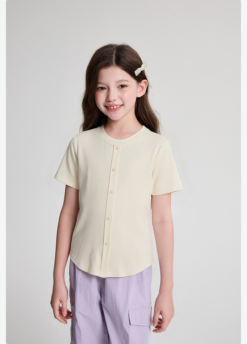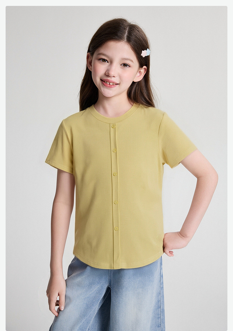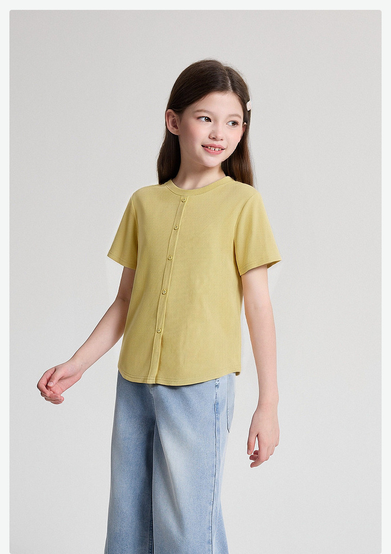 笛莎/Deesha 2026年夏季新款女童中大童纯色圆领T恤