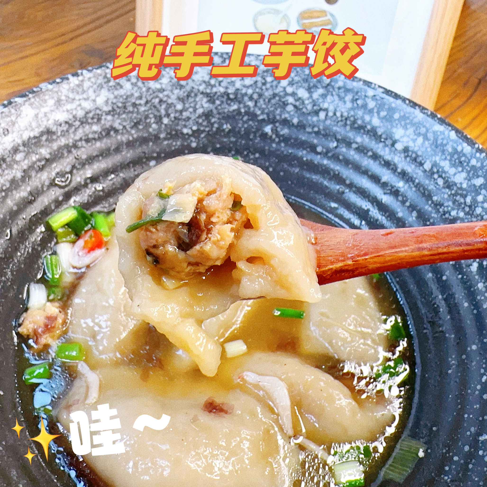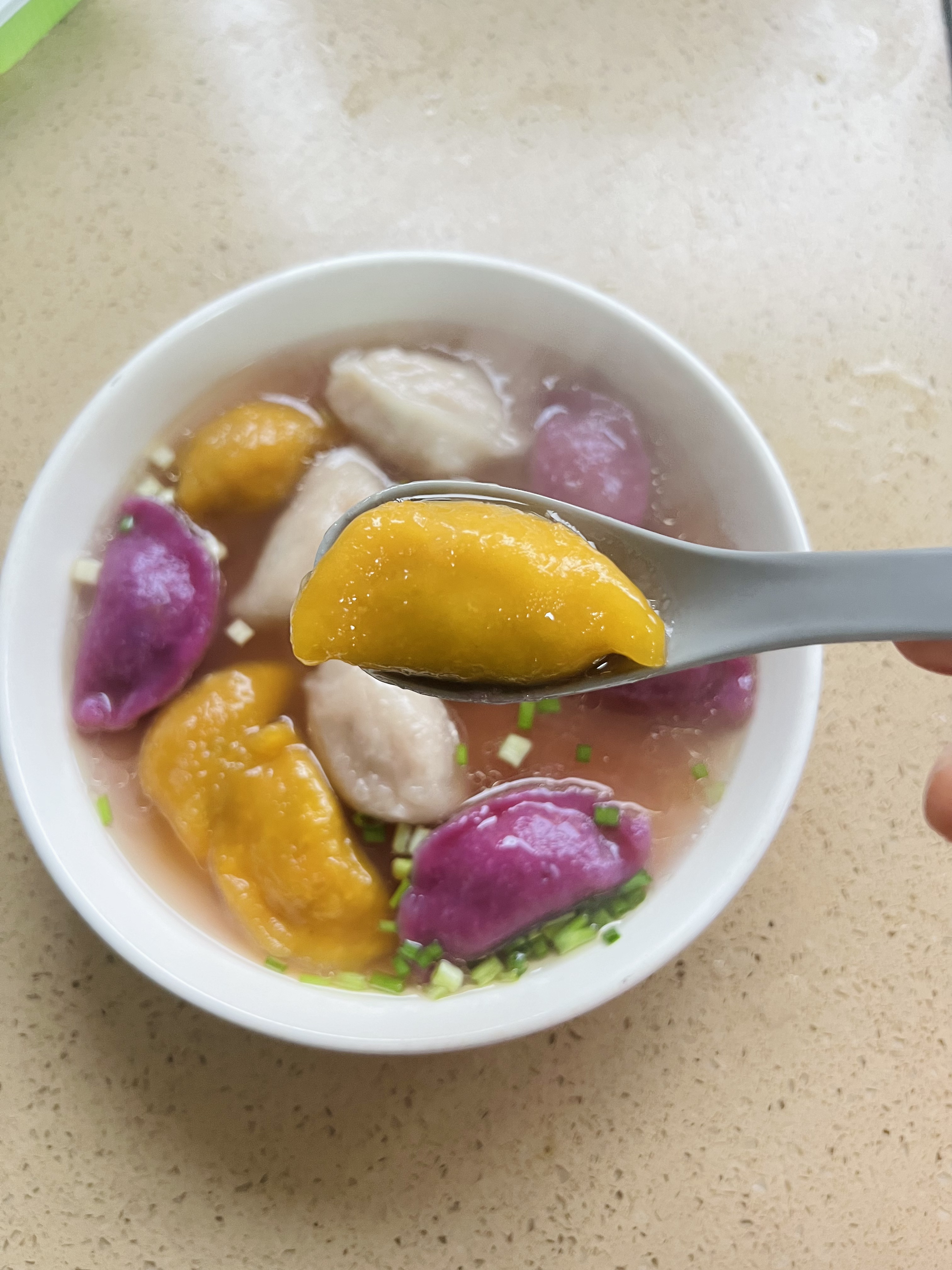 特好吃多色芋饺 江山小巷美食~食材新鲜采购制作,纯手工制作,每天现包!面皮滴水不沾,爽滑又Q弹,入口滑韧鲜香,美味!