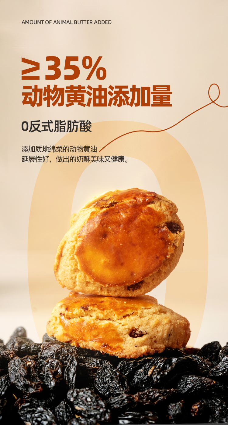 直到叮一声,出烤箱了,顾不上烫,我俩先就“偷”吃了,酥脆中稍显柔韧,奶香中又绵密细腻,有淡淡的奶味和提子味牵引着味蕾,难怪老客这么喜欢。