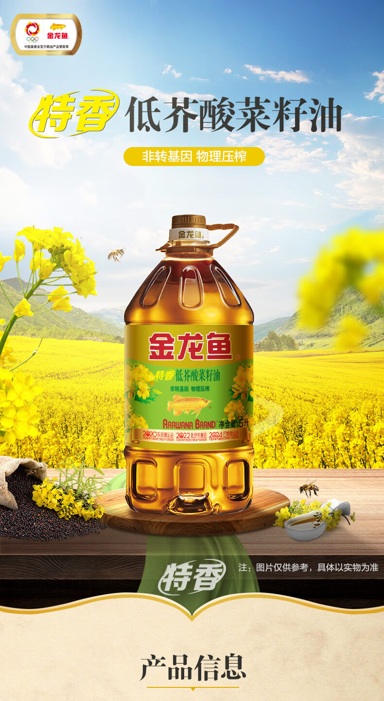 金龙鱼ARAWANA BRAND 四级非转基因物理压榨特香低芥酸菜籽油 5000ml/桶