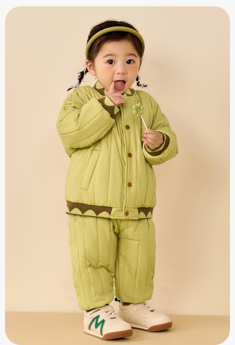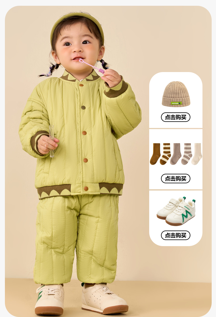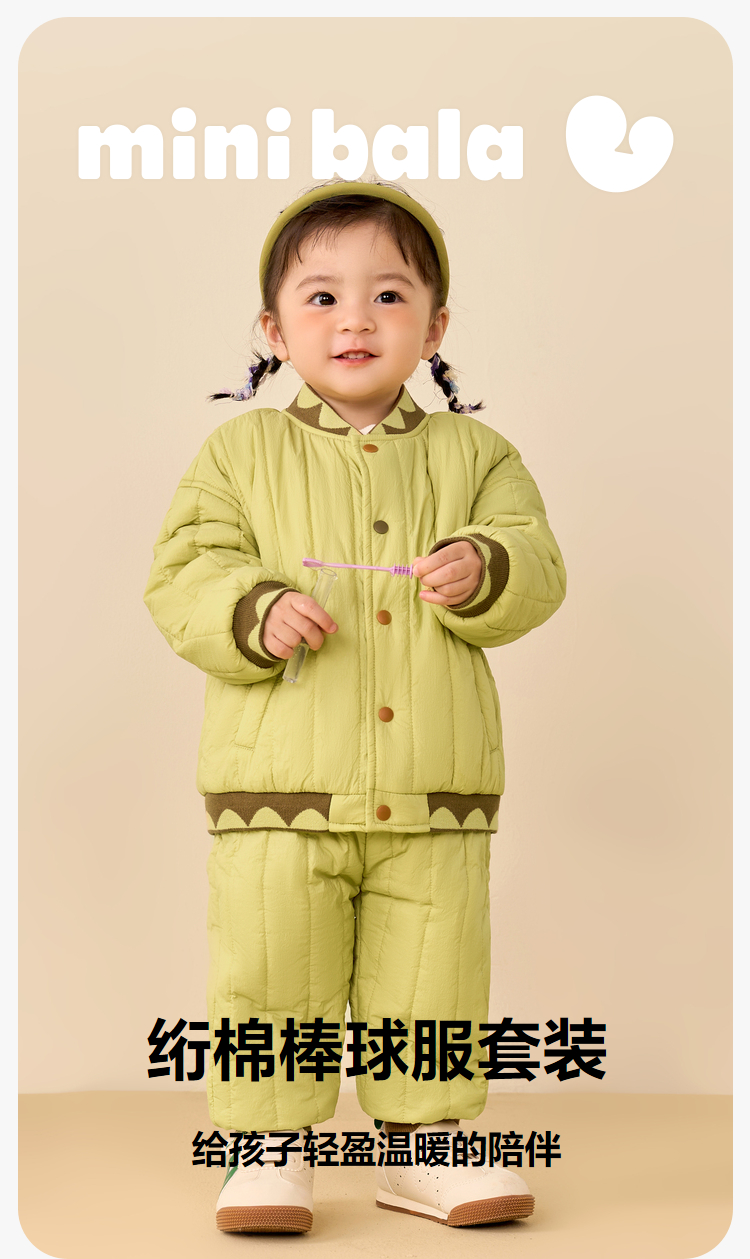 迷你巴拉男童女童长袖套装秋冬宝宝儿童套装棒球服外套长裤
