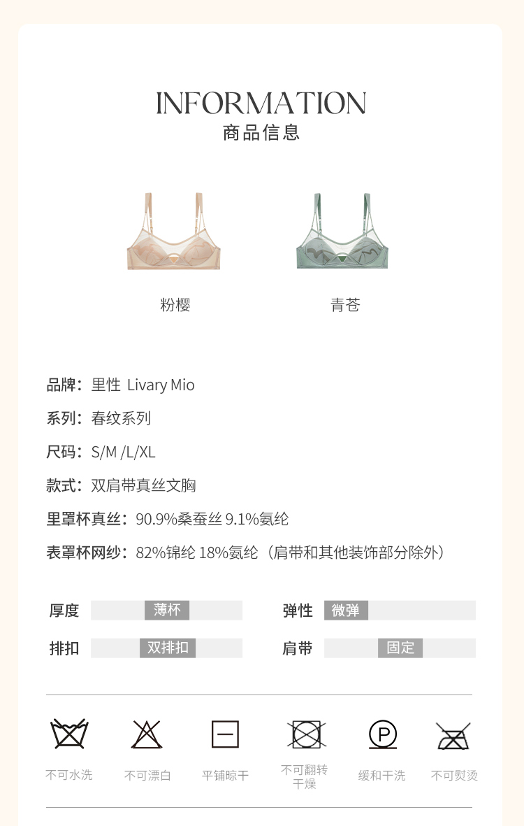里性 LIVARY MIO 春纹-Spring Vein 双罩杯真丝内衣网纱印花无钢圈文胸