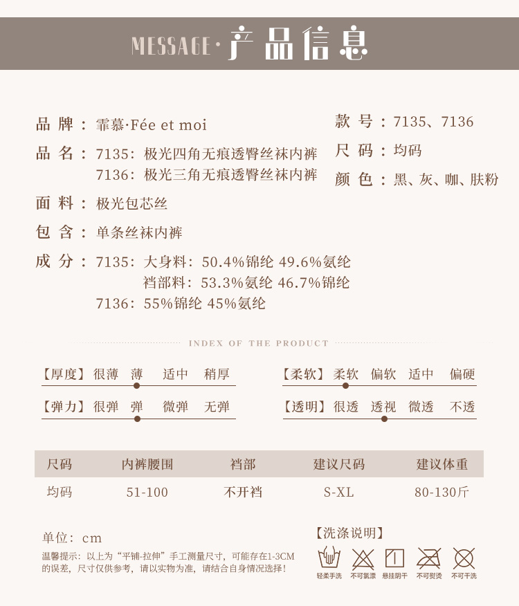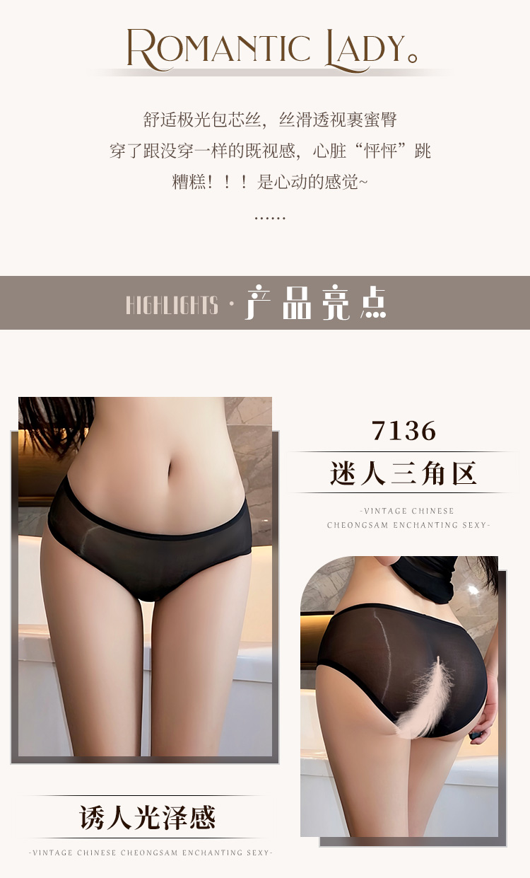 霏慕 极光四角/三角无痕透臀丝袜内裤7135、7136 情趣内衣黑丝肉色情趣内裤诱惑