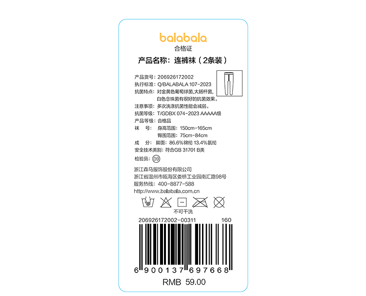 【商场同款】巴拉巴拉女童连裤袜夏季新款薄儿童舞蹈袜学生两条装