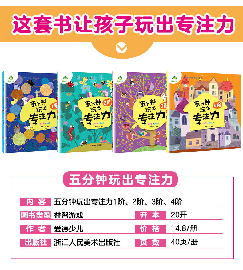 五分钟玩出专注力训练注意力专注力找不同迷宫婴儿童0-3到6岁幼儿园培养孩子记忆力专注力思维训练书开发宝宝启蒙早教书籍爱德少儿