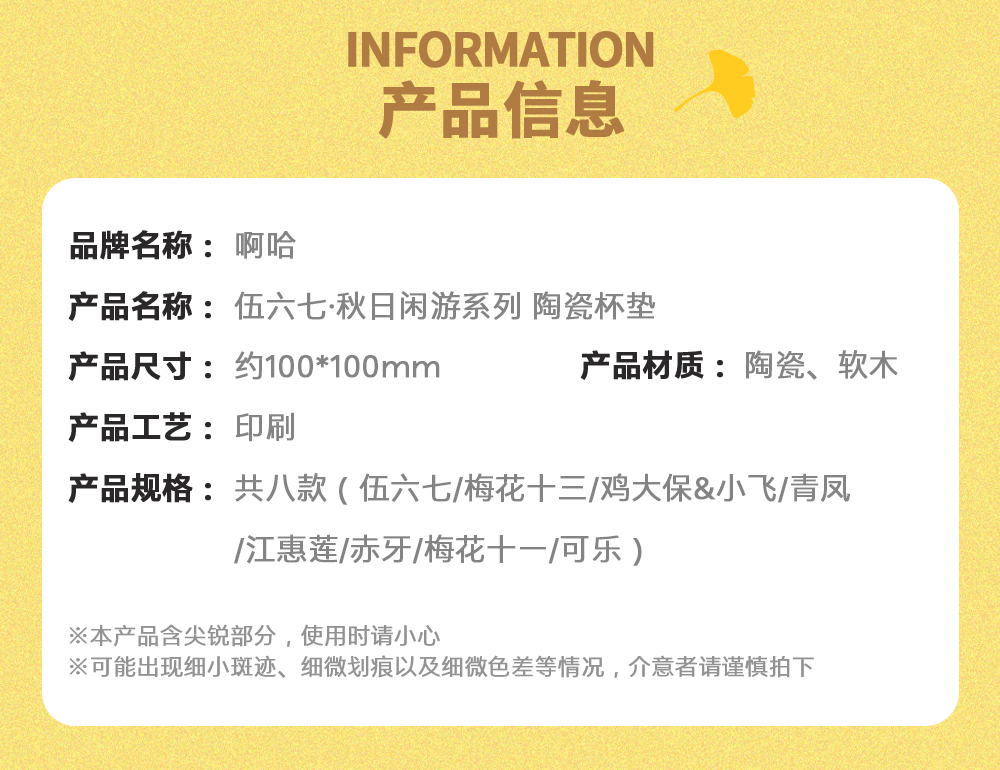 伍六七·秋日闲游系列 陶瓷杯垫 马克杯 收纳包