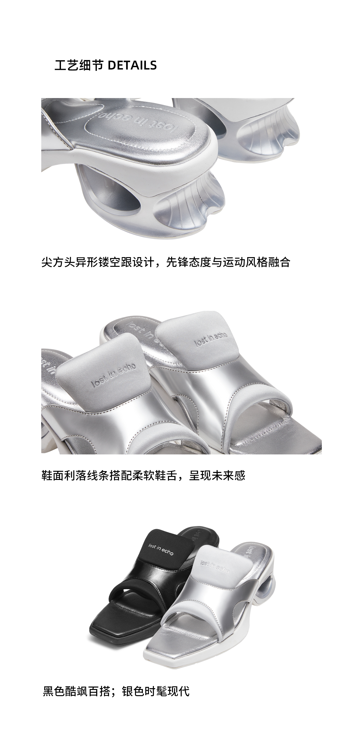 lost in echo2024春季新品设计师品牌尖方头异形镂空跟运动凉拖