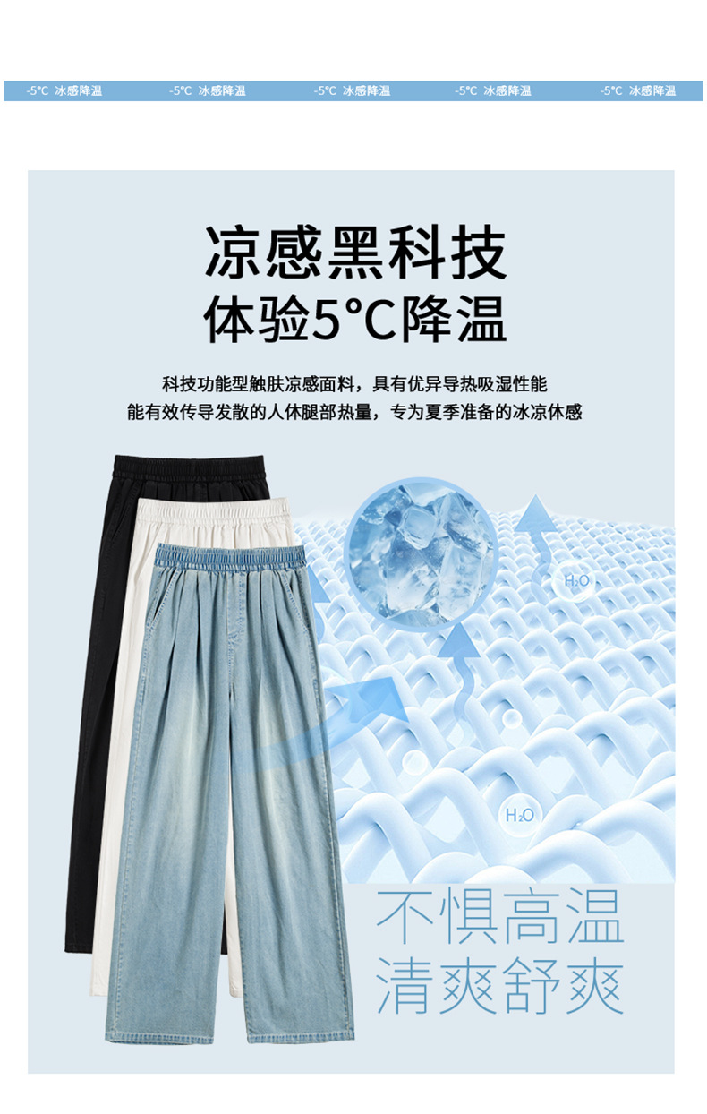 「复古天丝牛仔裤」女2025新款夏季山本裤 高腰垂感直筒宽松复古阔腿裤下装 商品图1