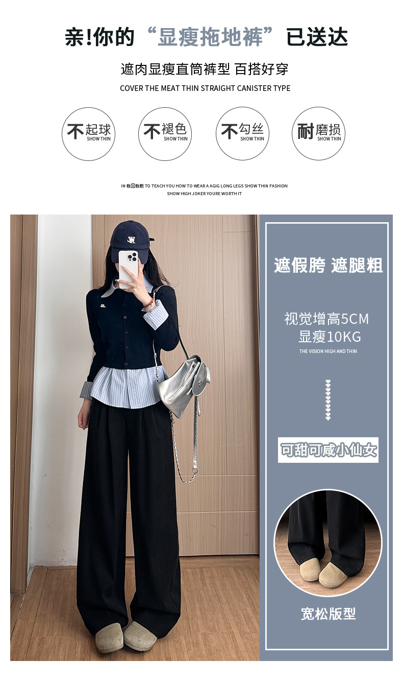 「复古天丝牛仔裤」女2025新款夏季山本裤 高腰垂感直筒宽松复古阔腿裤下装 商品图3