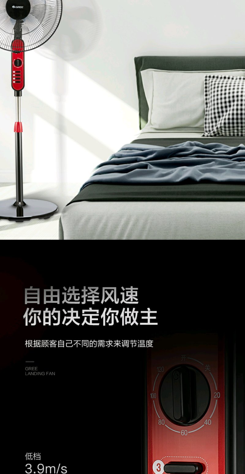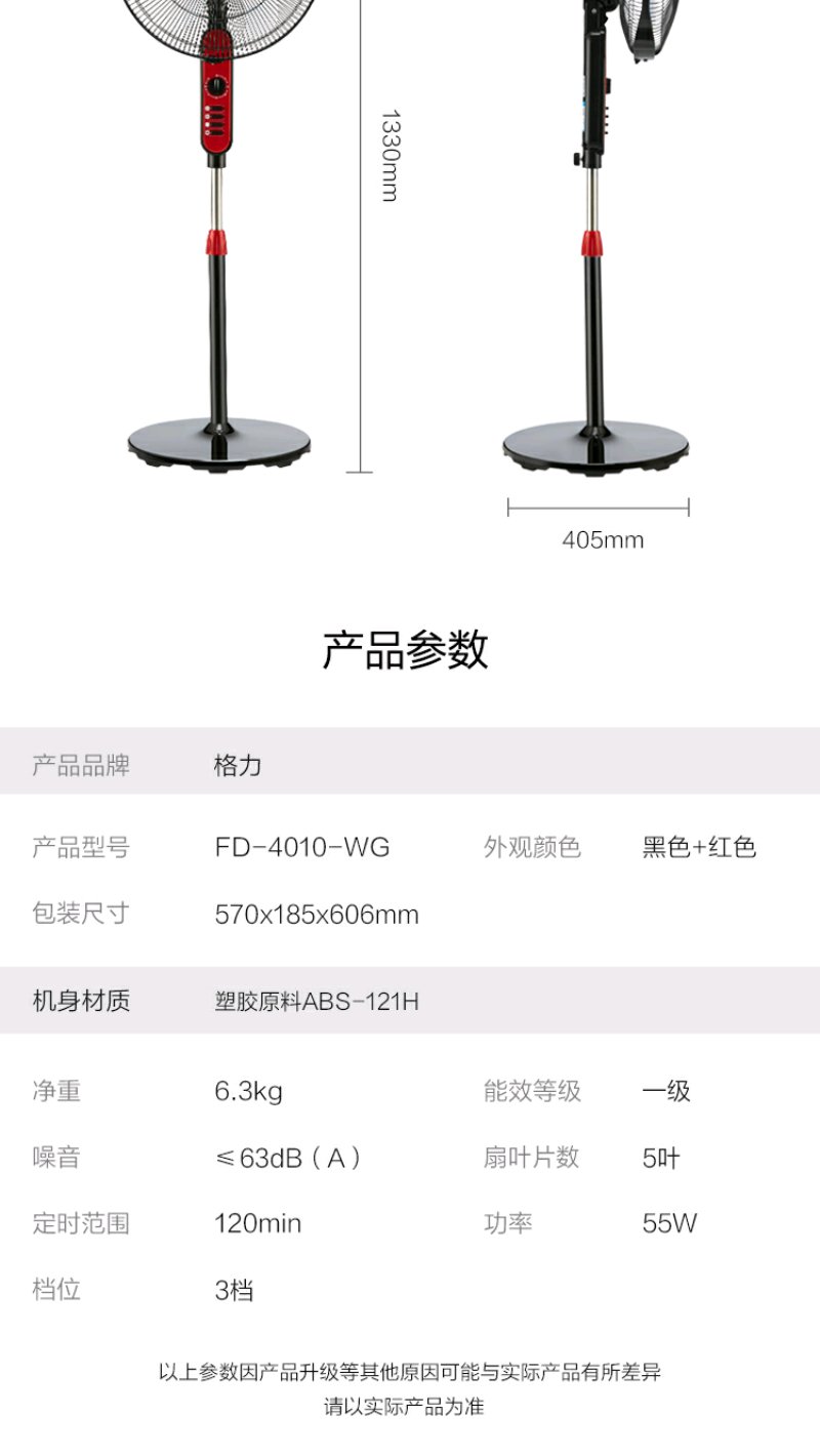 tcccdfh 格力(GREE)五叶风扇 家用静音落地扇 立式电扇 电风扇 FD-4010-WG